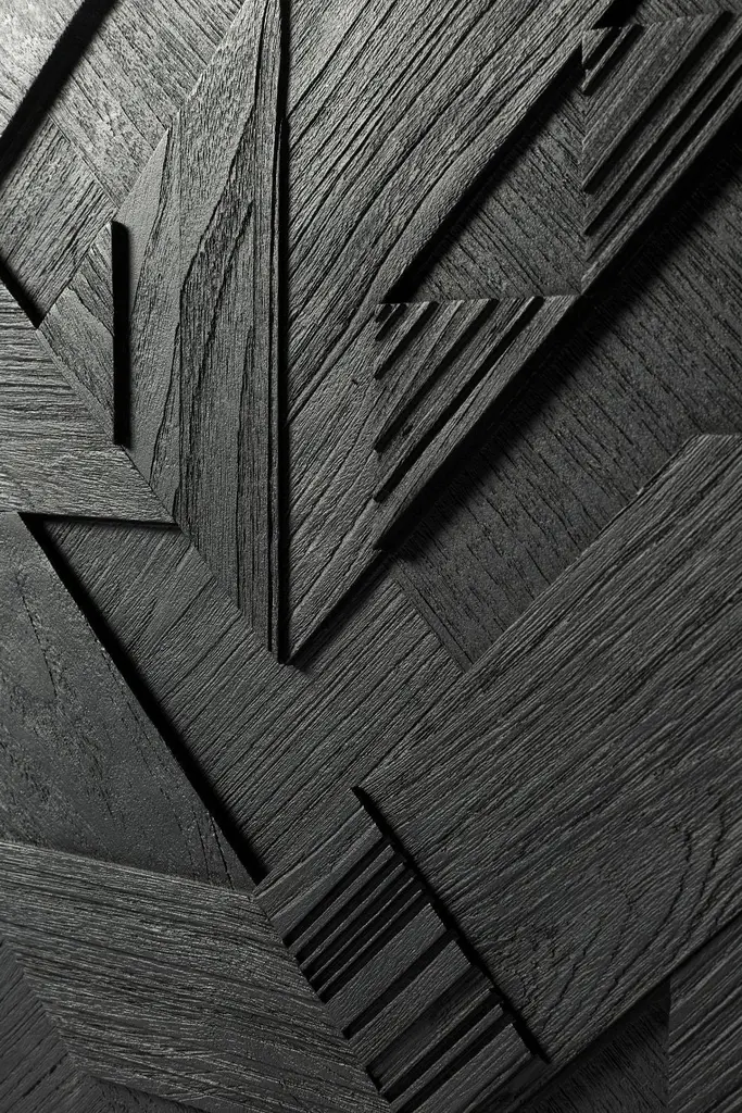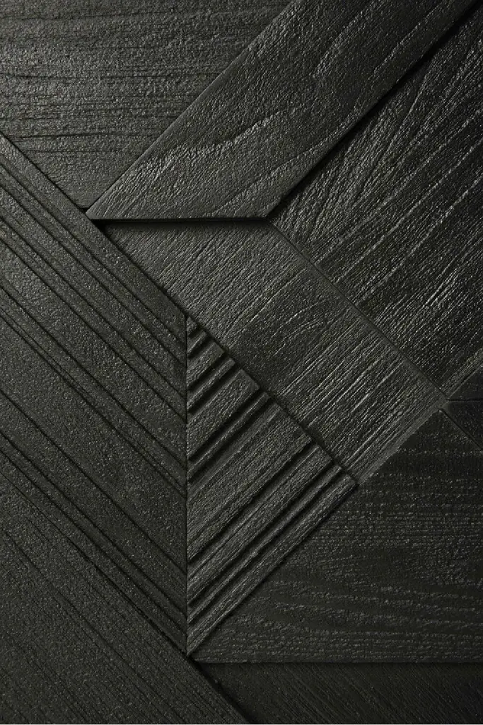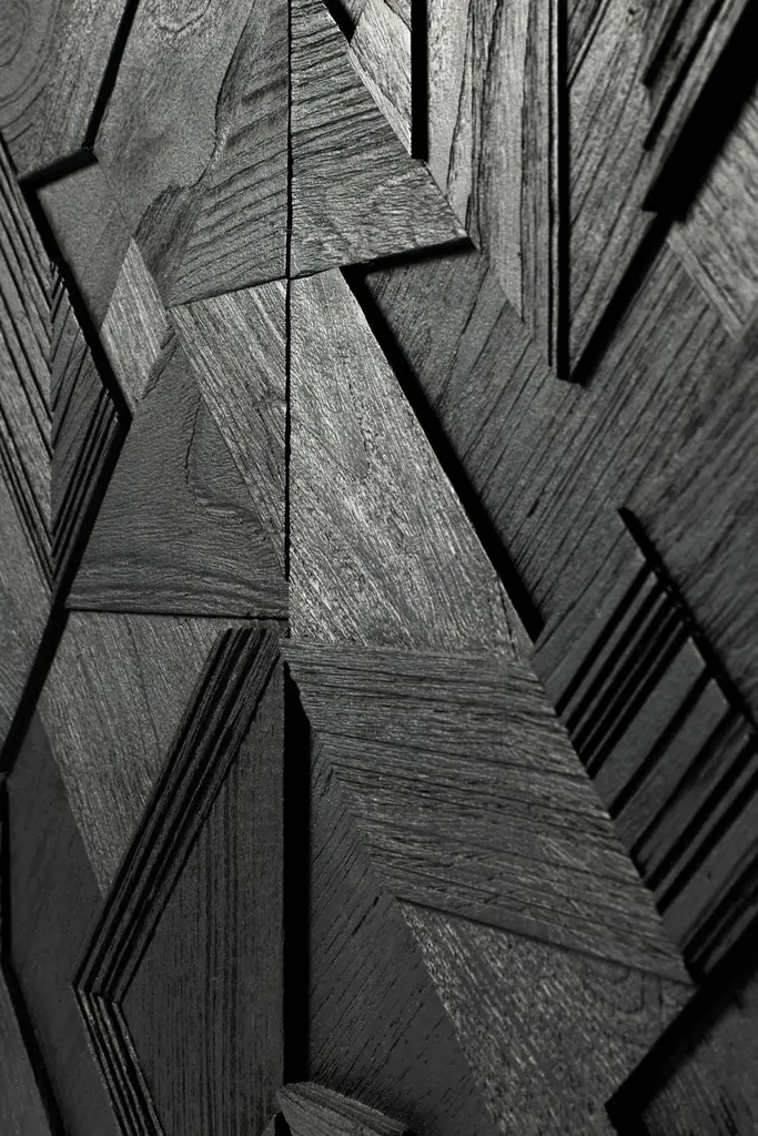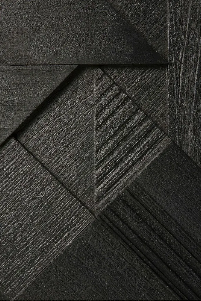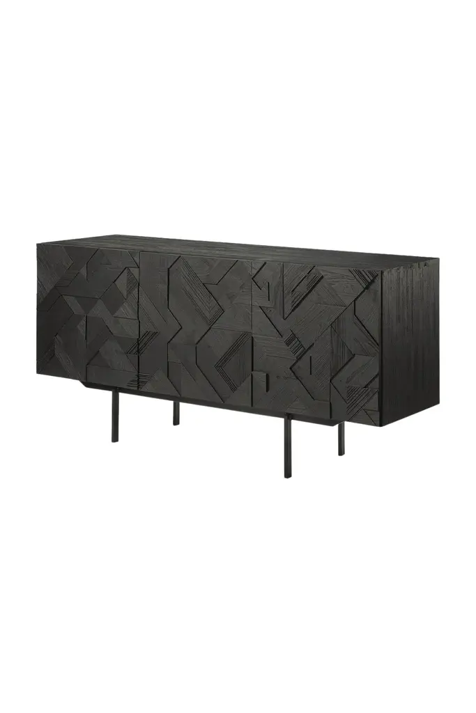 Indulge in the timeless beauty of Ethnicraft's Black Teak Sideboard - a masterpiece born from the creative mind of designer Alain van Havre. It features a combination of triangular shapes, artfully layered to form a visually enticing composition. Boasting a black-tainted solid teak material, this Graphic cupboard is equipped with two push open doors that reveal two drawers and three-layered shelf inside, providing ample storage space while maintaining a sleek and seamless facade.Download Technical Line DrawingDownload Care Instructions