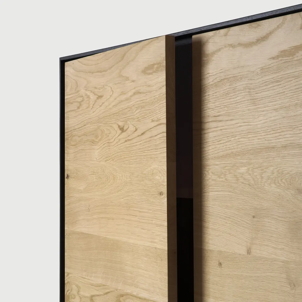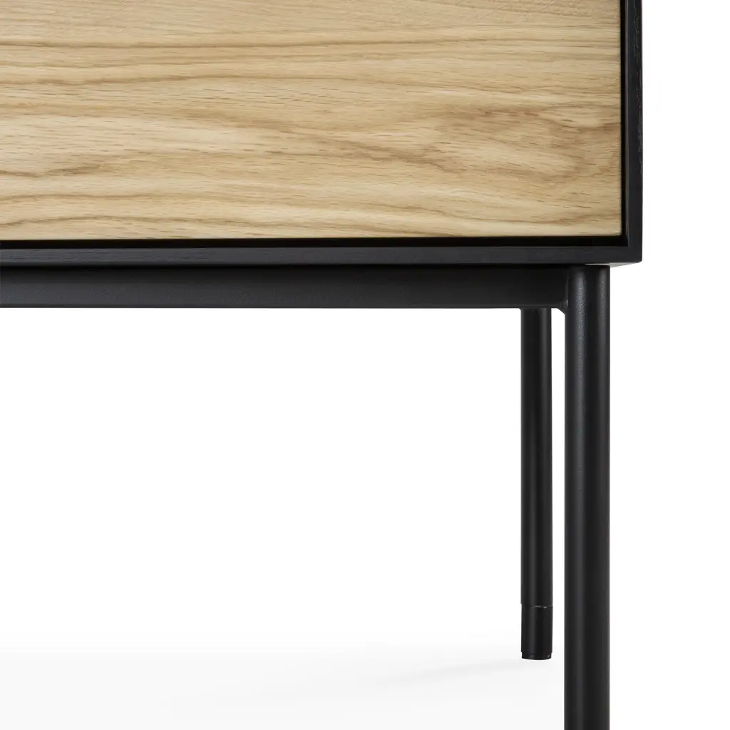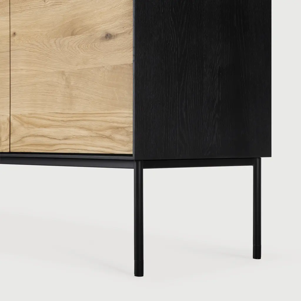 From living rooms to bedrooms and home offices, the Ethnicraft Blackbird Sideboard makes storage and de-cluttering look extra-refined. Part of the Blackbird range, the sideboard combines contrasting elements and colors in a striking yet versatile design. Spacious drawers and shelves maximize function, offering a convenient solution to organize a variety of items and keep your home tidy. As high-quality as it is practical, the Ethnicraft Blackbird Sideboard features a solid oak and metal build. A brushed finish highlights the wood grain on the two push open doors and three drawers, while a black coat of paint distinguishes the top and sides, matching the finish of the metal legs. Additionally, this sideboard comes with adjustable shelves and an anti-tipping mechanism.