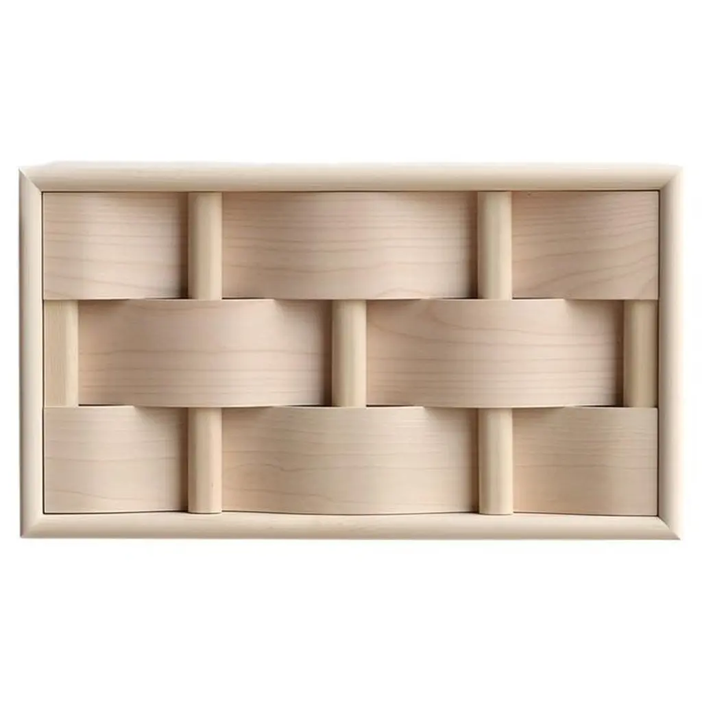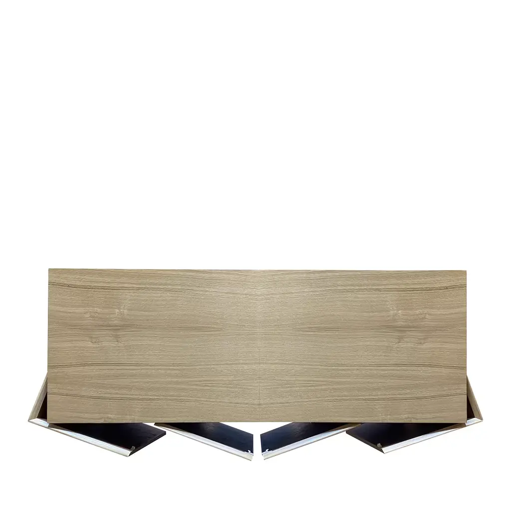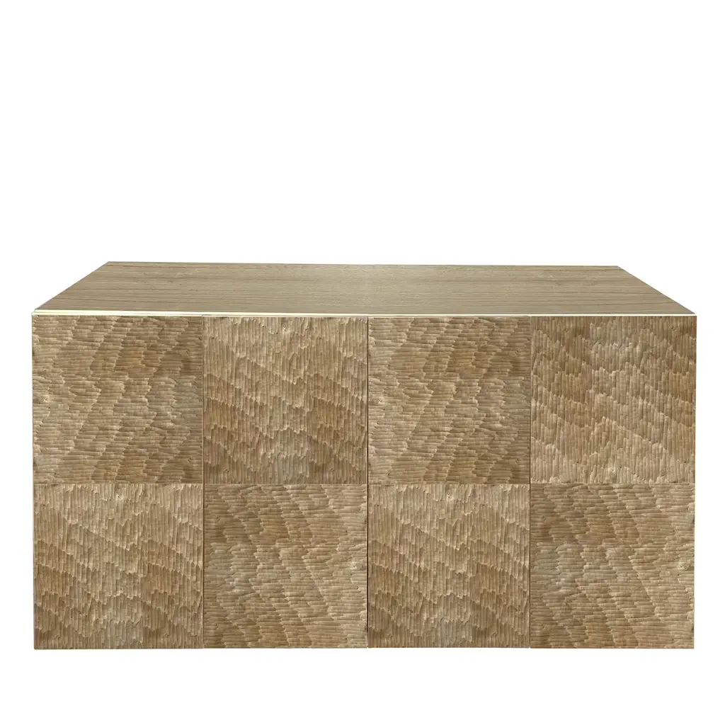 Aptly named after the crasis between "bocca", "di", and "Arno" - translatable as Arno's mouth - this durmast sideboard is a singular design of astonishing visual impact. A hypnotizing pattern marks the four doors, obtained from a painstaking manual carving process. Belonging to a series inspired by the colors of the area around the Arno river's mouth, it opens to reveal three shelves.