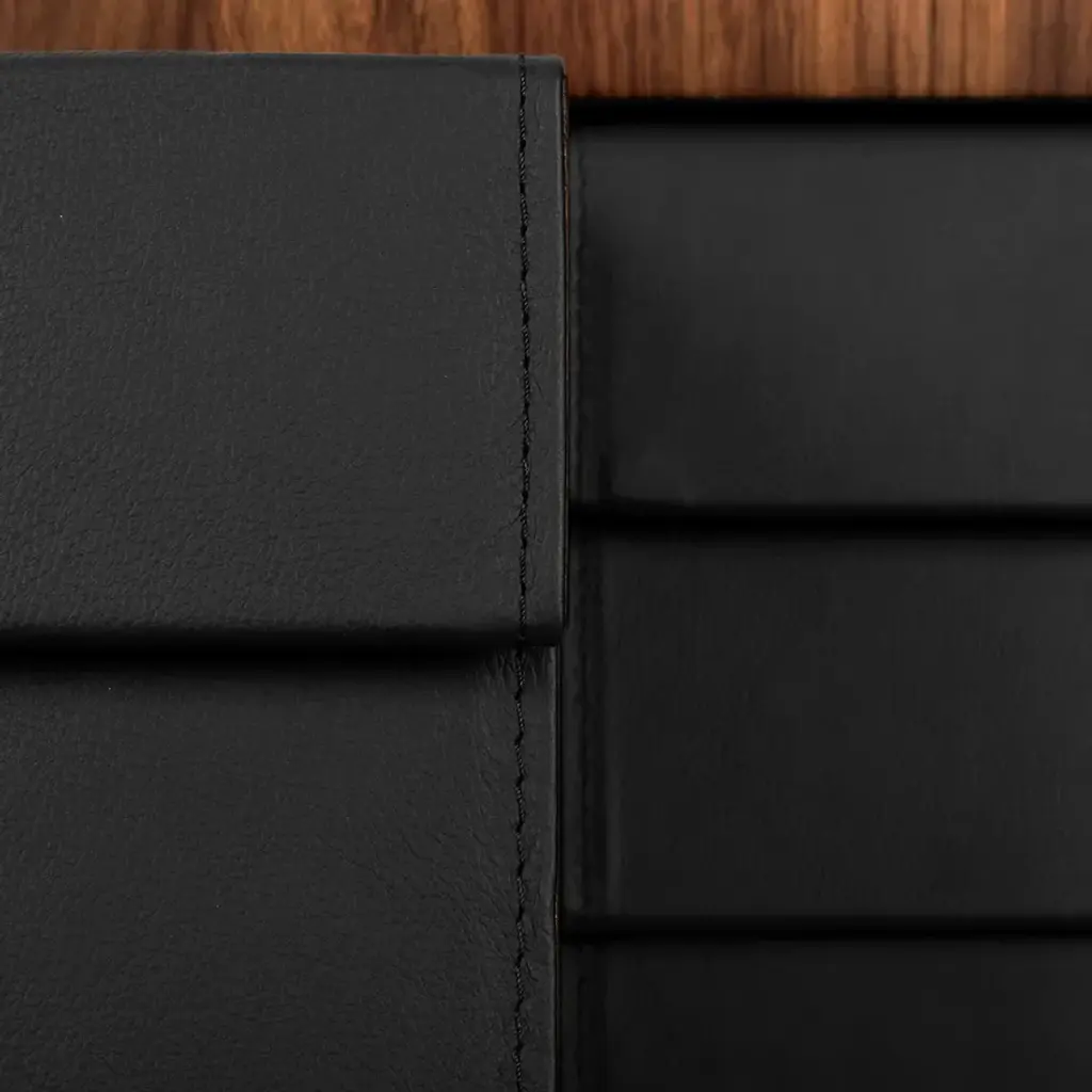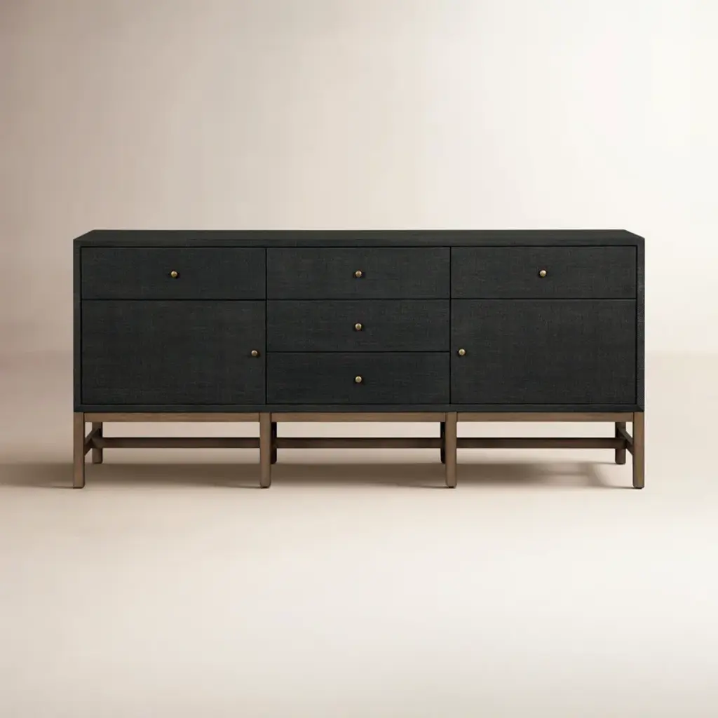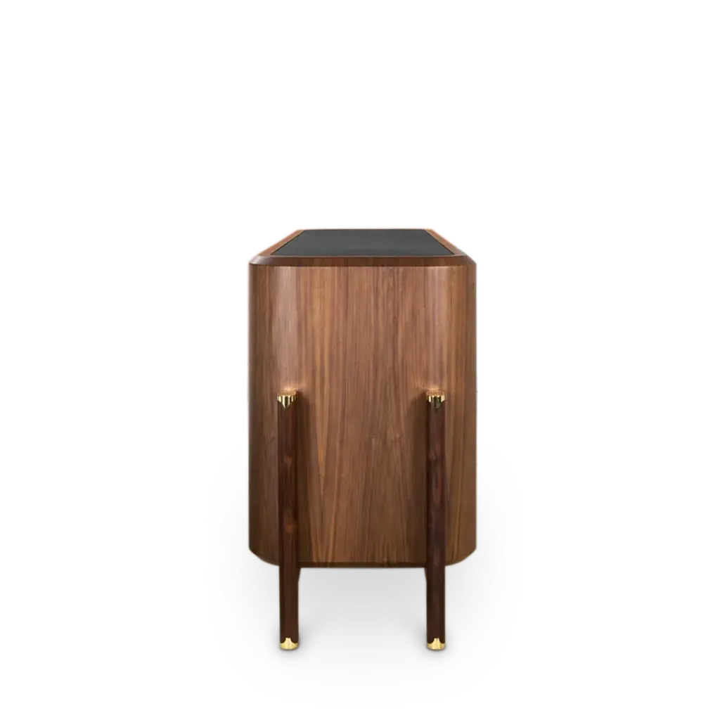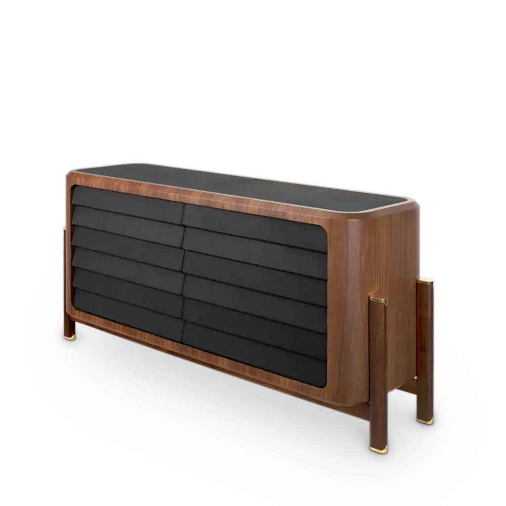 A very inconspicuous piece of modern design that works as a discreetly stylish storage solution, Brando Sideboard features a structure in solid wood and natural dark leather that gives it a sober and elegant look.