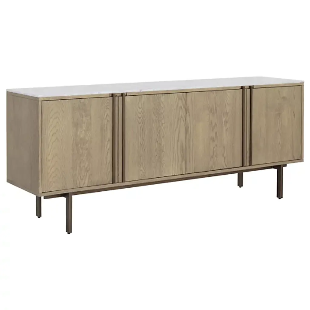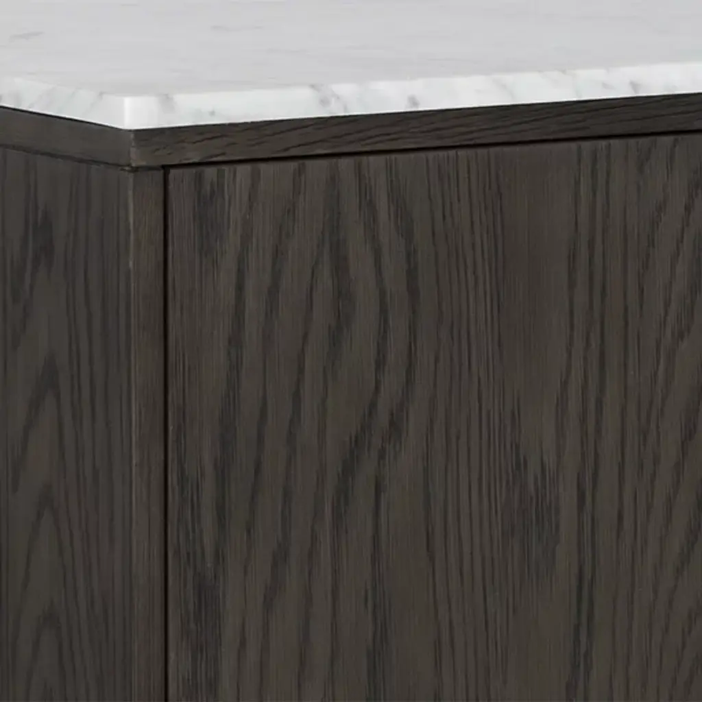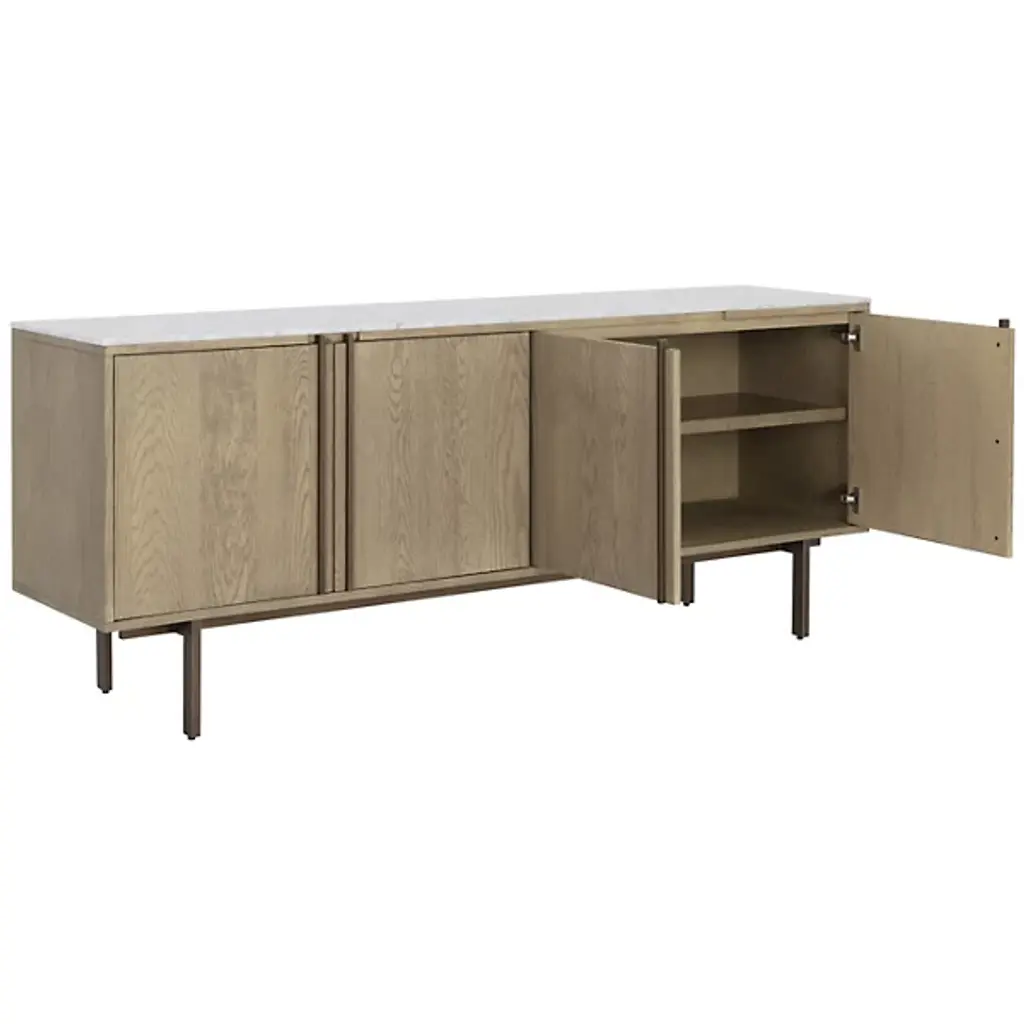 The Briar Sideboard from Sunpan blends mid-century and modern design elements, creating a striking piece that enhances any space. Constructed with a solid oak wood frame, it’s topped with a stunning white marble surface that exudes timeless elegance. The piece is completed with a sturdy metal base and hardware in an antique brass finish, adding a touch of vintage charm. An anti-tip kit is included for added safety. As a natural material, the marble showcases unique veining, pitting, fissures, micro-cracks, and color variations, making each piece unique.