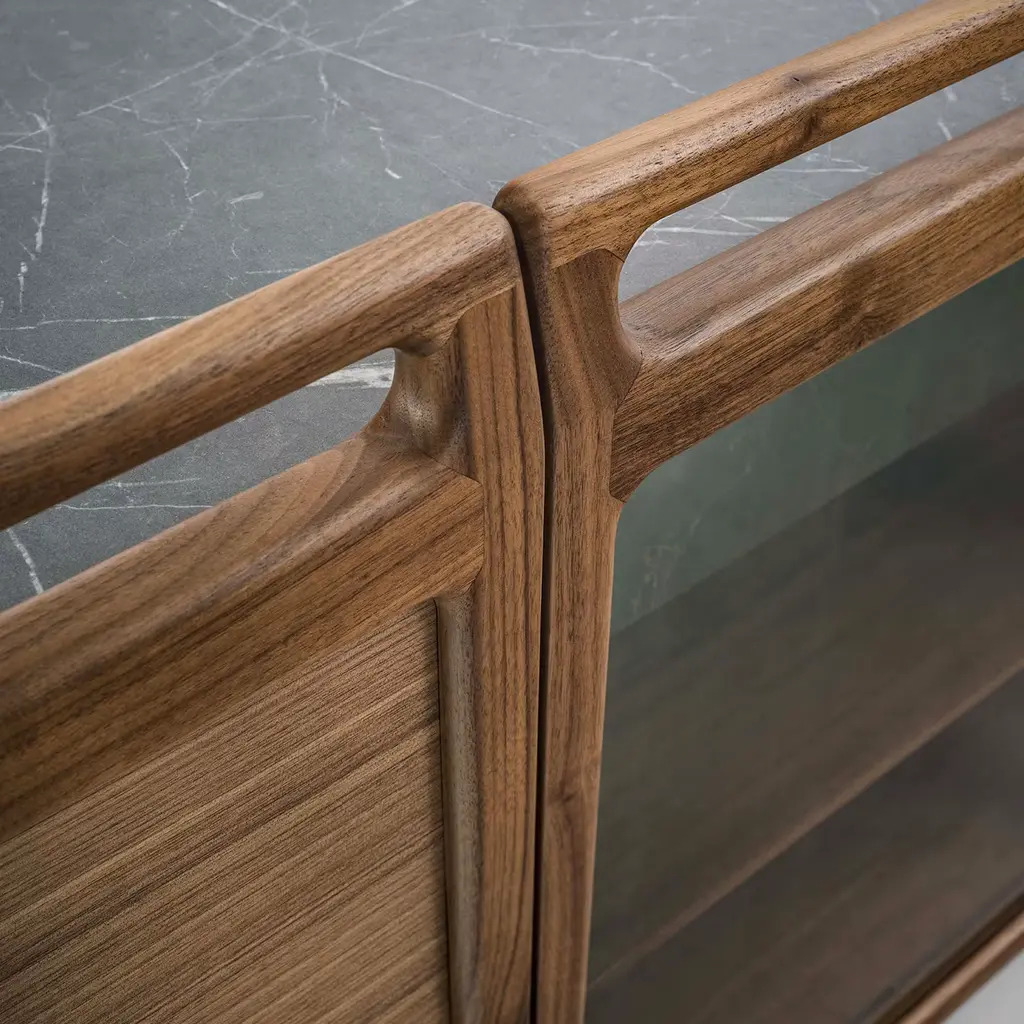 The Bridge group of cabinets are available in various sizes and designed for strength and functionality with a solid wood frame and practical spaces. The top, sides and doors work together in harmony, the light, the shelf profile design, together with the high-quality technical-aesthetic features and finishes make them perfect for any environment.