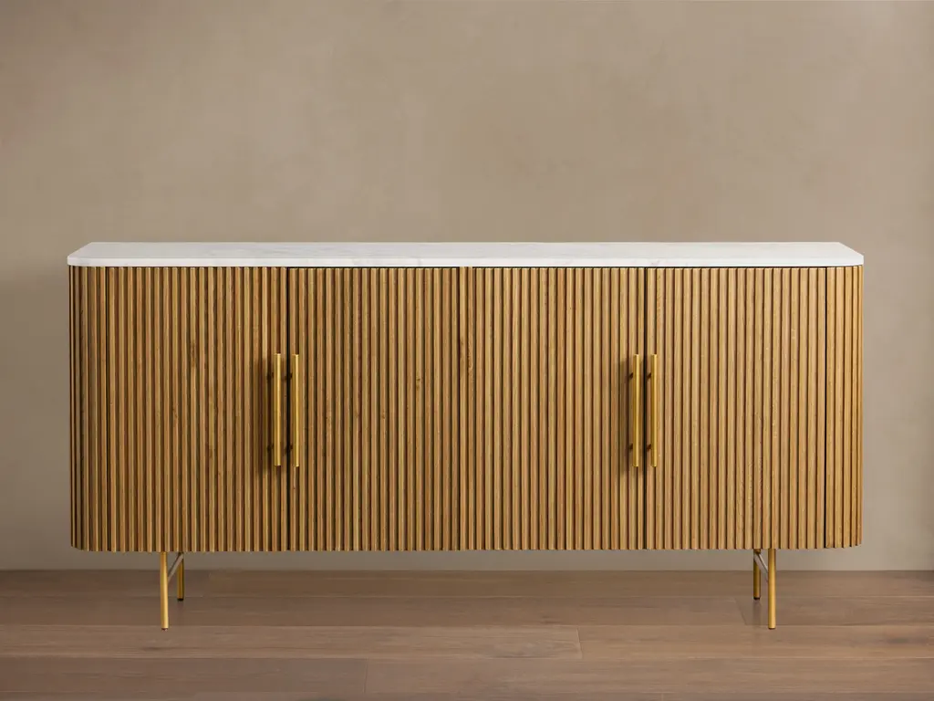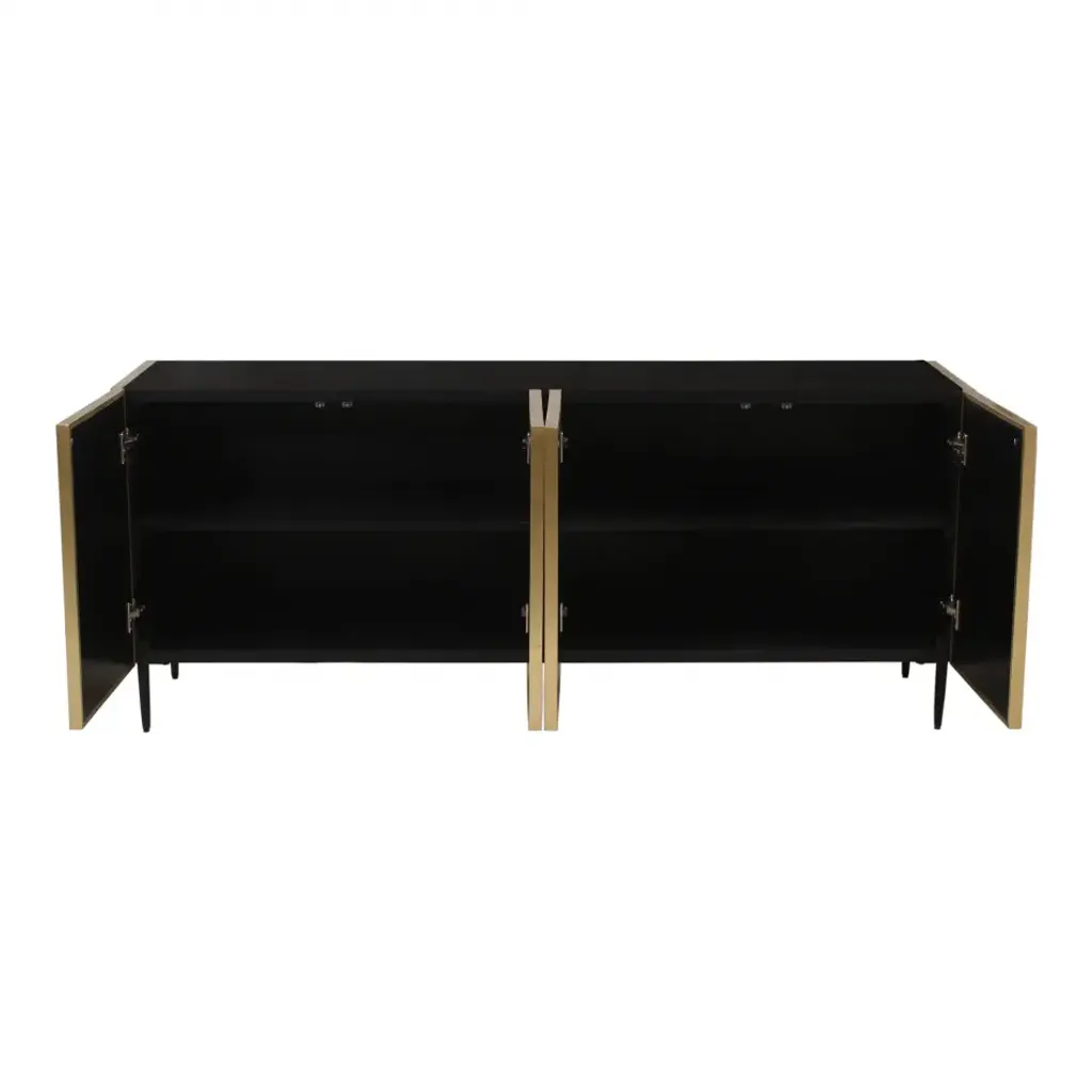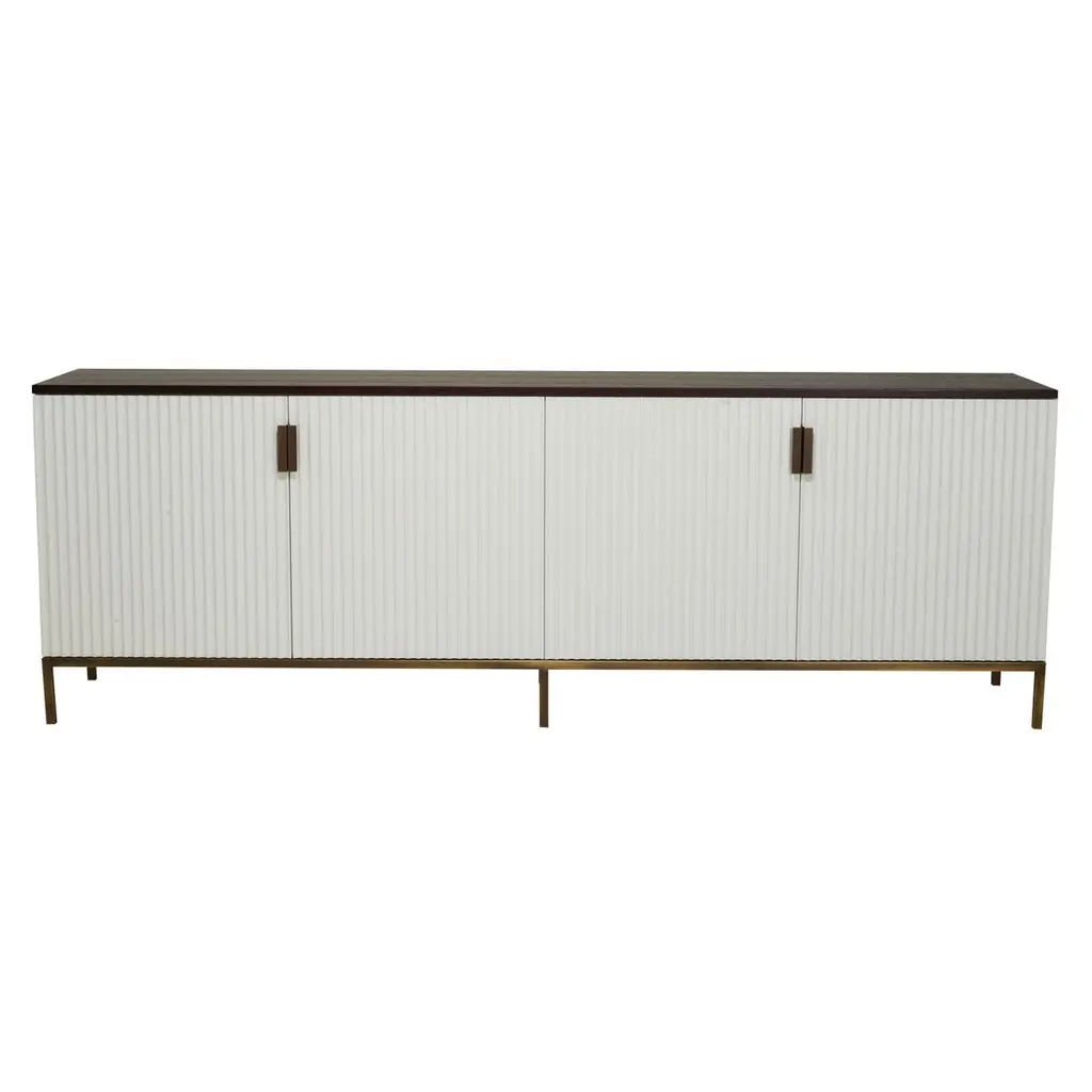 With signature art deco flair, the Brogan sideboard is ready to add some metallic magic to your space. Antique brass finished sides and doors give Brogan a look that’s decadent and refined, a bright burnished addition to your dining area. Its two doors open to reveal lots of room for all your dining accessories, while its tabletop serves as a home for your décor as well as a serving and carving station. Slender yet sturdy legs complete the look, ensuring Brogan’s status as an art deco icon as well as a space-saving storage solution.