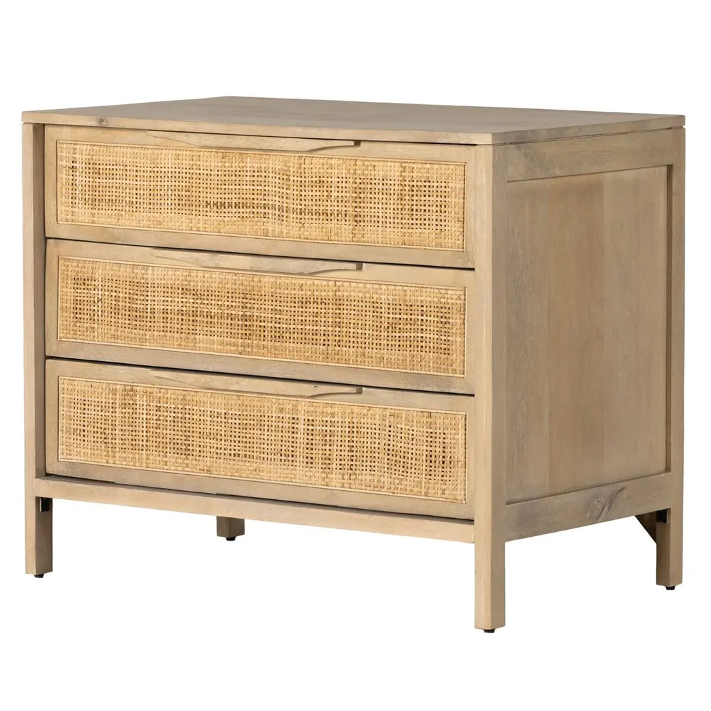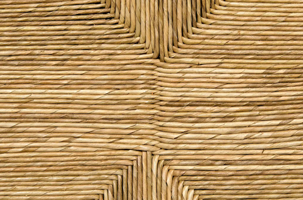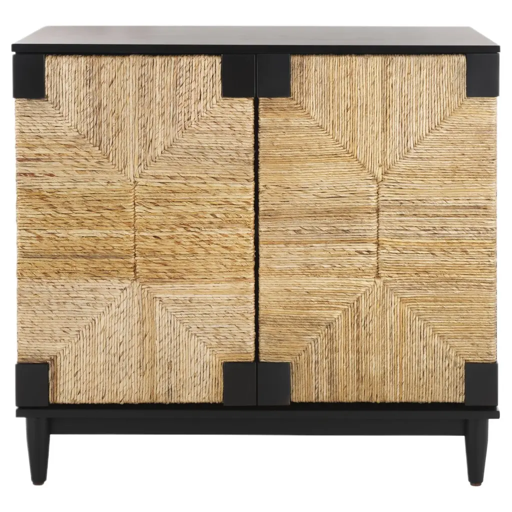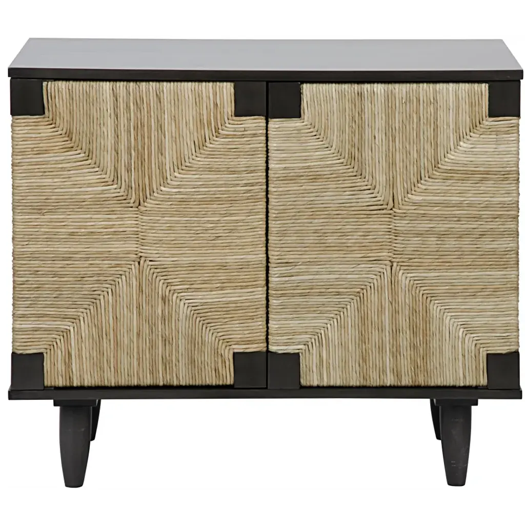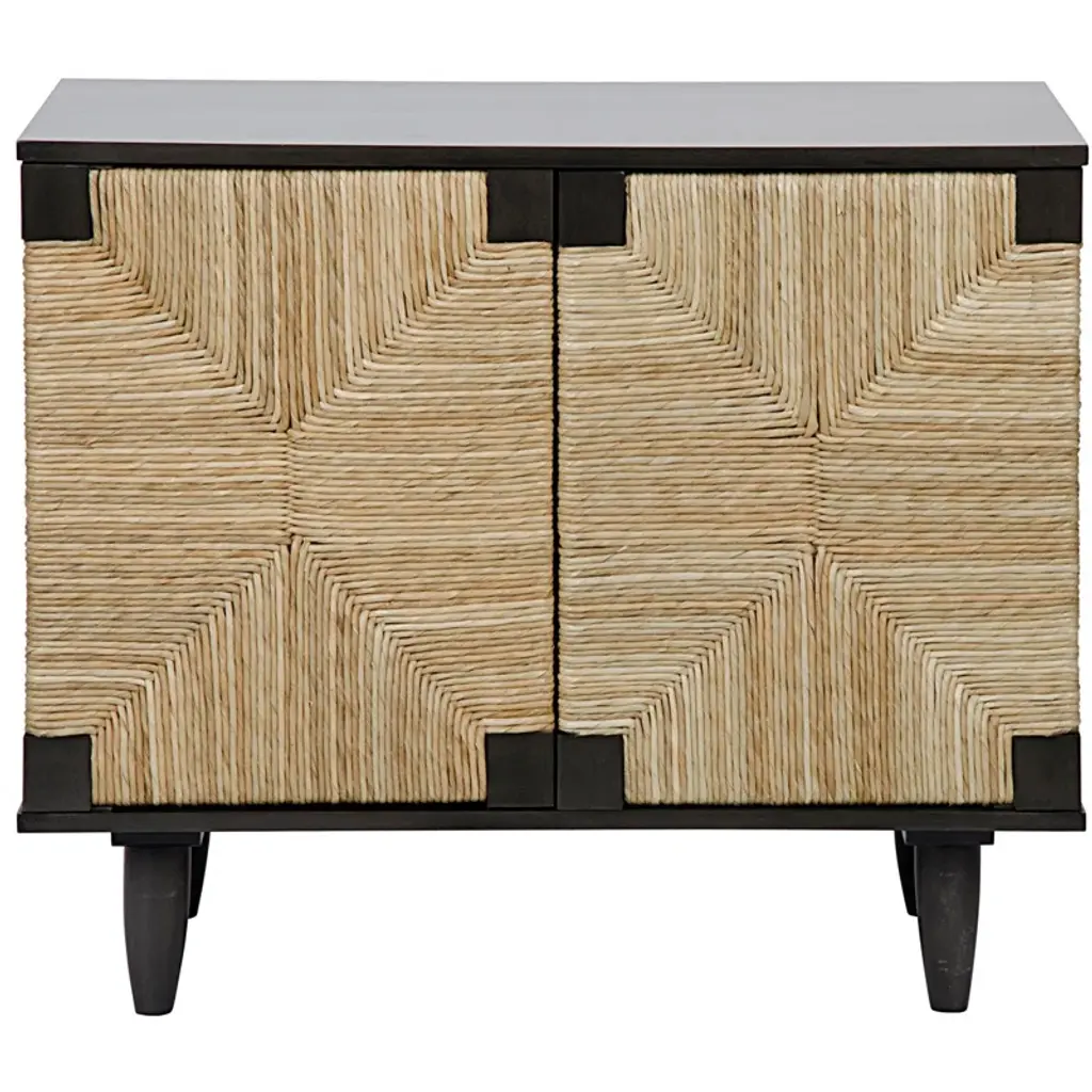 Solid mahogany pairs beautifully with natural sea grass in this updated classic. Designed to provide for maximum display space across the mahogany top, it also features two generous lower compartments with one fixed shelf each.