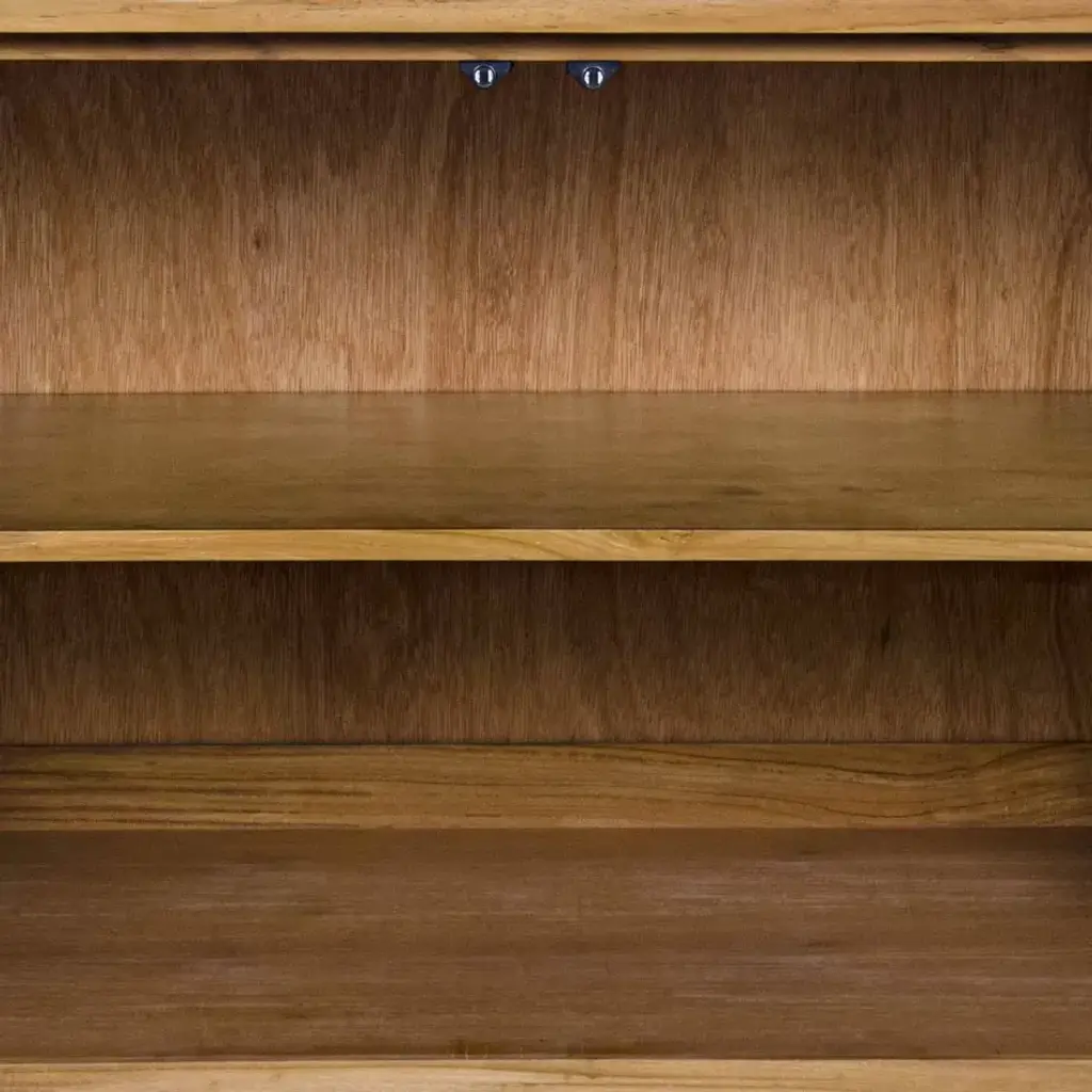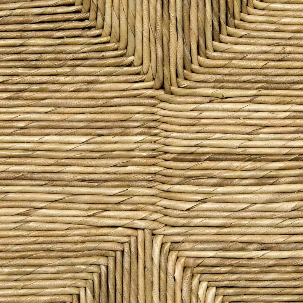 Solid mahogany pairs beautifully with natural sea grass in this updated classic. Designed to provide for maximum display space across the mahogany top, it also features two generous lower compartments with one fixed shelf each.