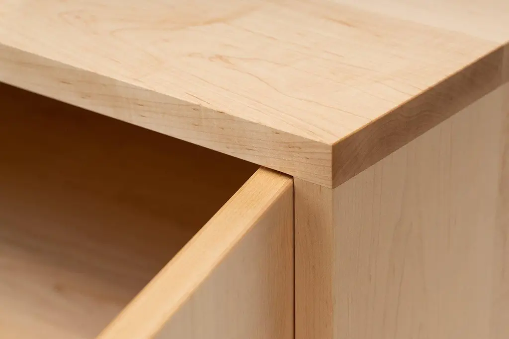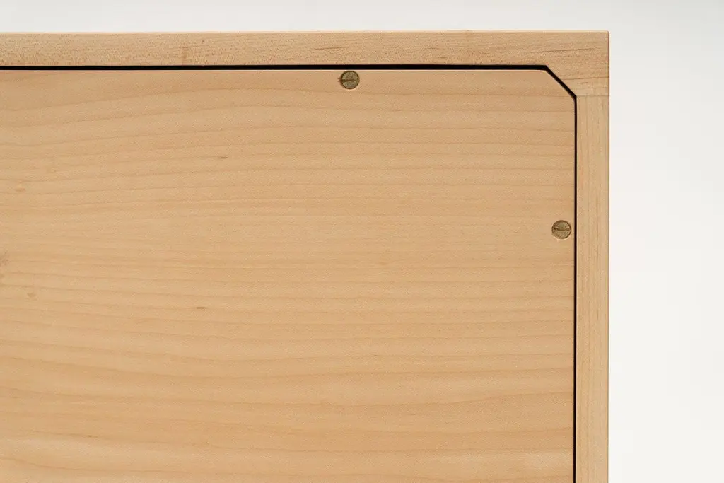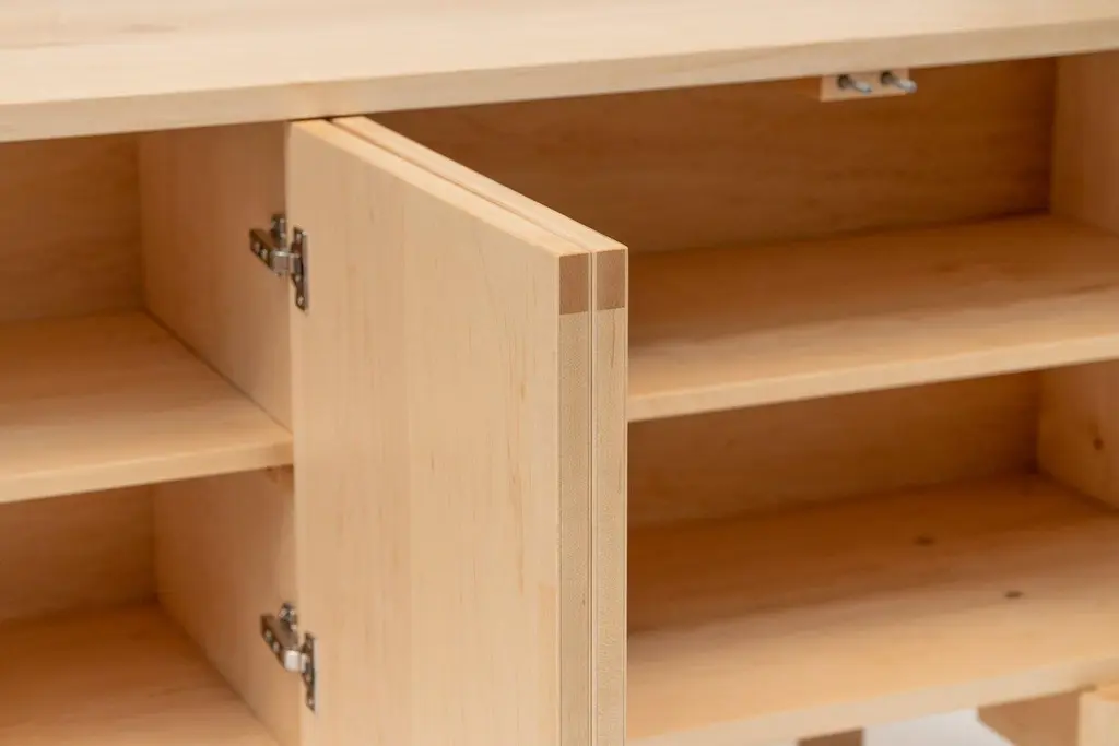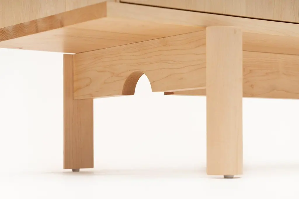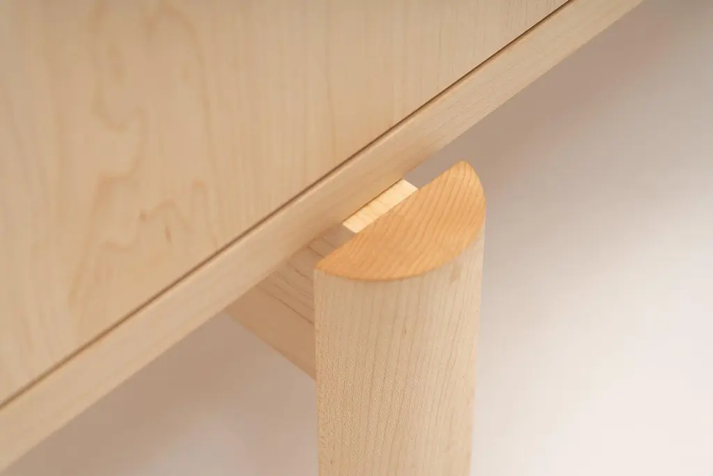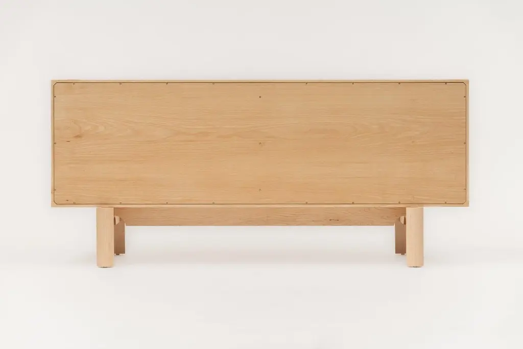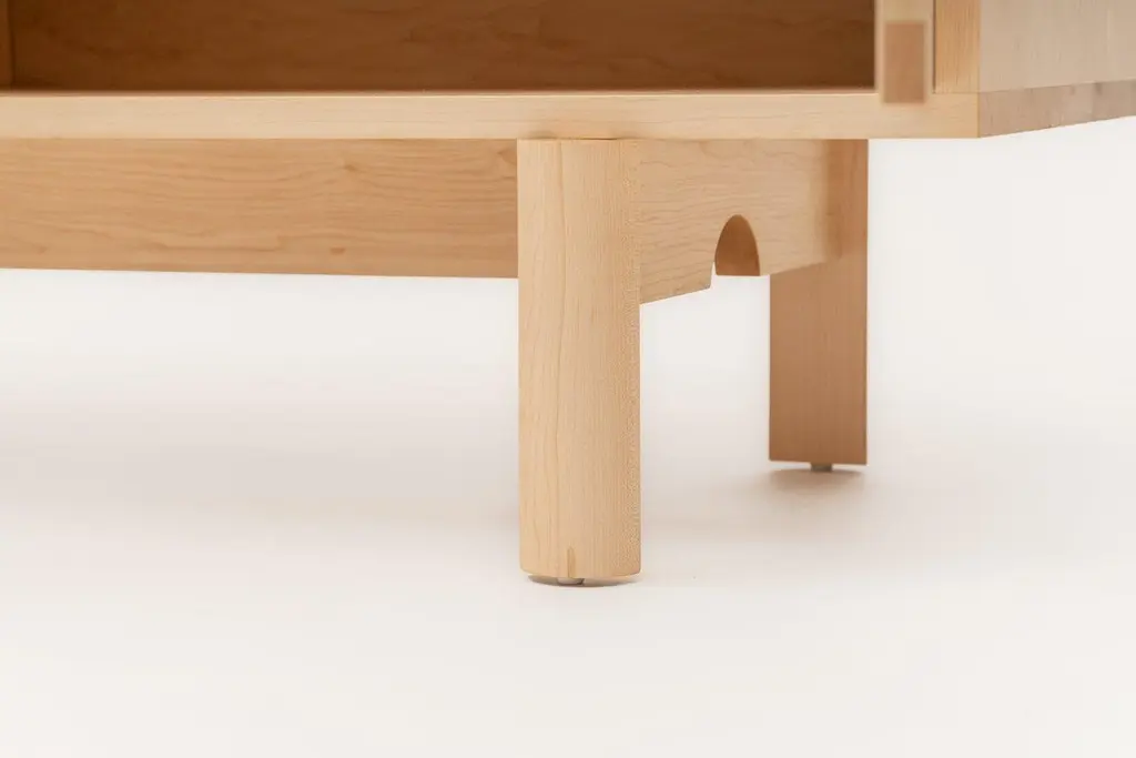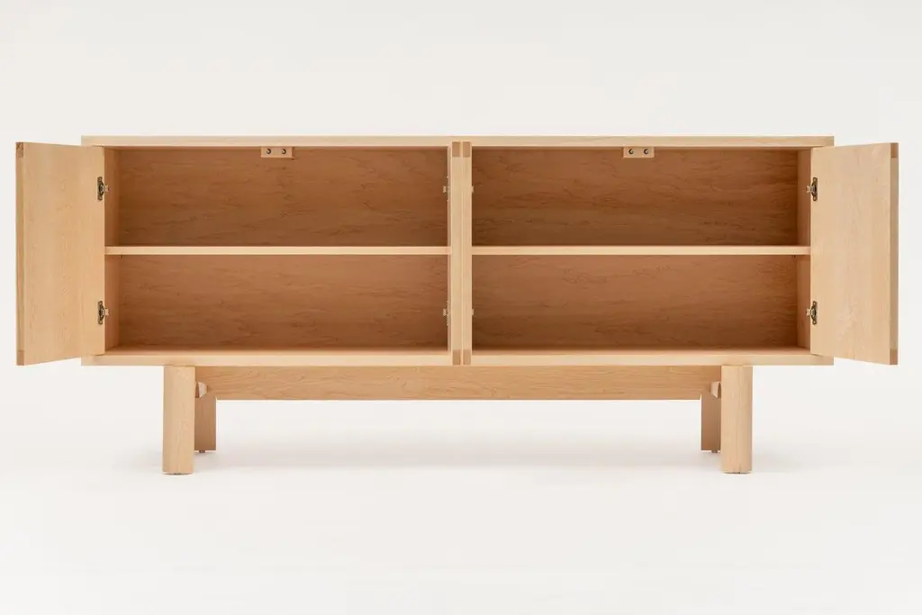 The Brower Credenza is a simple, solid wood sideboard with clean lines and ample storage. The most eye catching feature for the Brower family must be the graphic and shapely half-round legs. The solid wood push-to-open doors are made of custom milled, extra thick veneers and heavy lumber-banding over a stable core for extreme stability and durability. The Brower Credenza is a minimal design useful in any room in the home. An elegant storage solution made from sustainable lumber and finished with our own special formulation of hand rubbed oil and wax for a superior touch and feel.Pictured in maple with hand-rubbed oil and wax finishNew.