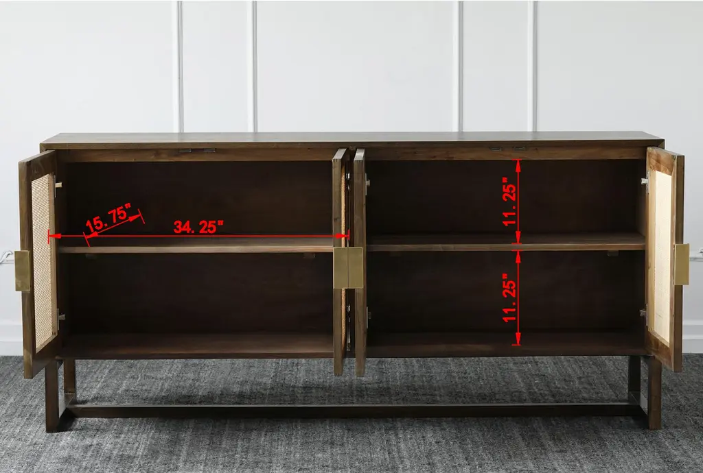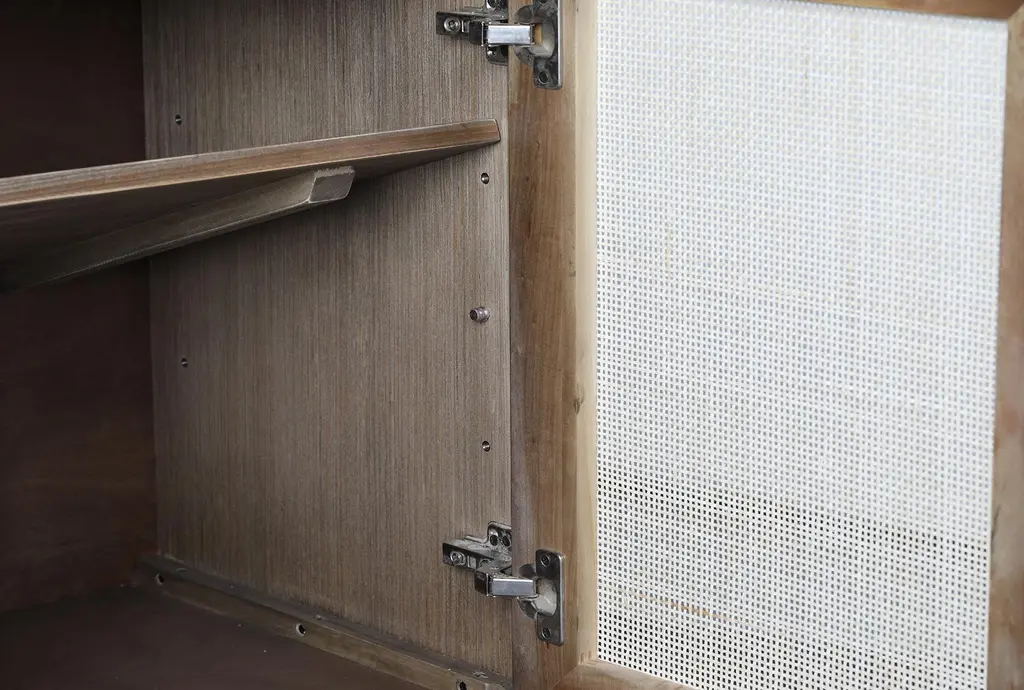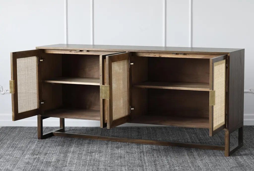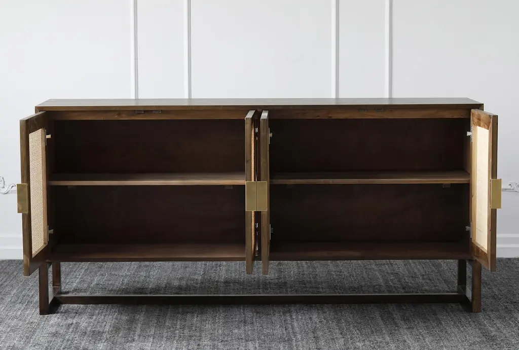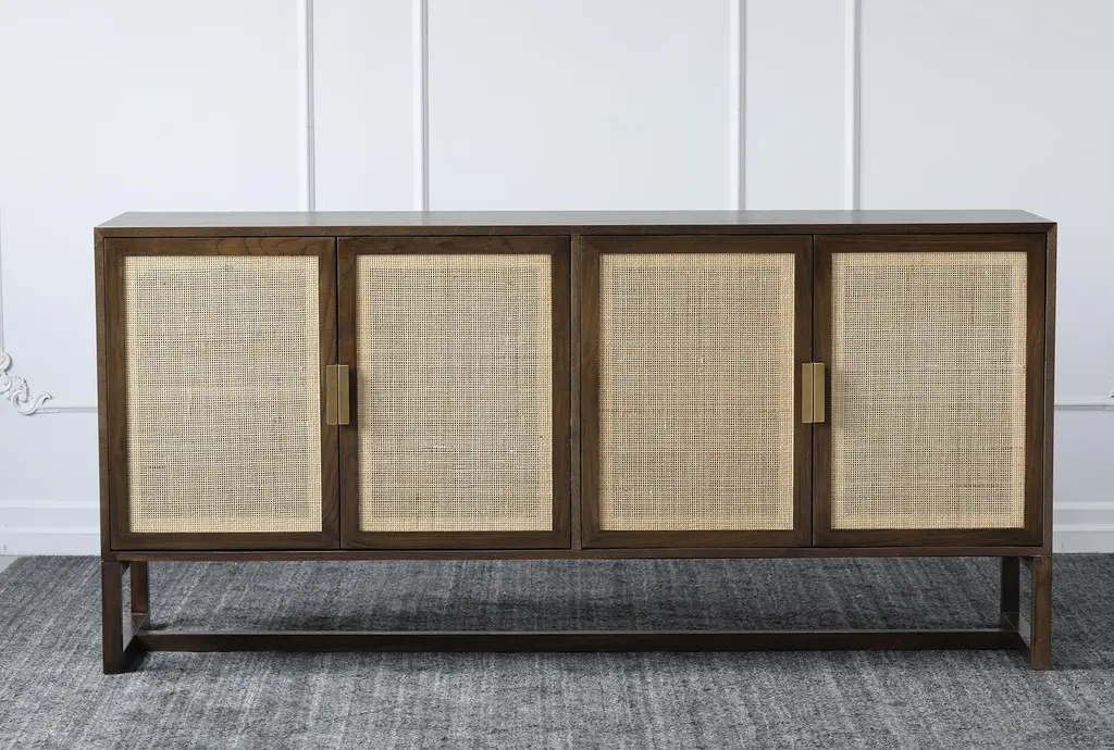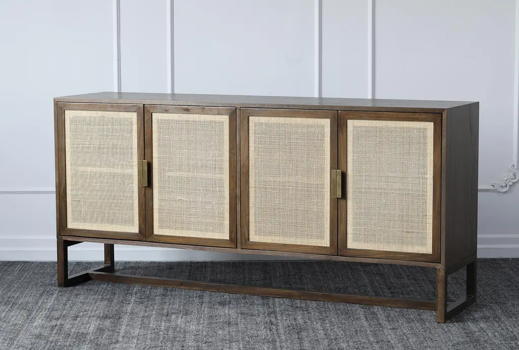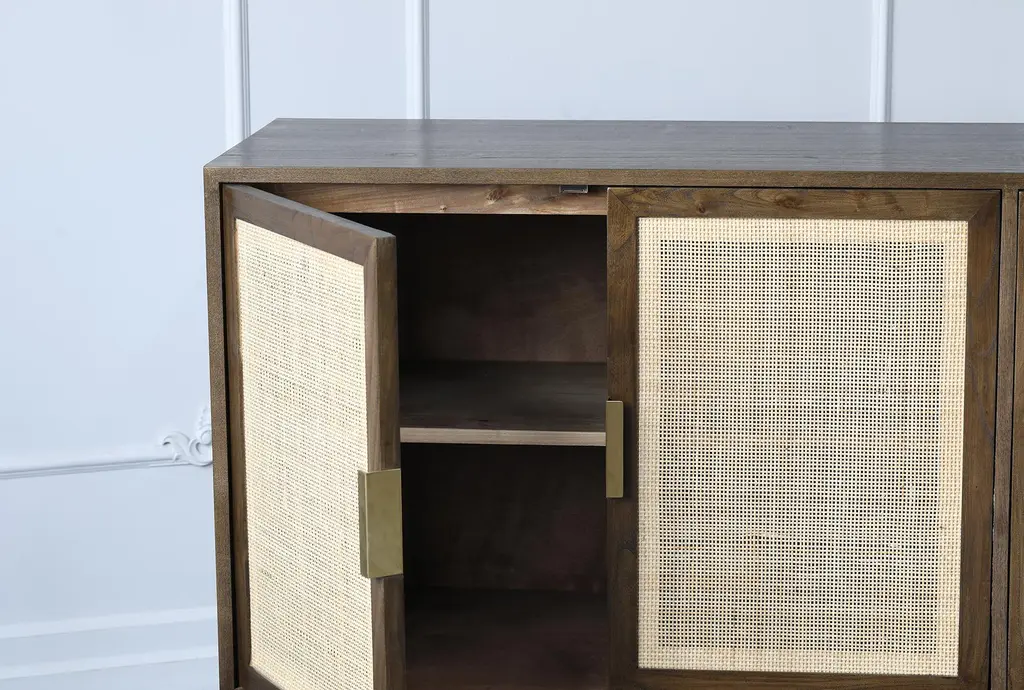 Brown + Natural Cane 4 Door Sideboard