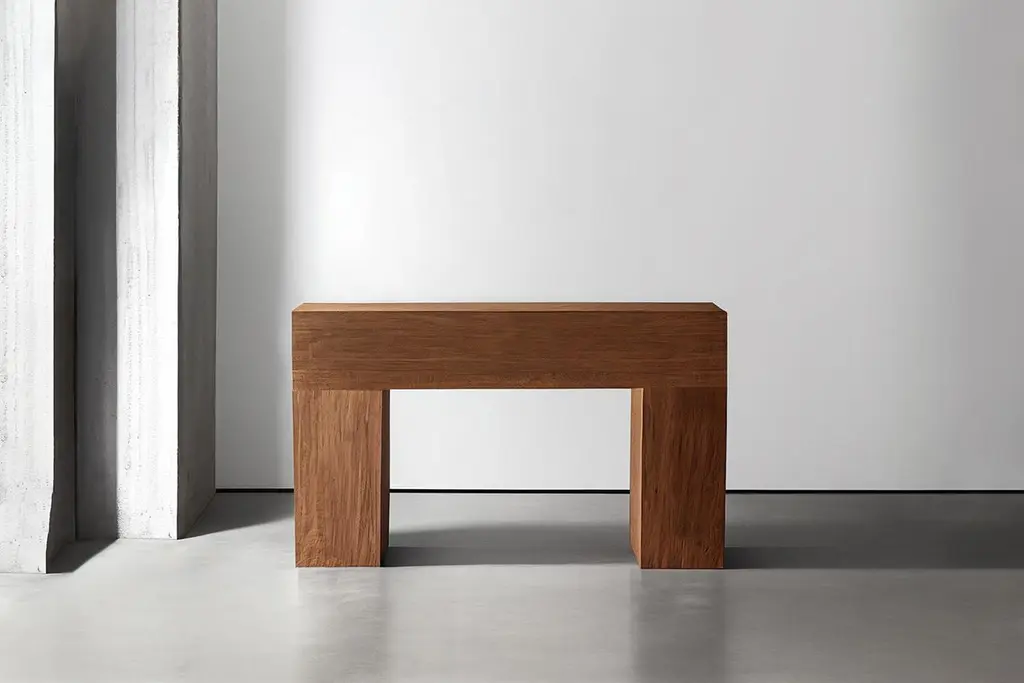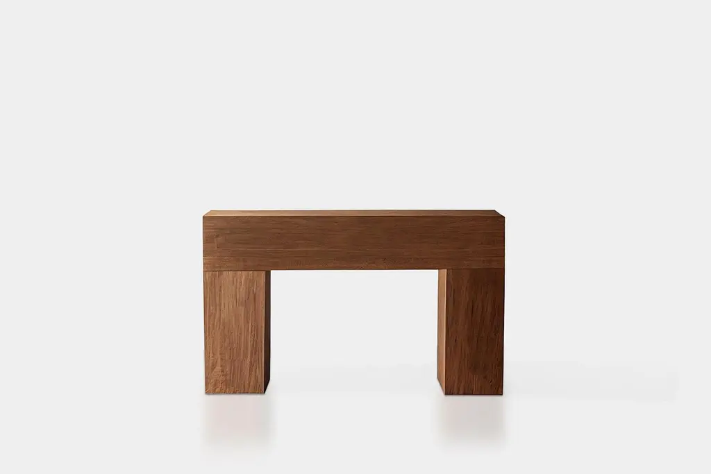 Elefante collection by NONO furniture. A distinguished tribute to the architectural movements of Mexican Modernism and Brutalist design. The collection showcases three minimal furniture design pieces, including a versatile side table that doubles as a nightstand, a monumental coffee table, and a narrow console table ideal for entryways or living rooms.Each item of the collection is expertly crafted from oak wood with an vintage look, creating an aura of exquisite quality and sophistication. The simple geometric forms, designed with a particular emphasis on balance and harmony, reflect the core principles of Brutalist design.The collection's inspiration lies in the works of renowned architects such as Luis Barragán and Ricardo Legorreta, who shaped Mexican Modernism with their aesthetic sensibility and innovative approach. The Elefante Collection pays homage to these masterpieces, capturing their essence in every detail.The sturdiness of construction and exceptional craftsmanship of each furniture piece guarantee longevity and durability. Moreover, each item can be customized to meet your unique preferences, tailored to any size, proportion, and finish.The Elefante Collection by NONO Furniture stands as a true masterpiece of architectural furniture design, showcasing the inherent beauty and elegance of Mexican Modernism and Brutalist design. Enrich your living space with the timeless appeal of these remarkable pieces. Production takes 7-9 weeks to ensure the highest level of precision and quality.Design by Joel Escalona——NONO is a Mexican design brand with more than 10 years of experience dedicated to the production of interior furnishings, editions, and custom-made projects. At NONO, we create pieces of extraordinary beauty, accommodating the particular needs and tastes of each client with exclusive high-quality designs.—Joel Escalona is a Mexican designer, difficult to define with a single word. His constant search for clarity, integrity and harmony led to his development as a designer with an obvious inclination towards visual arts, such as painting and sculpture. Joel’s work is characterized by thorough and elegant processes, sometimes creative, other times productive and on occasion, a bit introspective. In his work, it is possible to find glimpses of his charismatic and ironic personality, resorting to elements such as lyric, humor and poetry as attributes that are in constant connection throughout his body of work.————Some details to consider when placing an order with us:• Catalog images are digitally generated. Actual products may slightly vary in texture, grain, and final finish due to natural material differences. Despite these variations, our expertise ensures each piece maintains high quality and matches the intended design.• All of our products are made to order, and the lead time for standard products is estimated to be 9 to 12 weeks, plus shipping time. However, special pieces or sculptures may require a longer lead time.• We offer customization in dimensions and finish for all of our furniture pieces, which may result in additional charges.• We only facilitate freight services by a third party. The client is solely responsible for any associated import/export taxes, as well as any necessary customs paperwork.• We are not responsible for any damages that may occur during shipping or for any customs-related delays.
