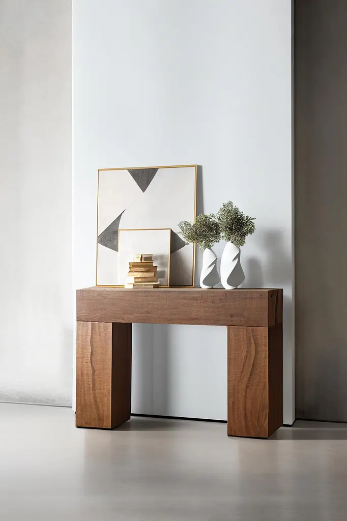 Brutalist Console Table, Minimal Old Wood Sideboard, Narrow Console Elefante