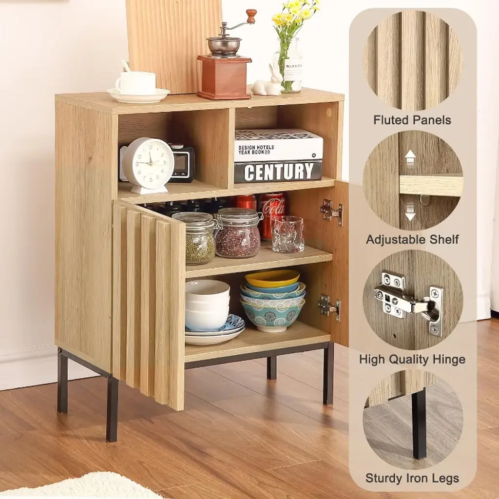 Buffet Cabinet Sideboard With Storage, Modern Industrial Storage Cabinet Accent Table With Fluted Panel Door Metal Legs For Living Room