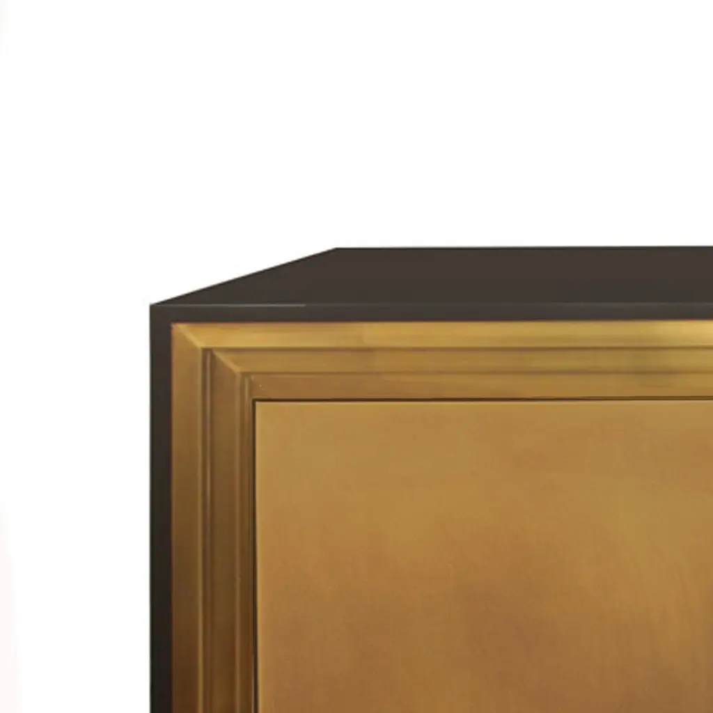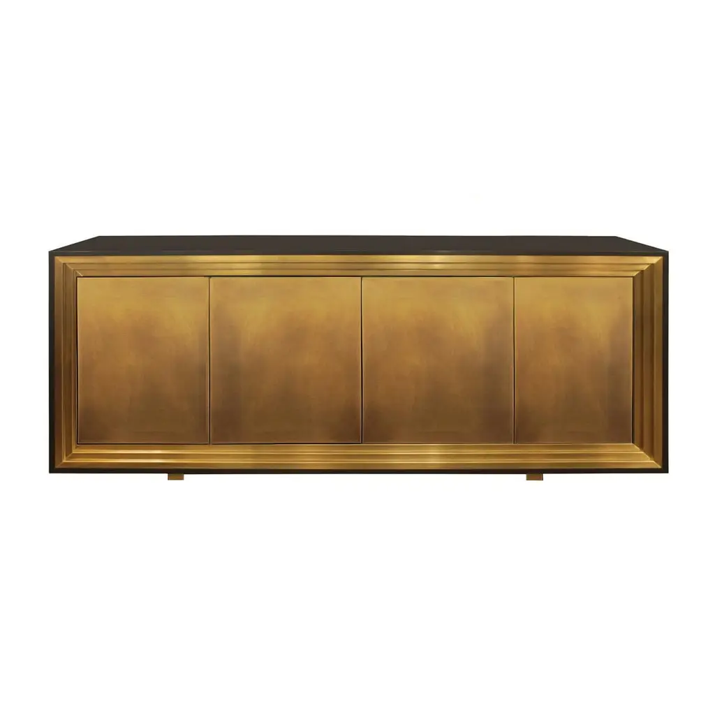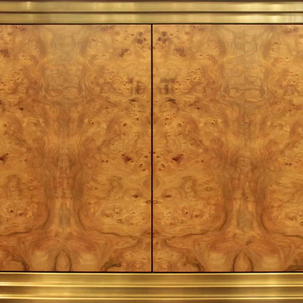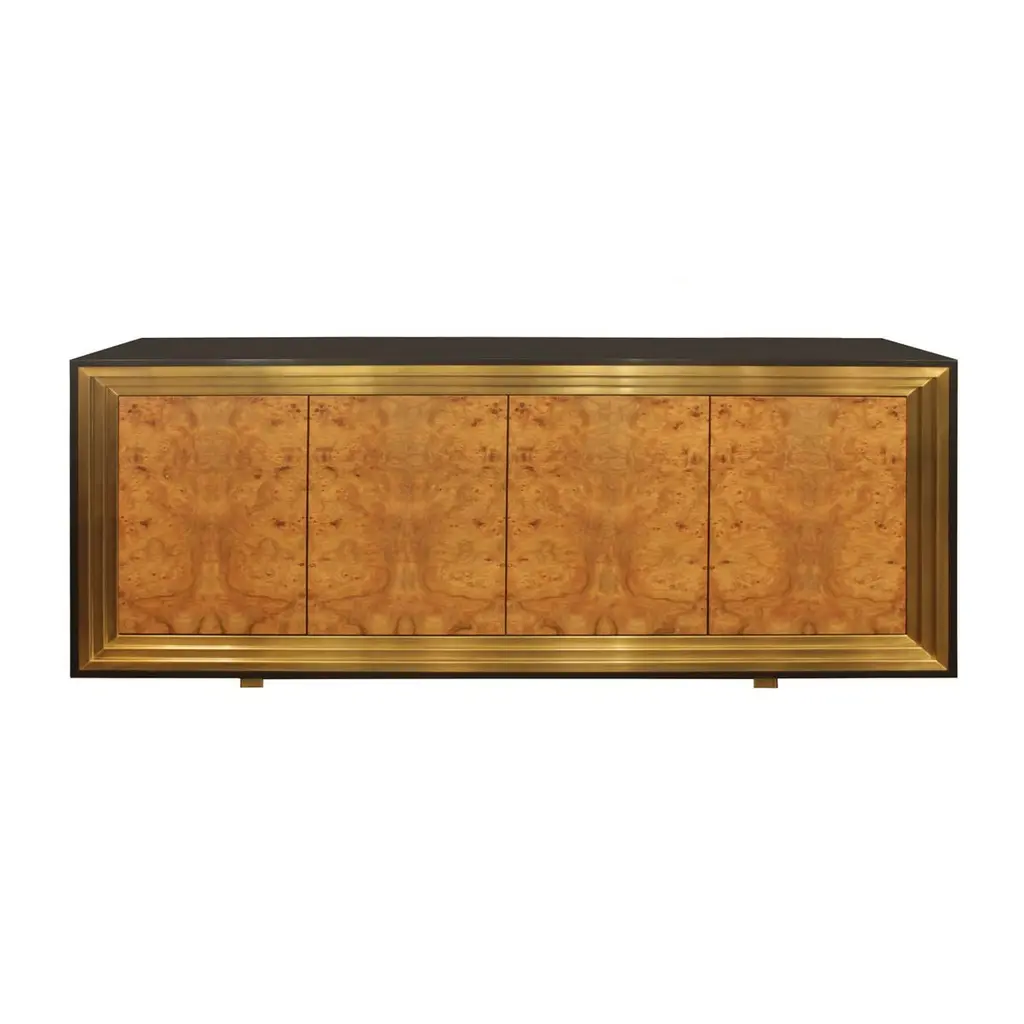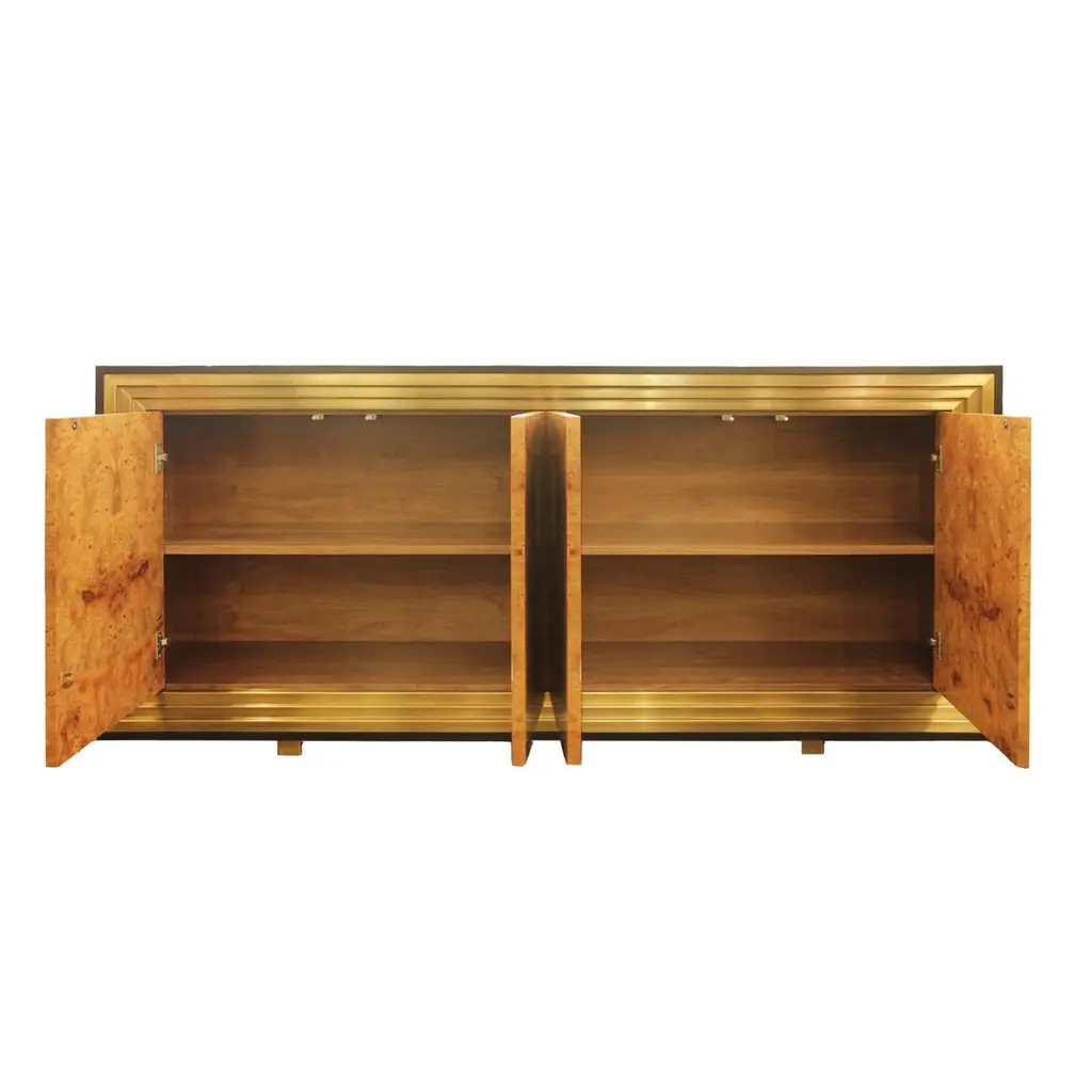 Burl Faced Four-Door Credenza With Stepped Brass Framed Front