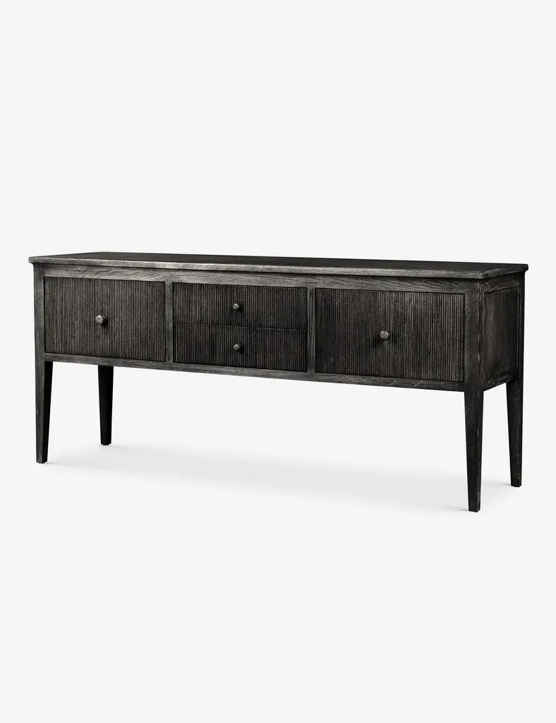 Four Hands brings their exceptional craftsmanship to a timeless collection rooted in Amber Lewis' perennial California style. Reeded details bring engaging style to a classic console table with four drawers. The large outer drawers and compact center drawers add visual interest, while tapering legs create the perfect finishing touch for a sofa table with easy storage.