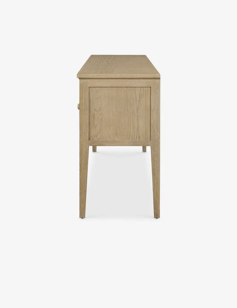Four Hands brings their exceptional craftsmanship to a timeless collection rooted in Amber Lewis' perennial California style. Reeded details bring engaging style to a classic console table with four drawers. The large outer drawers and compact center drawers add visual interest, while tapering legs create the perfect finishing touch for a sofa table with easy storage.