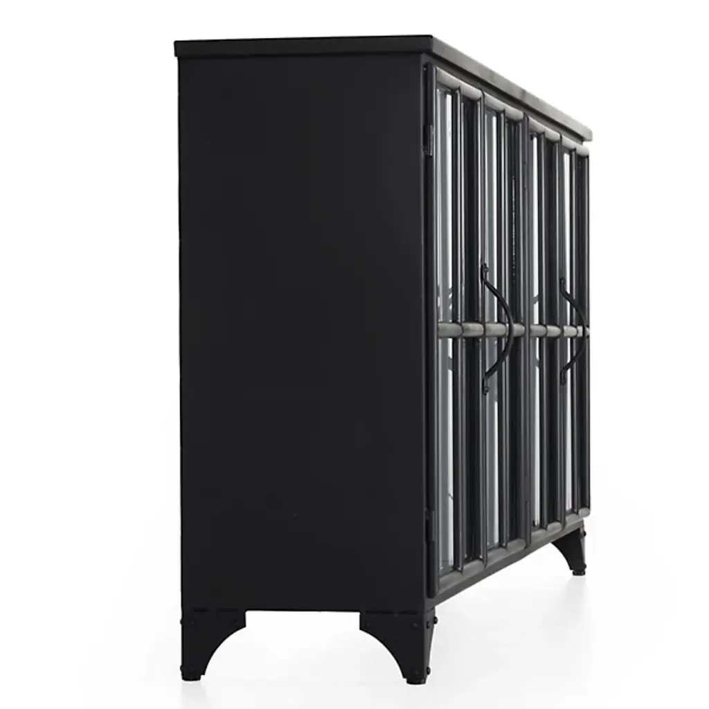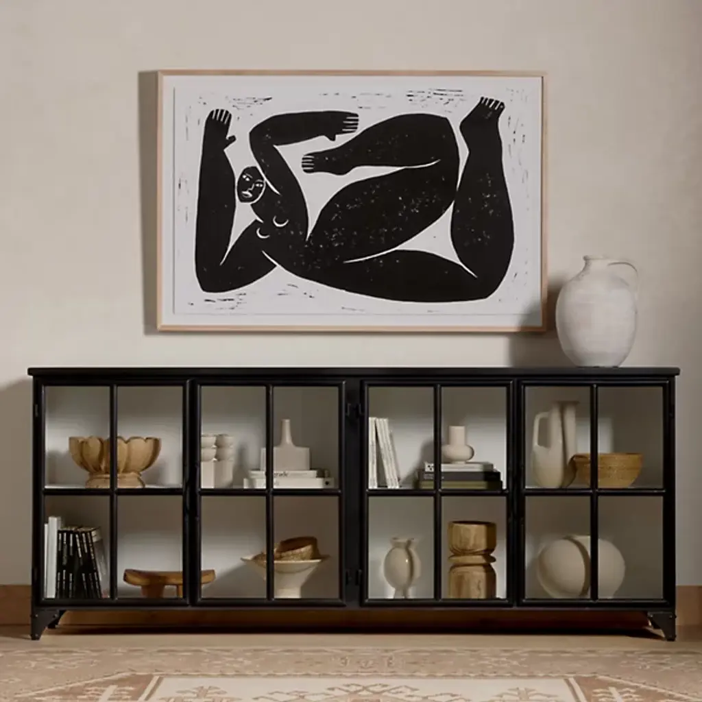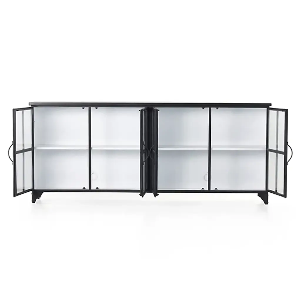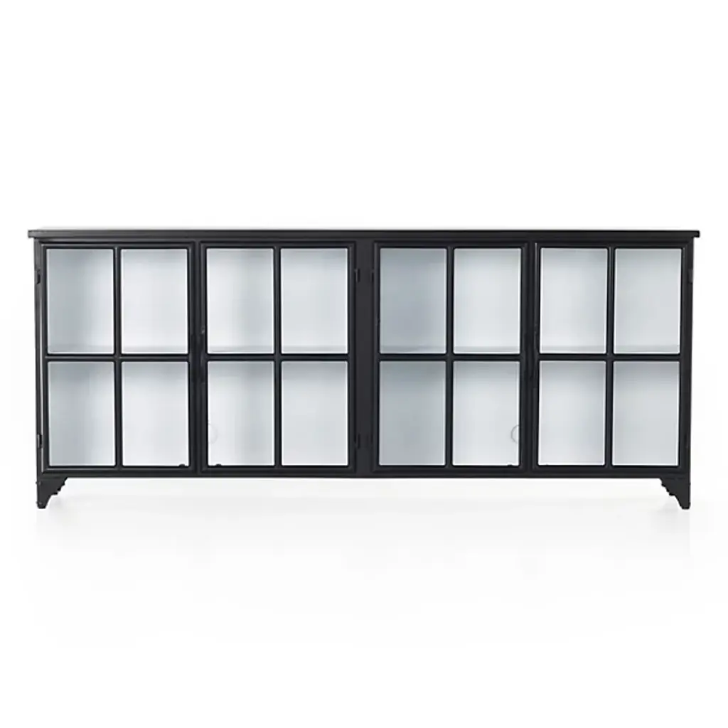 The Camilla Sideboard from Four Hands gives your gathering spaces a sophisticated, decorative character. Your sideboard is composed of durable iron and is balanced by discreet, tapered legs. The doors of this furnishment are fitted with beautiful, tempered glass. The handles are curved, so you can easily open Camilla’s doors. The Camila Sideboard is well-suited for displaying your favorite vases, bowls, and books, as a lovely windowpane arrangement keeps your possessions visible.