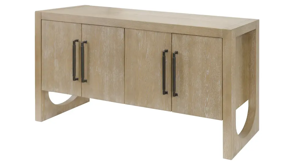 Introducing the Canyon Drive Sideboard; meticulously crafted to elevate your workspace. Embracing a timeless aesthetic, each piece boasts a natural oak finish delicately enhanced by a light glaze, exuding sophistication, and warmth. Featuring heavy bar pull hardware and bold U shapes on the desks and storage solutions that are sure to make a statement in any workspace.