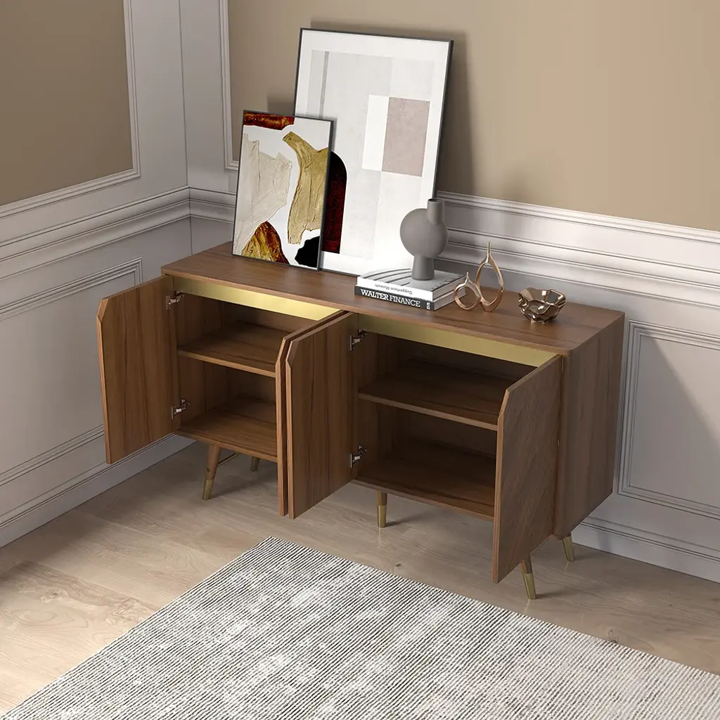 Capet Mid-Century 63" Walnut Sideboard Buffet 4-Door Kitchen Cabinet Adjustable Shelves