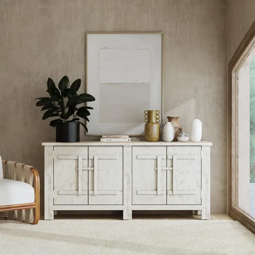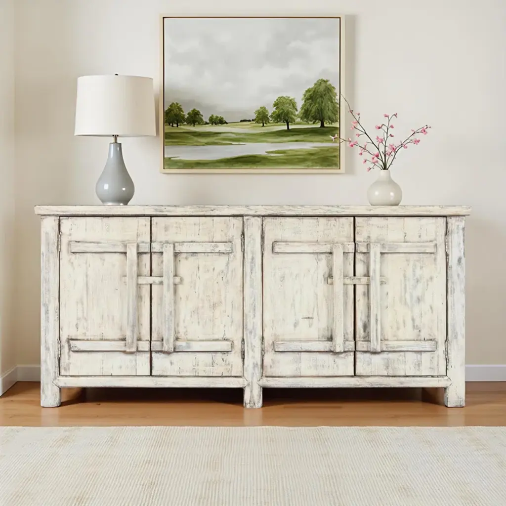 Constructed from reclaimed pine wood, this sideboard features clean, classic lines and a rustic finish that infuses the piece with an old-world charm and warmth that brightens any setting. The timeless design complements a variety of styles, while the rustic finish and aged wood give an antique-like quality to the piece.