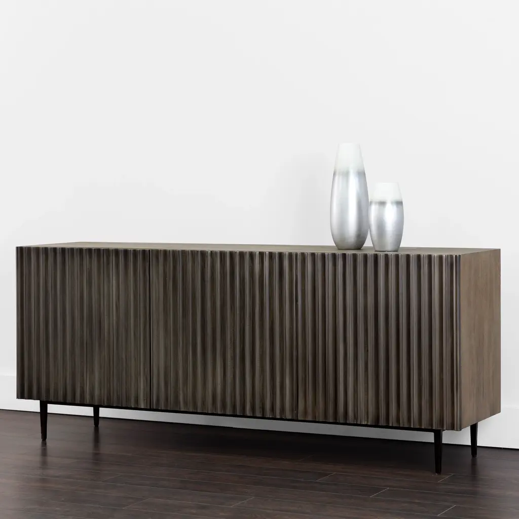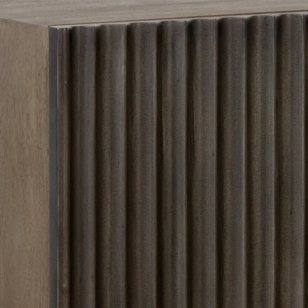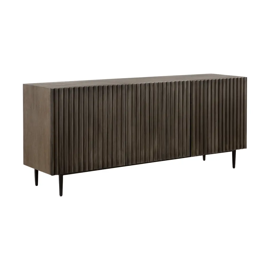 The Carlin Sideboard from Sunpan is a bold and commanding addition to any dining, living, or lounge space. Crafted with grey mango wood and detailed sculpting, it exudes urban and contemporary sophistication. Made in India by skilled artisans, each piece is unique with natural variations that add to its character. Highlights