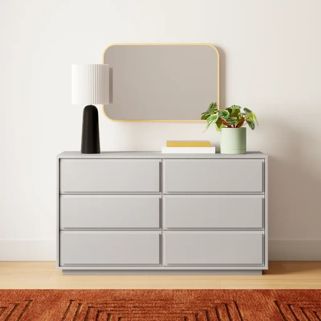 Minimal lines, contemporary vibes. Combining a pared-back silhouette with a simple finish, this sideboard delivers clutter-free storage and serving space for your dining area or living room. Six amply sized push-open drawers create a clean facade, while the finished back opens up arrangement options. An included wall anchor provides additional stability.