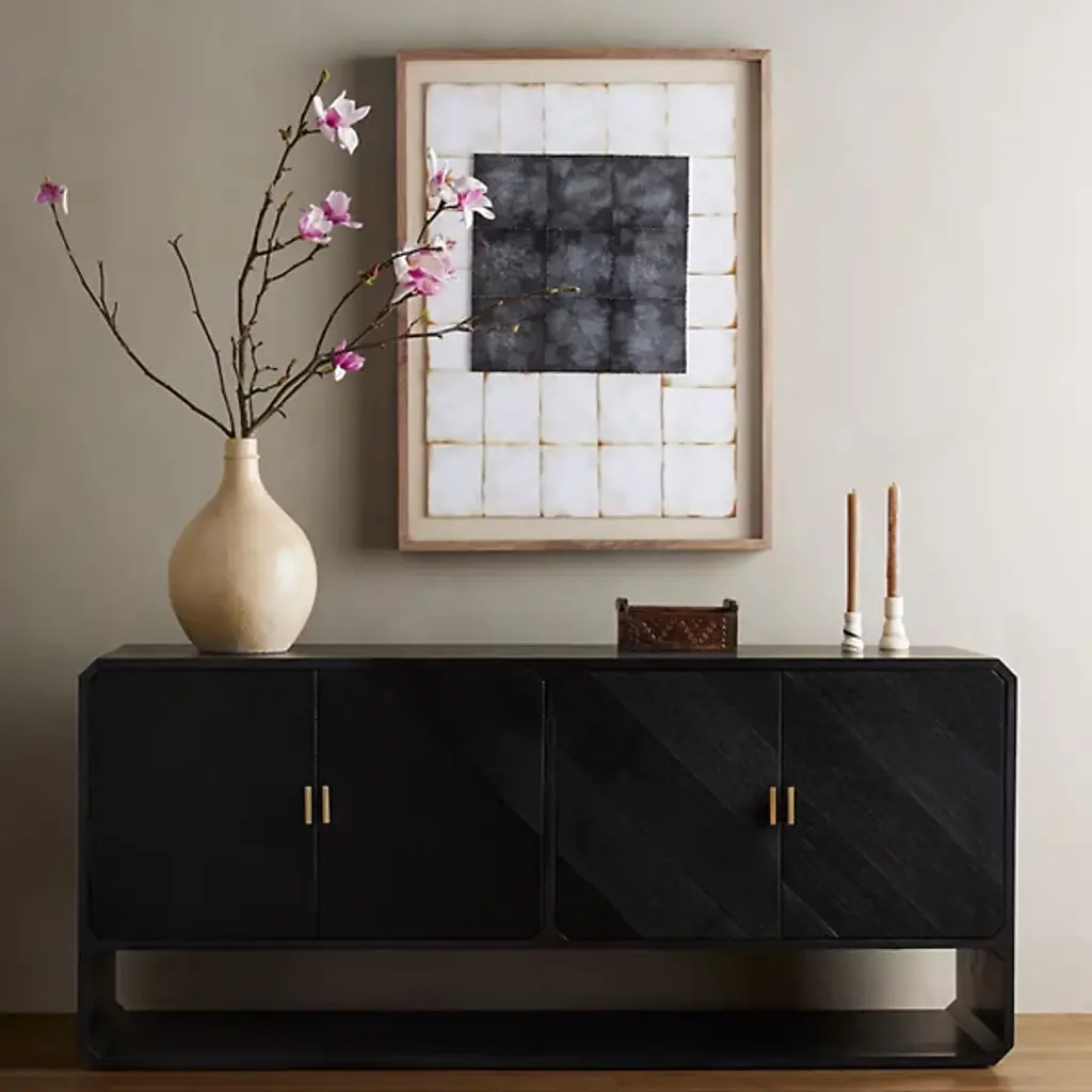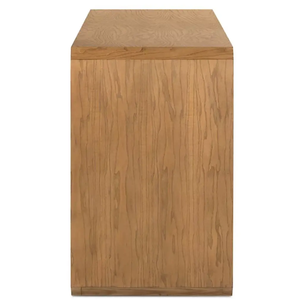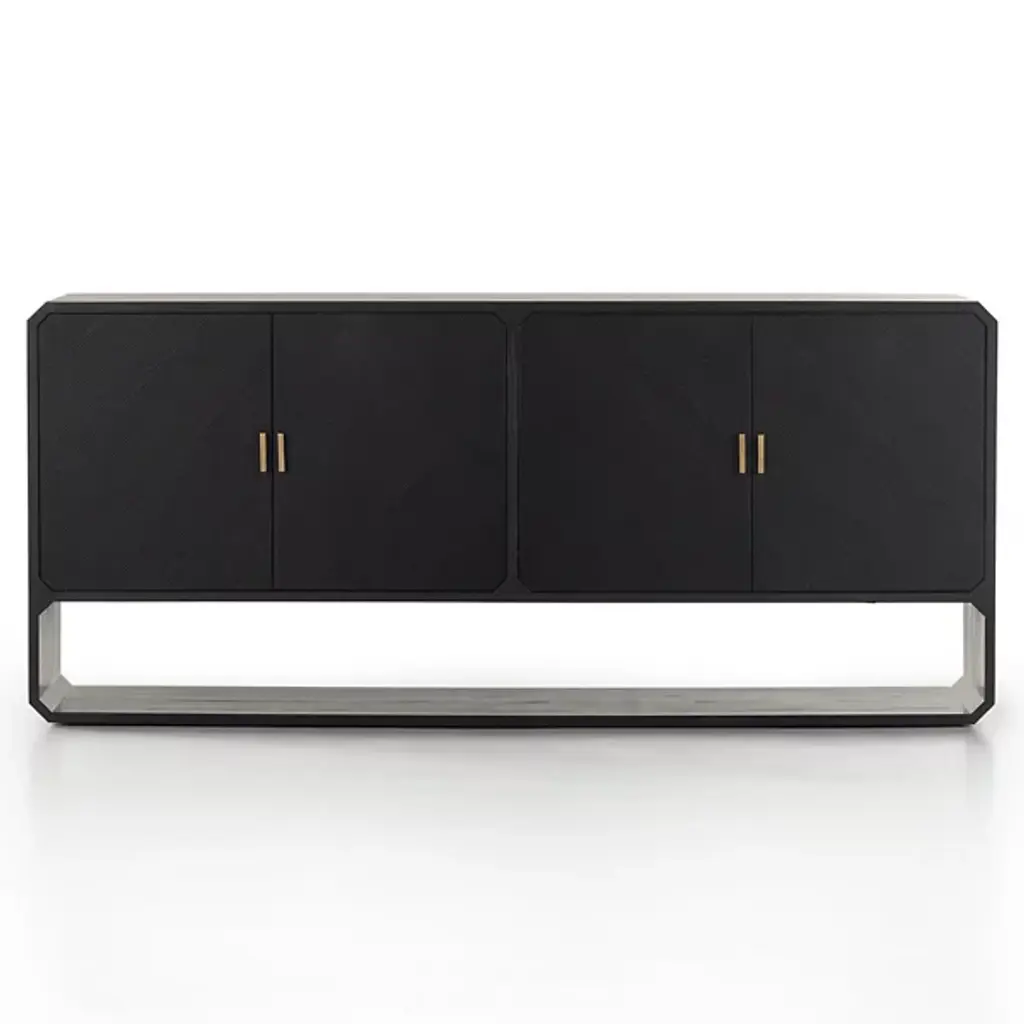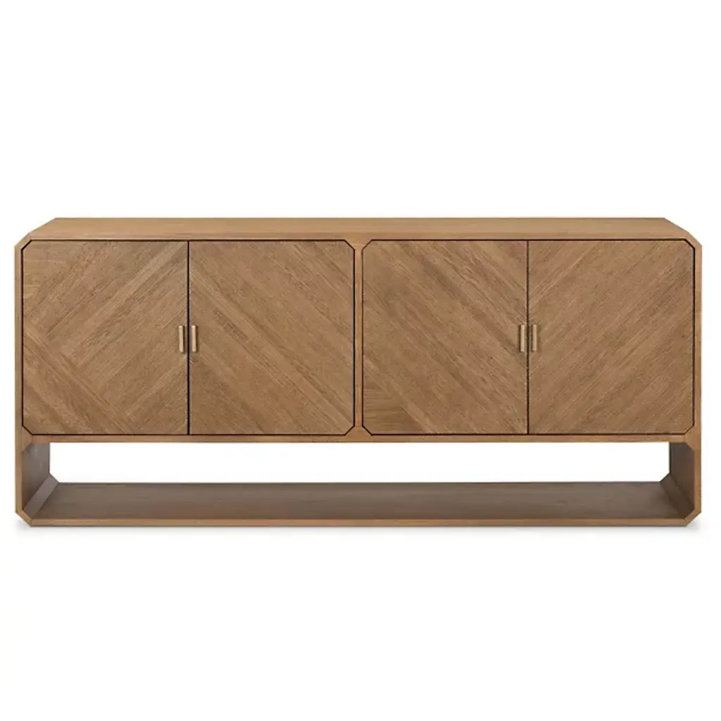 The Caspian Sideboard from Four Hands merges modern elegance with practical functionality. Inspired by 70s design, its natural ash veneer showcases refined reeding and chamfered edges for a sleek, linear look. Satin brass handles add a sophisticated touch, while the extended base creates a sense of openness. With six soft-close drawers, this sideboard offers ample storage, blending style and utility to become an elegant, ageless addition to any contemporary space.