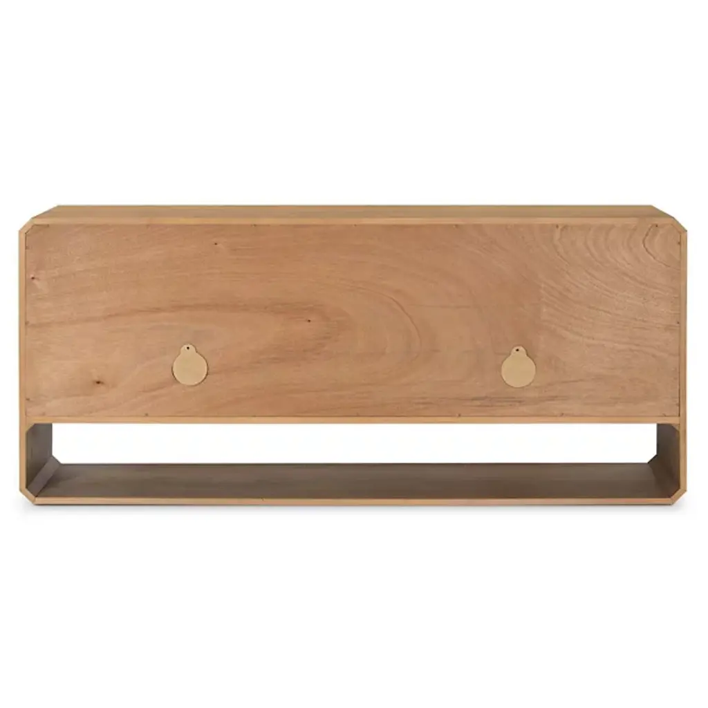 The Caspian Sideboard from Four Hands merges modern elegance with practical functionality. Inspired by 70s design, its natural ash veneer showcases refined reeding and chamfered edges for a sleek, linear look. Satin brass handles add a sophisticated touch, while the extended base creates a sense of openness. With six soft-close drawers, this sideboard offers ample storage, blending style and utility to become an elegant, ageless addition to any contemporary space.