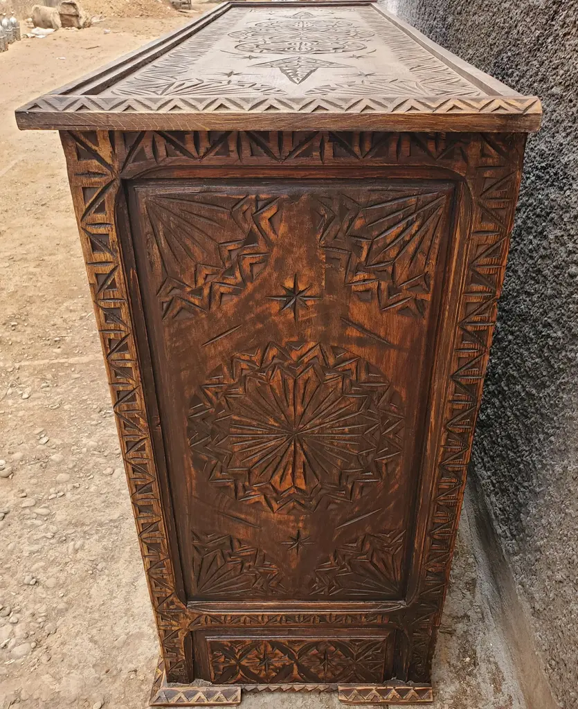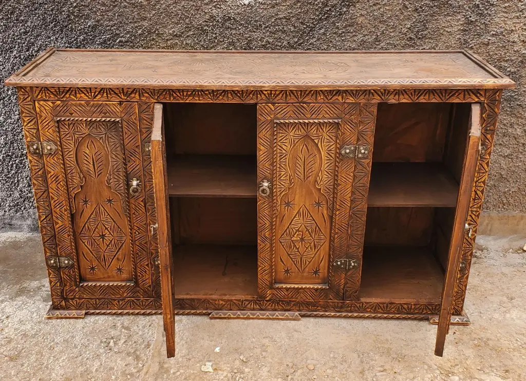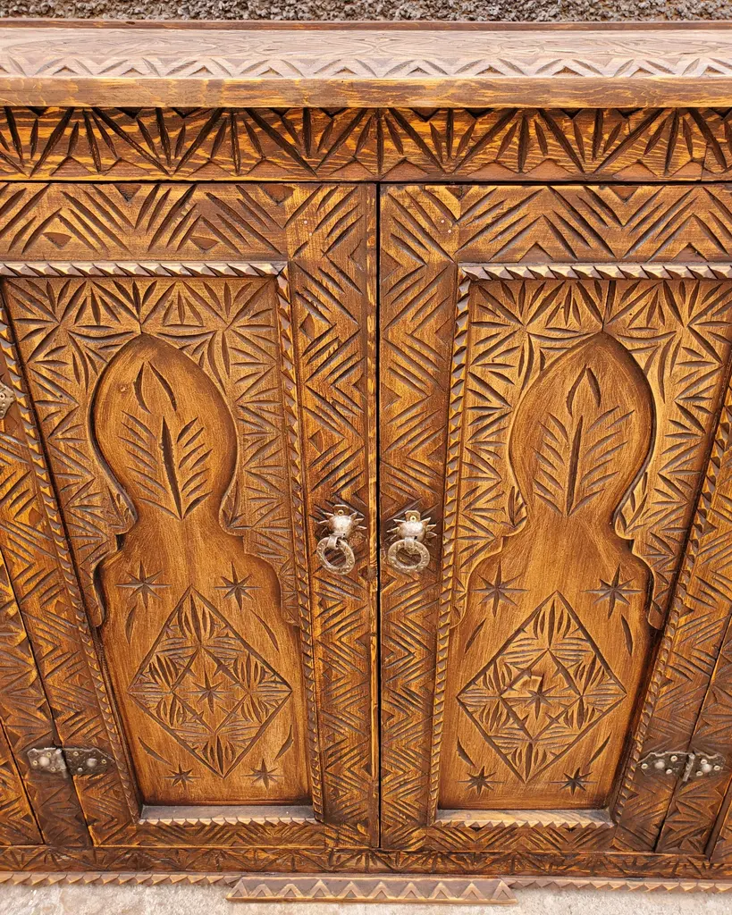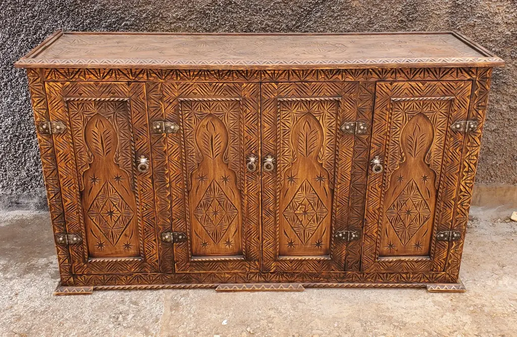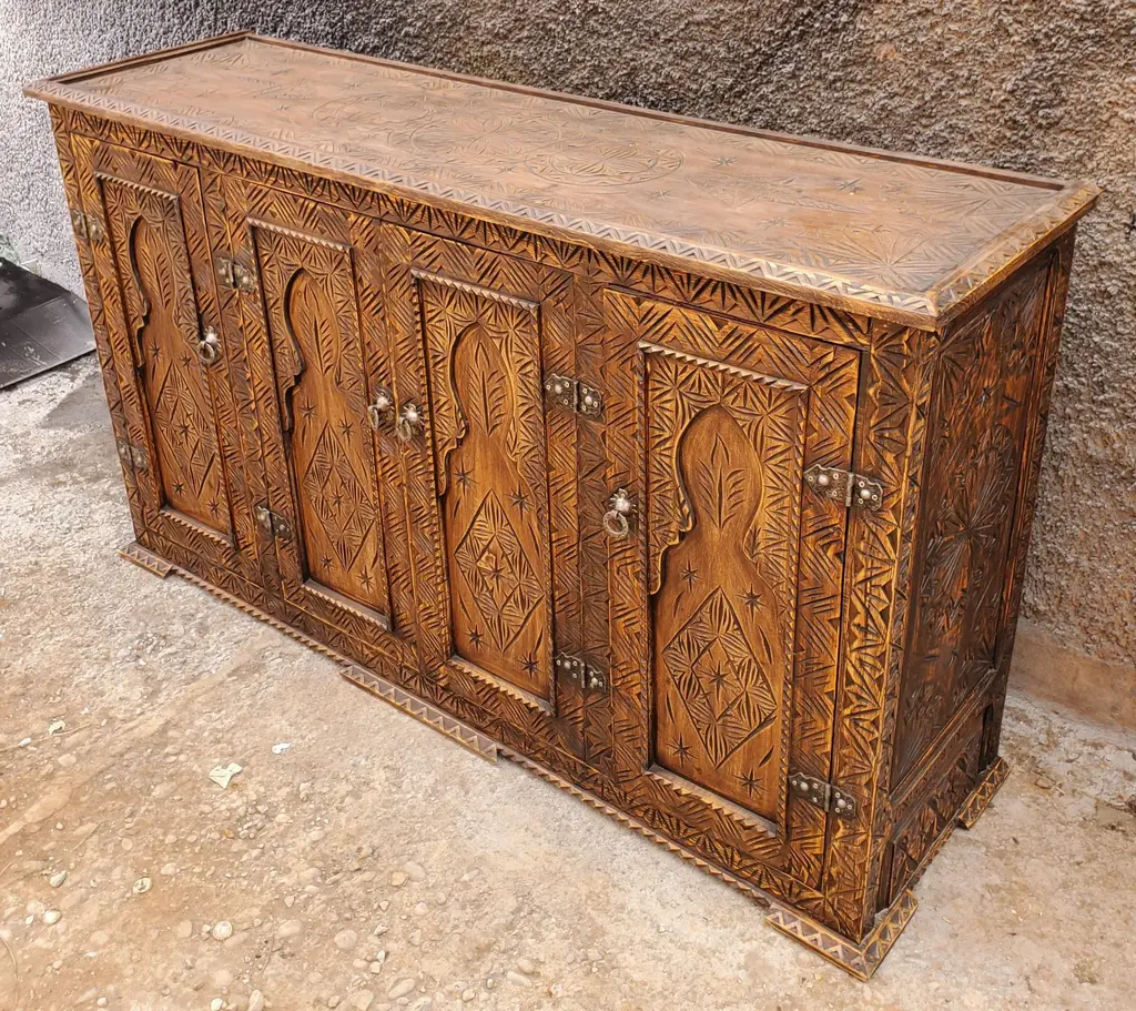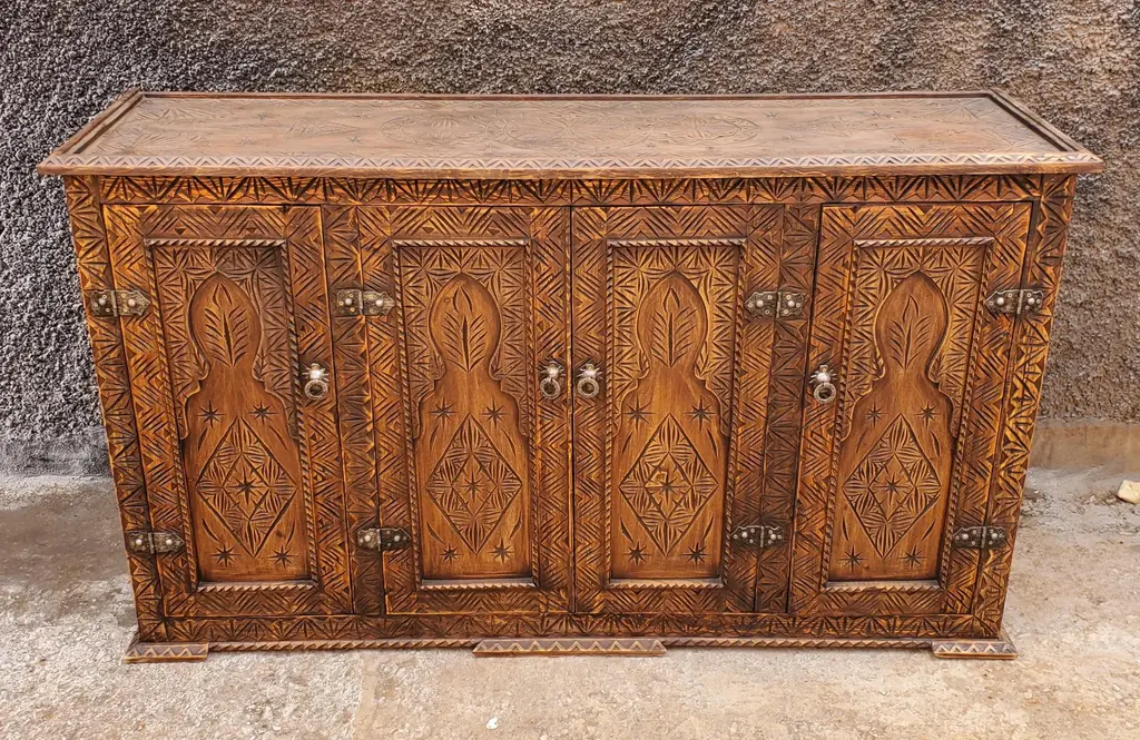 Chelhaoui Moroccan Hand Carved Berber Style Wooden Sideboard