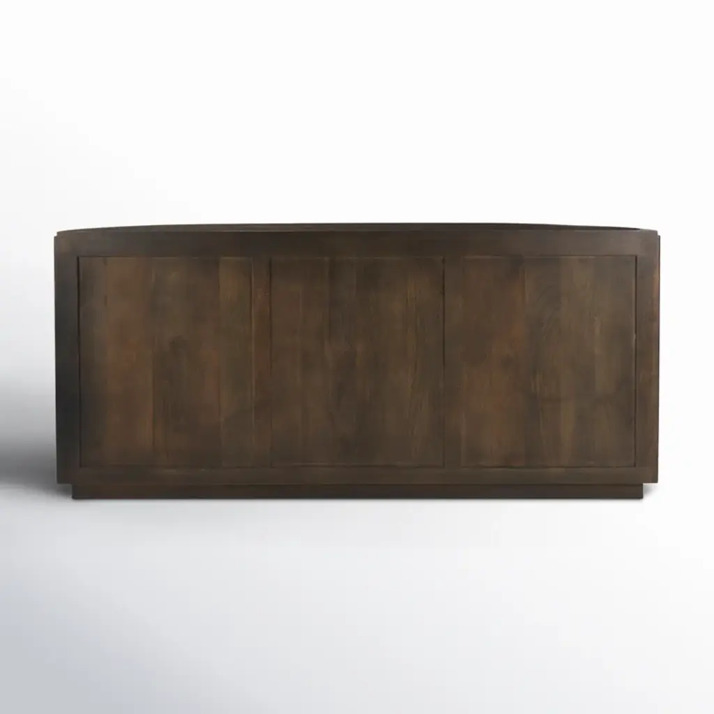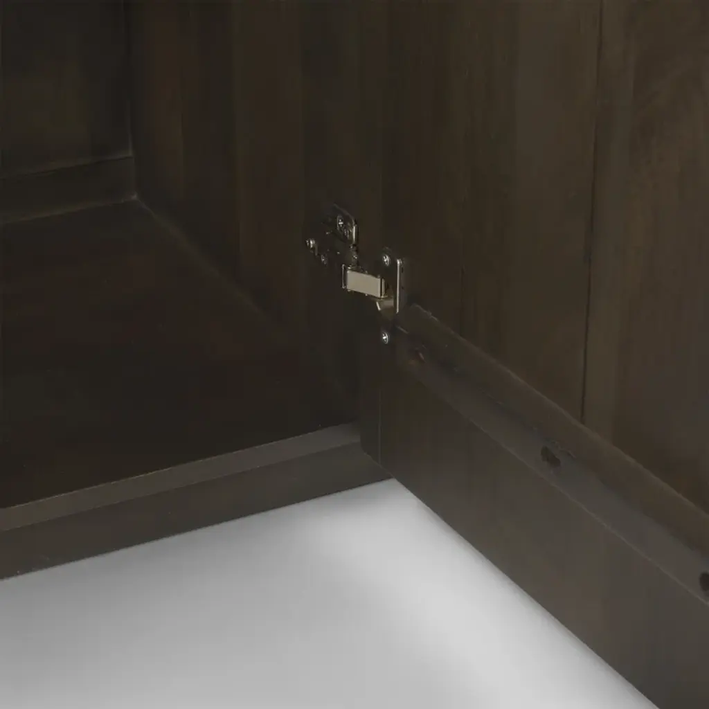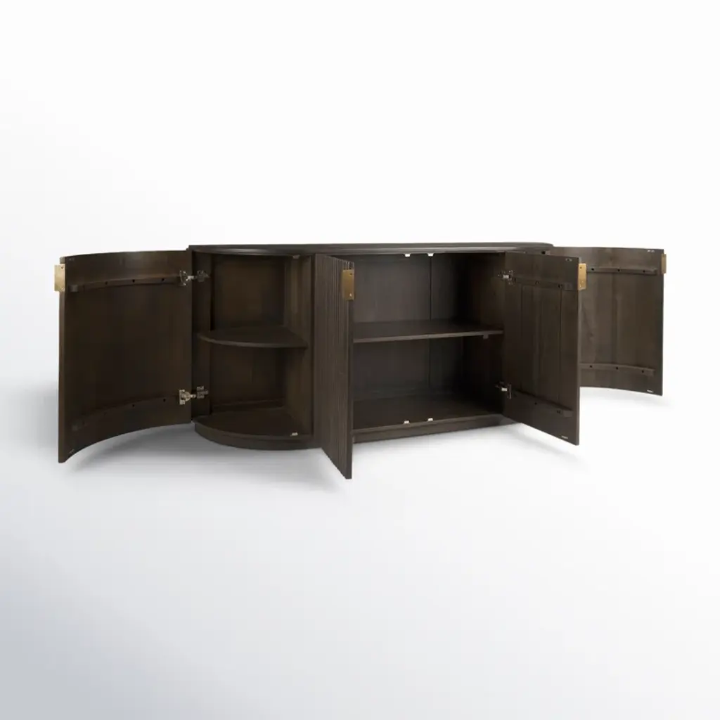This sideboard brings both style and functionality to your dining room or living space. Crafted from kiln-dried solid Mango wood, it showcases a natural wood grain color variation that adds warmth and character. The ribbed detailing on the four doors, paired with gold-finished hardware, offers a refined touch to its rustic vibe. Inside, you'll find six shelves that provide ample storage for your dinnerware, linens, or other essentials. The magnetic catch ensures the doors stay securely closed. For added stability, consider using a wall anchor (sold separately).