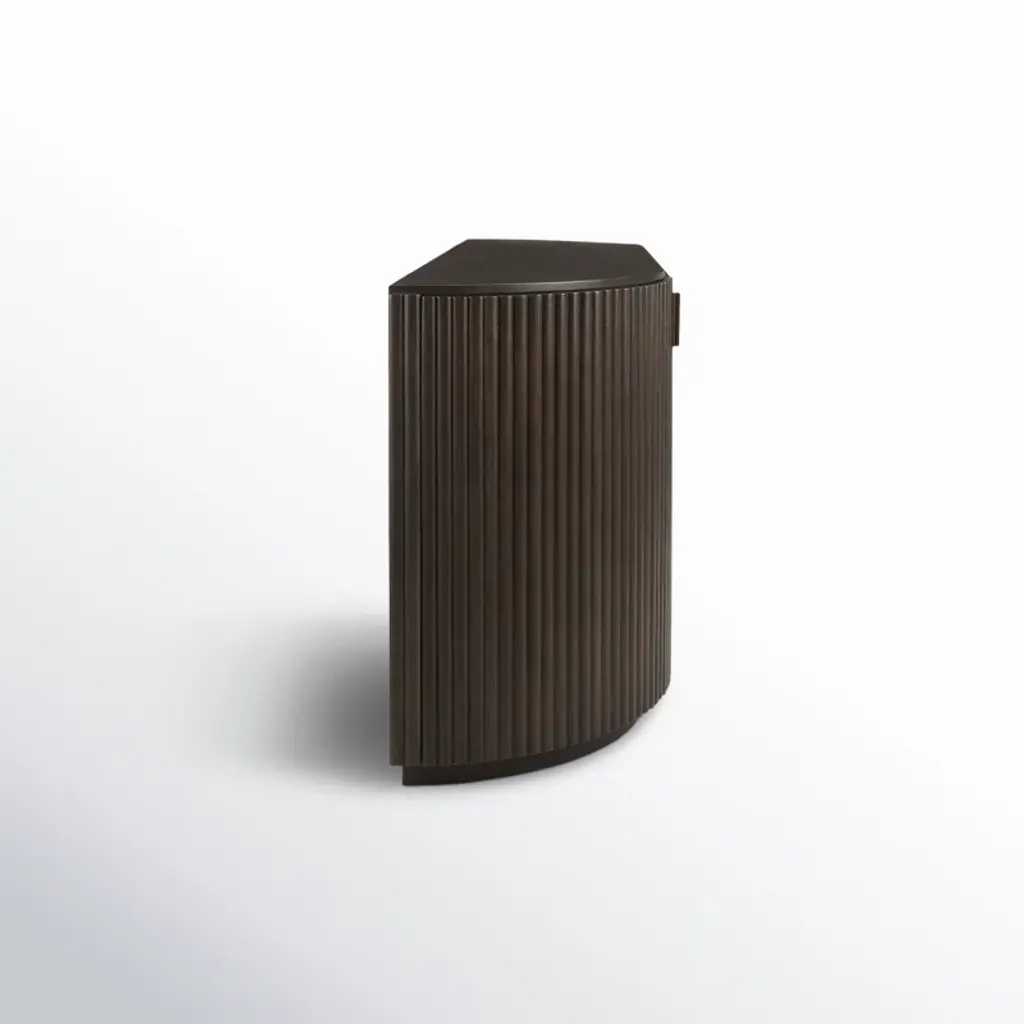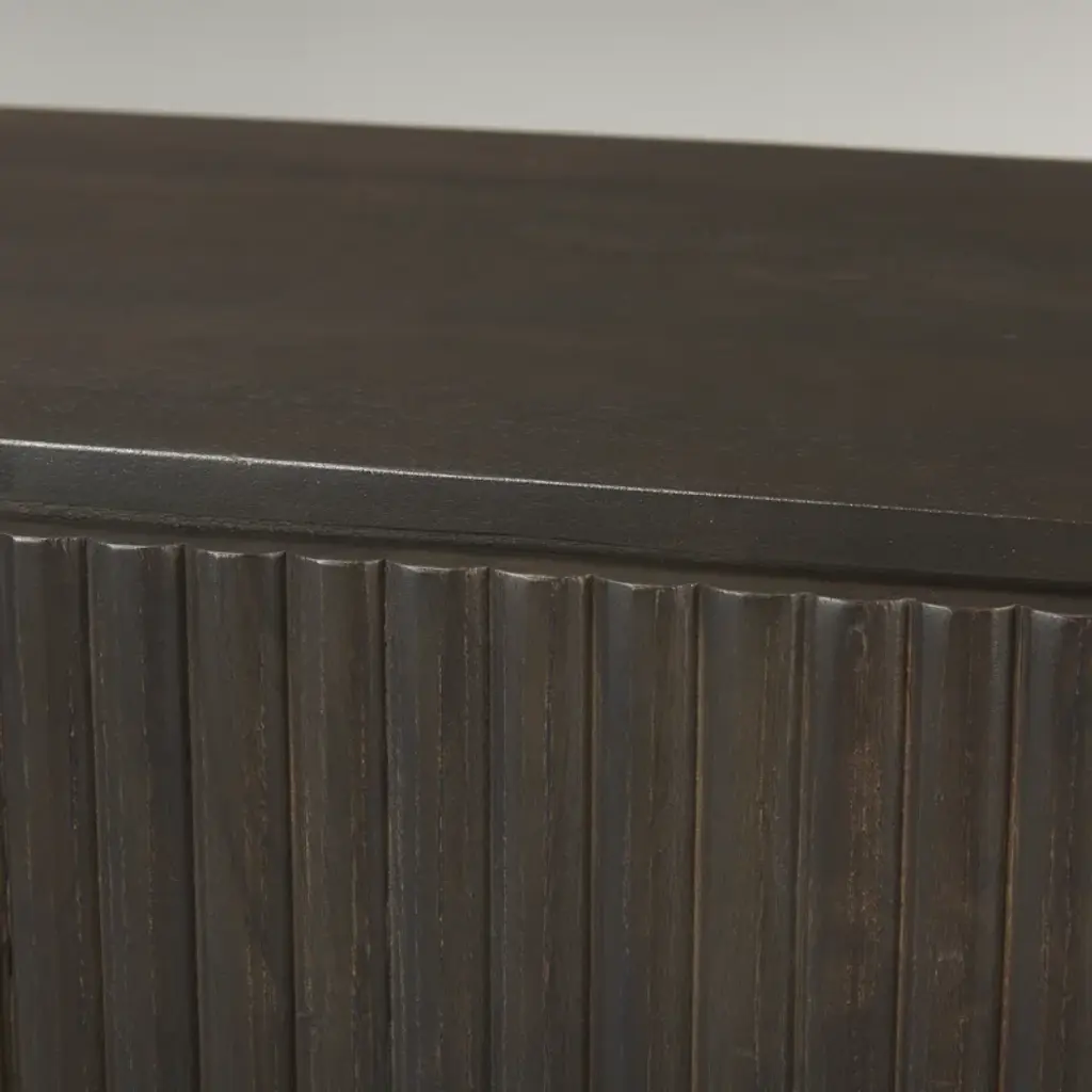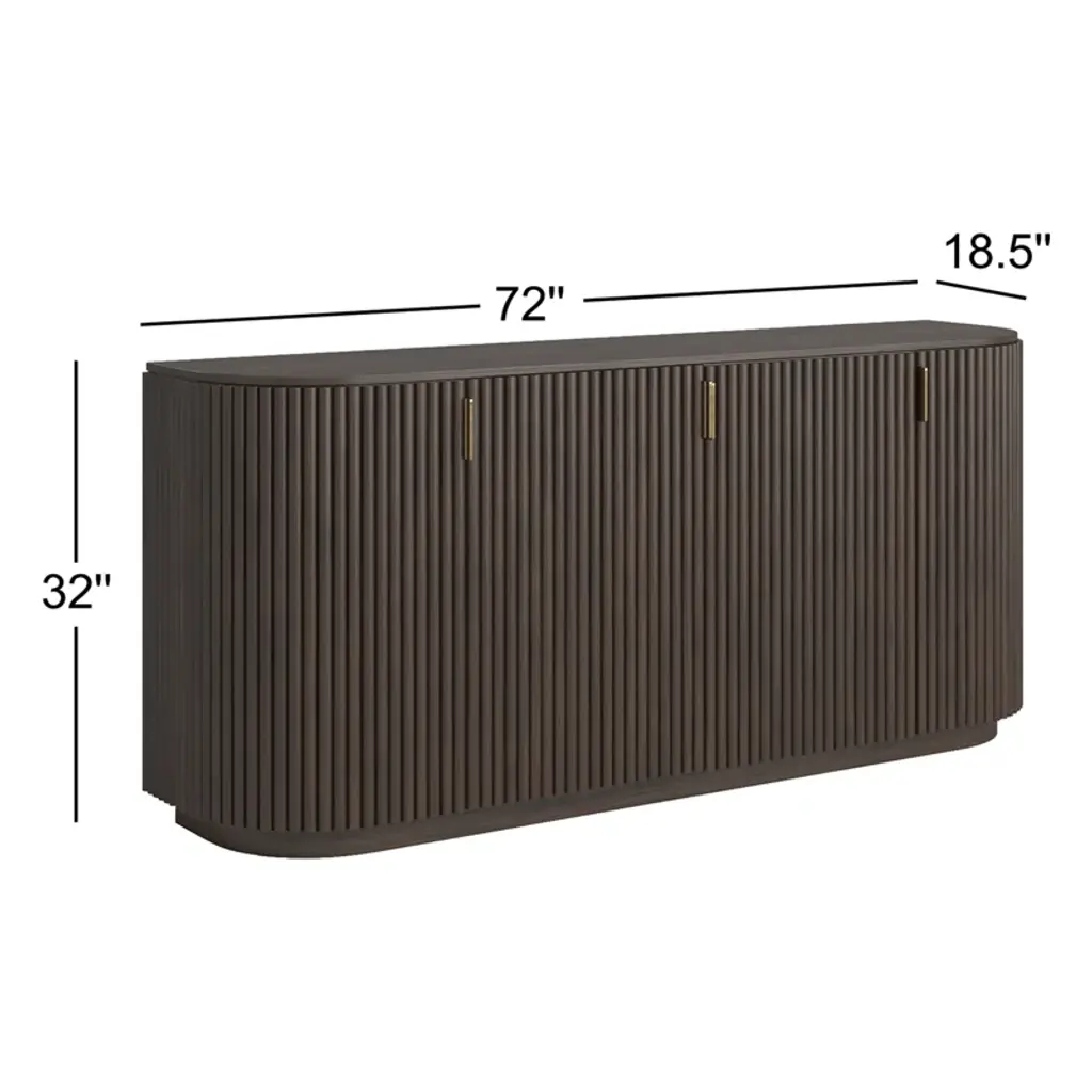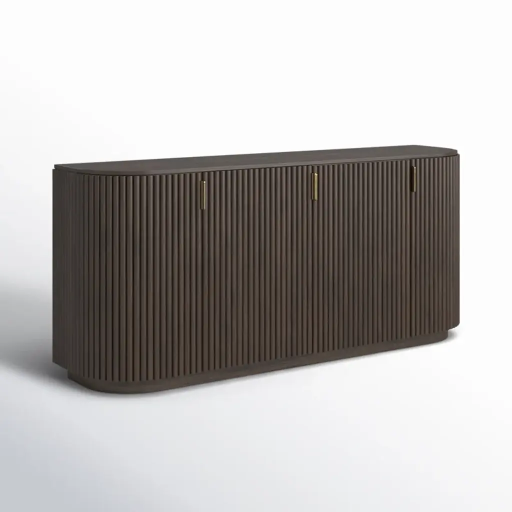 This sideboard brings both style and functionality to your dining room or living space. Crafted from kiln-dried solid Mango wood, it showcases a natural wood grain color variation that adds warmth and character. The ribbed detailing on the four doors, paired with gold-finished hardware, offers a refined touch to its rustic vibe. Inside, you'll find six shelves that provide ample storage for your dinnerware, linens, or other essentials. The magnetic catch ensures the doors stay securely closed. For added stability, consider using a wall anchor (sold separately).