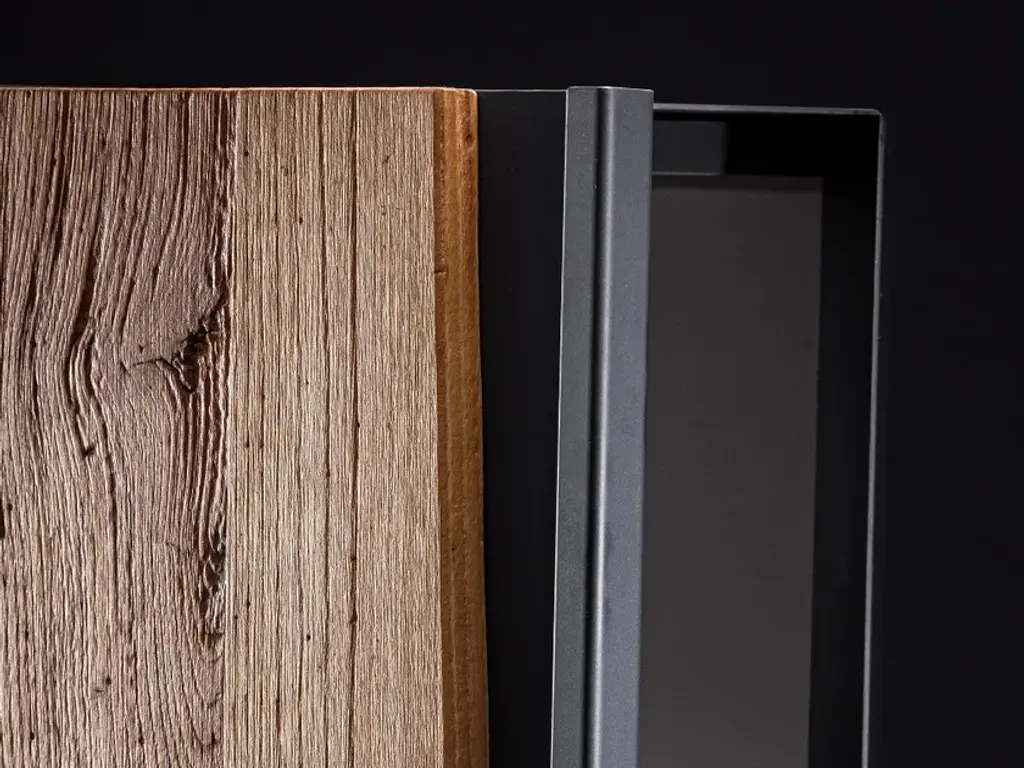 A monolith of solid chestnut and iron created from a vertical sideboard that’s modern and sophisticated. The iron frame supports a single large panel of solid wood. The intense shades of brown and the clearly-defined grain suggest a story that’s waiting to be told. The contrast between chestnut and iron celebrates the material, while the stark lines create an austere and majestic sideboard.Every Bruno Spreafico piece is unique and made to measure, with a wide choice of woods, finishes, materials, sizes and other features.
