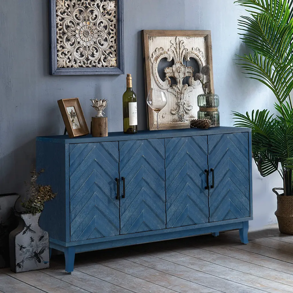 Chevron 4-Door Sideboard Cabinet - Blue