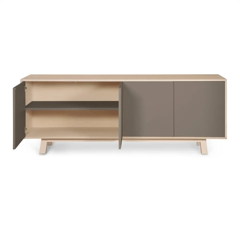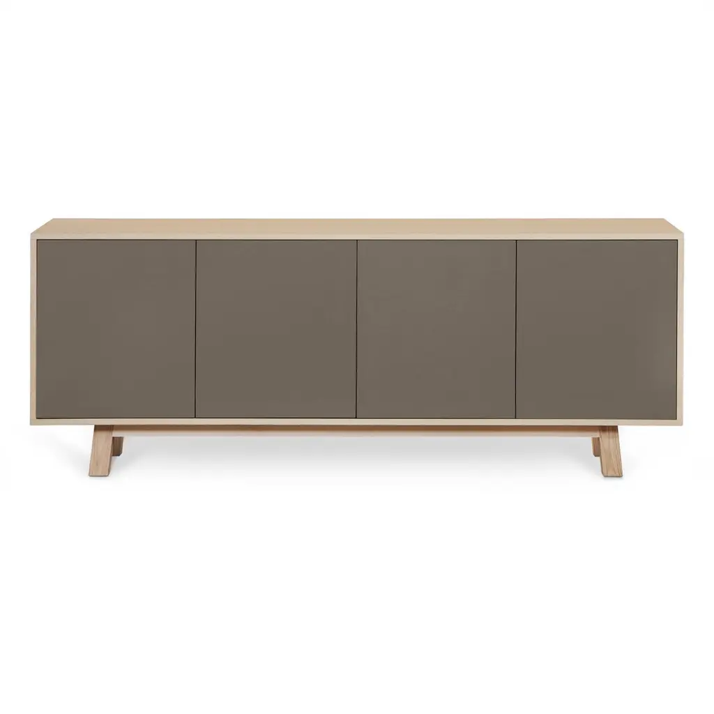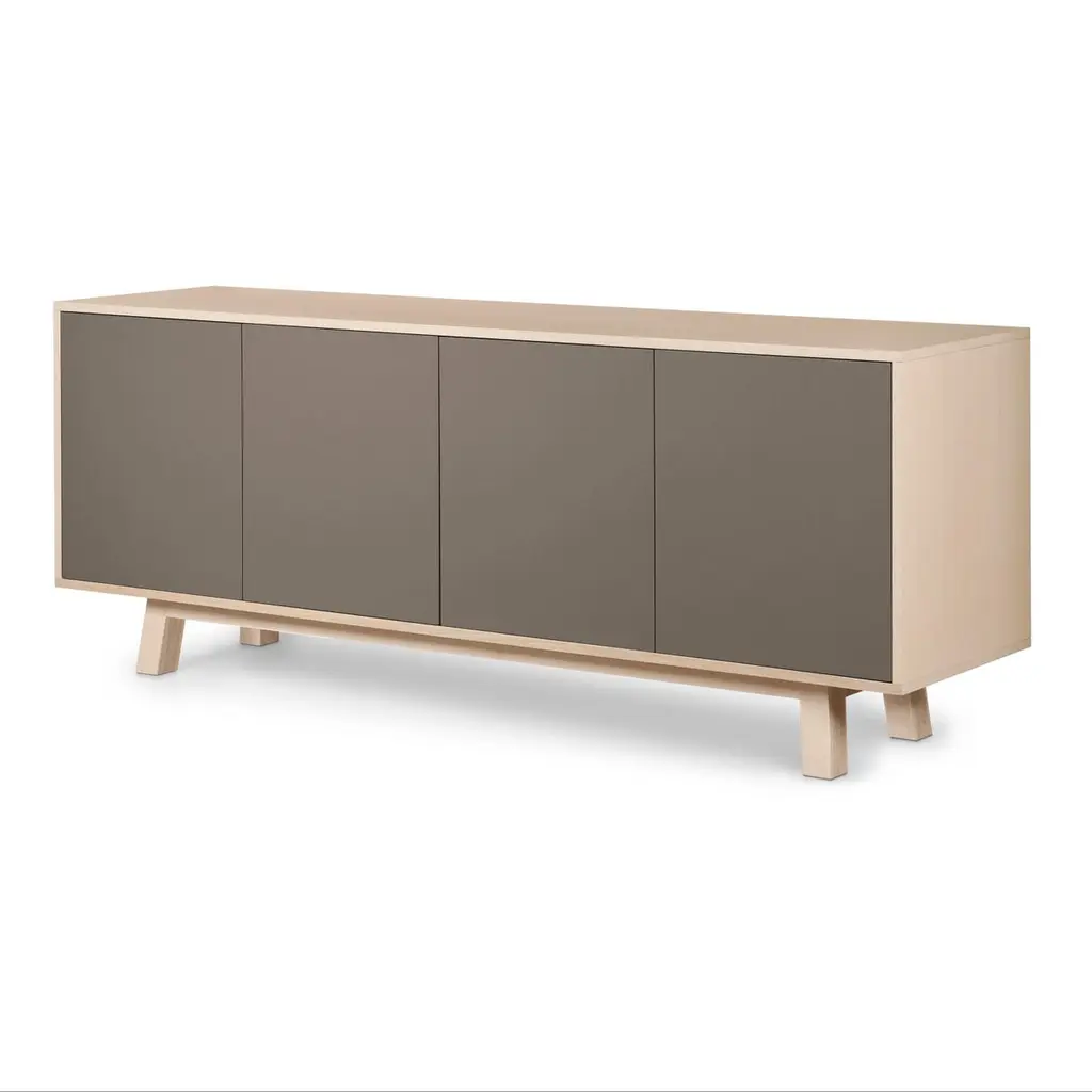 This 4-door sideboard is presented here in ash wood and is also available in French oak. No assembly is required from your side, our furniture is fully mounted in our workshop. 2 height-adjustable shelves are supplied with the buffet. To prevent damage during transport, they are positioned at the bottom of the buffet. All you have to do is place them on the cleats (supplied) at the desired height upon delivery.The 4 doors open with a « push & release » pressure on front.11 standard colors are available. Have a look at our color chart on the last picture.5 standard lengths are available from 160 cm / 63.0" to 240 cm / 94.5". ÉGÉE COLLECTIONThis low large sideboard is part of the ÉGÉE collection, designed by the Parisian designer Eric GIZARD who here adopts the refined codes of Scandinavian design. combining natural materials, elegance and sobriety of lines by adding very beautiful muted and "trendy" colors.Inside the ÉGÉE collection, the KUBE concept is designed to offer an optimized and aesthetically pleasing storage concept.MON PETIT MEUBLE FRANÇAISoffers you 100% French products. The solid wood comes exclusively from sustainably managed French forests.The manufacture and finishes are of very high quality, carried out in French workshops in Mayenne, France.