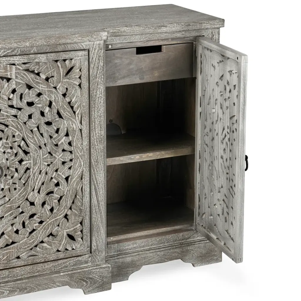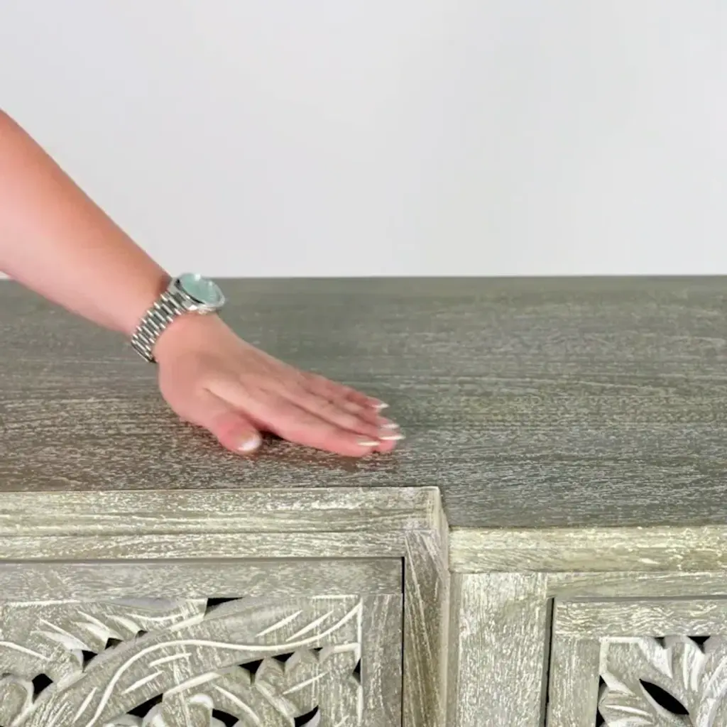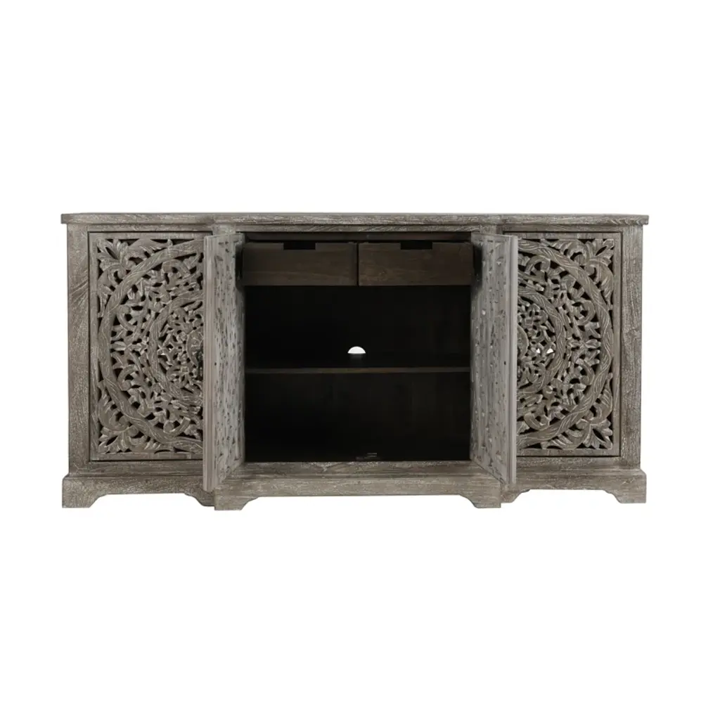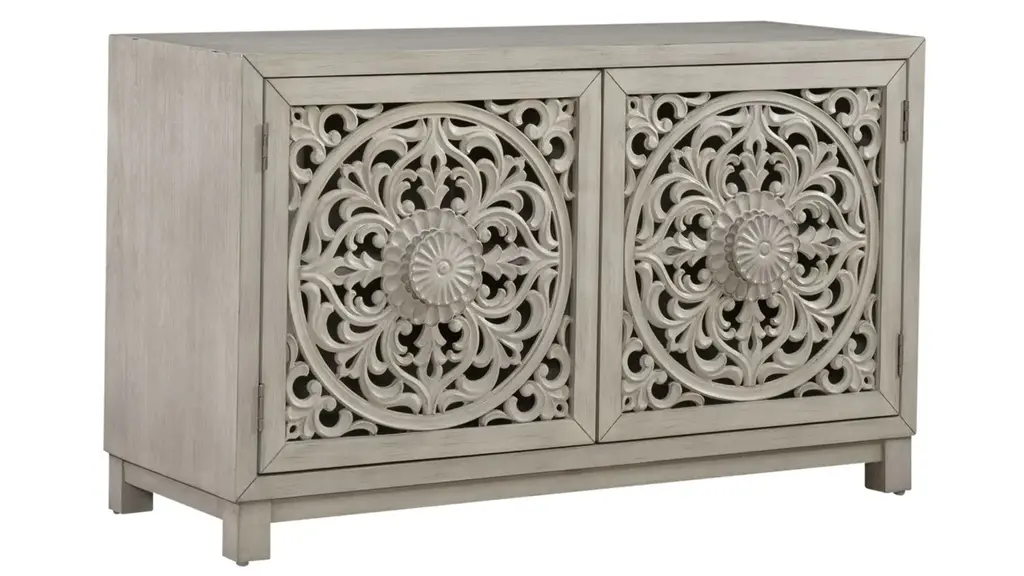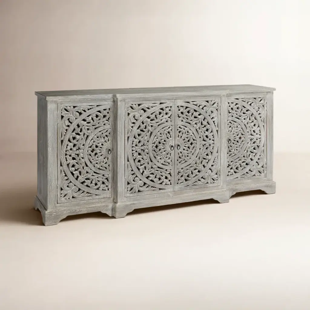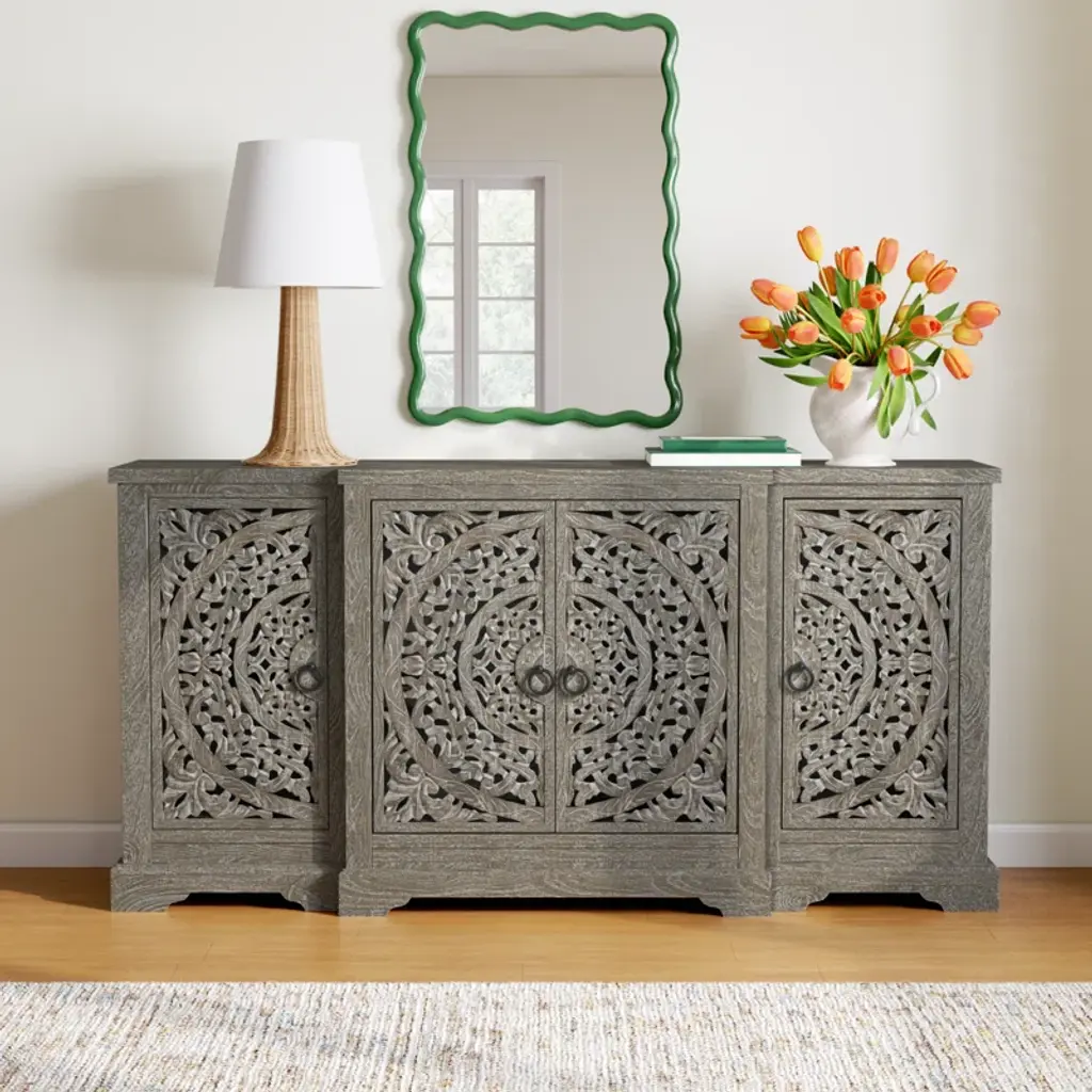 This hand-finished sideboard provides ample storage for serving ware and other dining essentials. Its handcrafted floral pattern will add some timeless design to any space. This stunning piece is a perfect conversation starter while also adding stylish storage to your home.