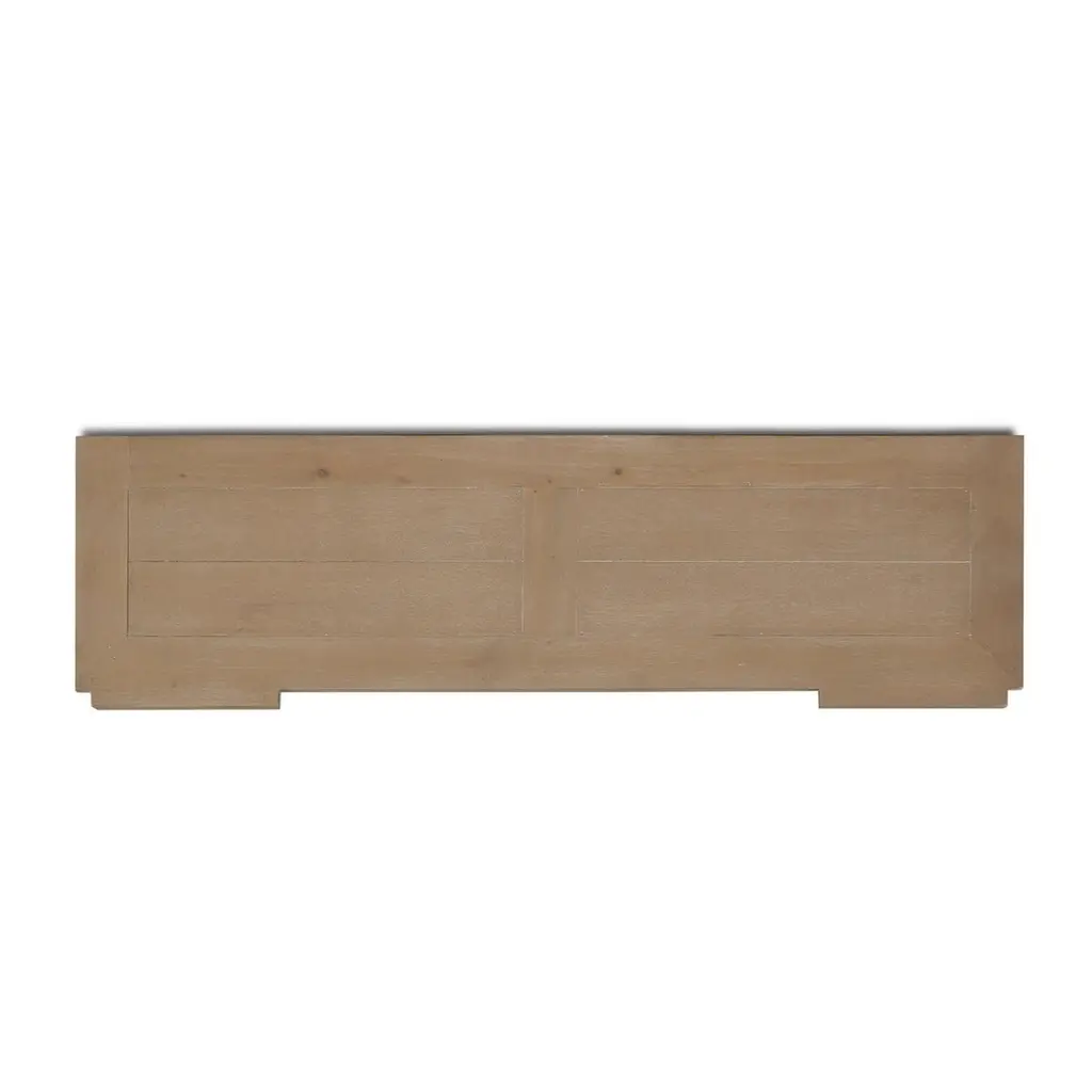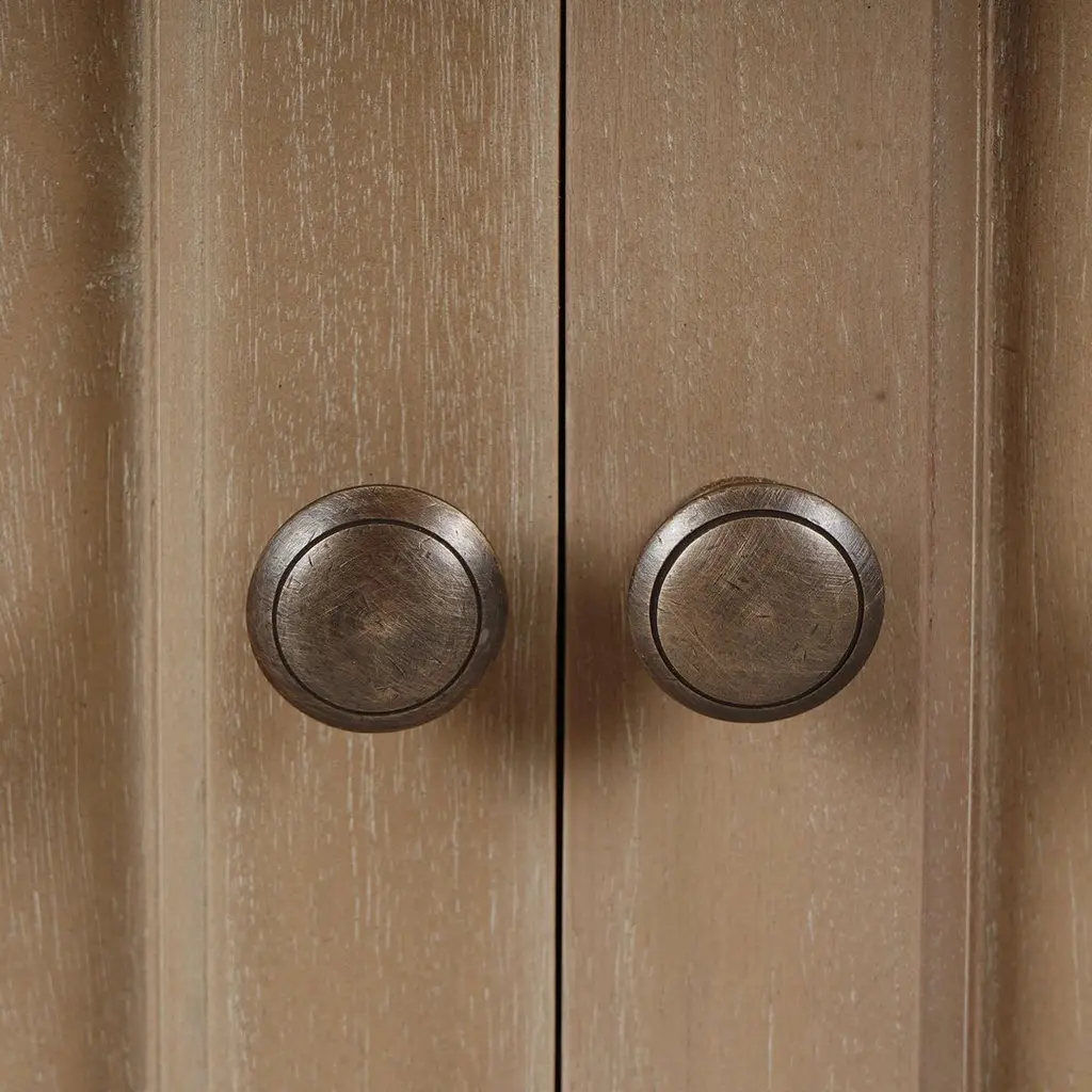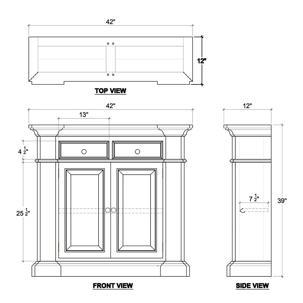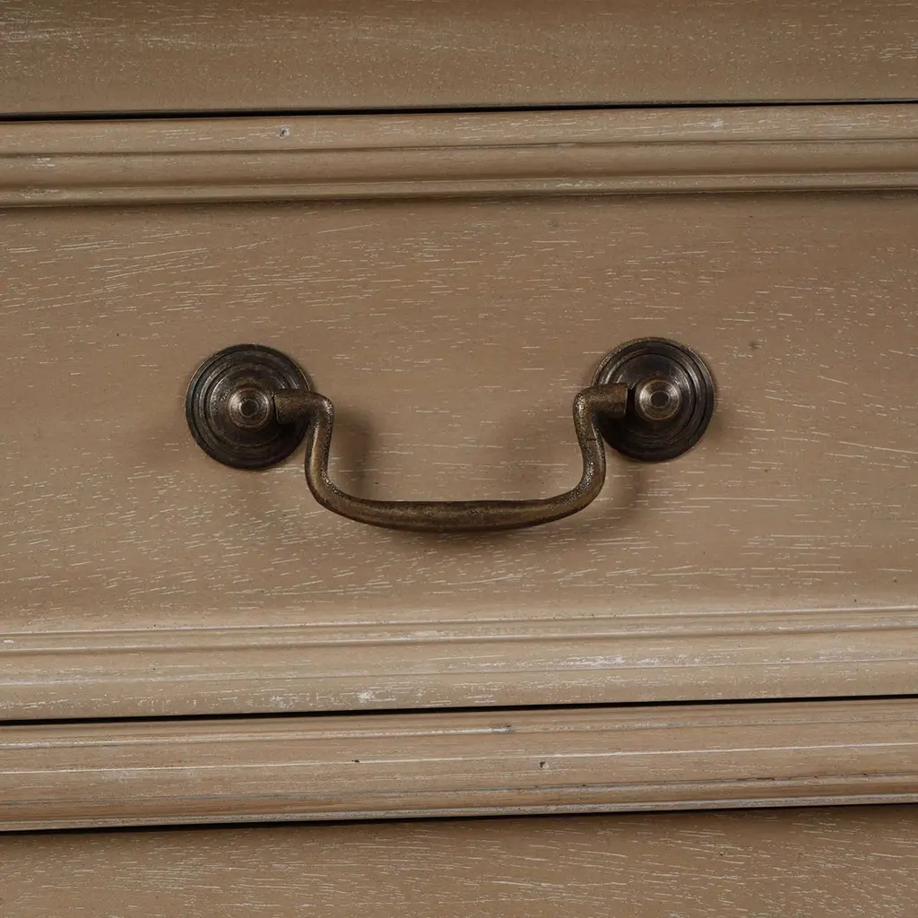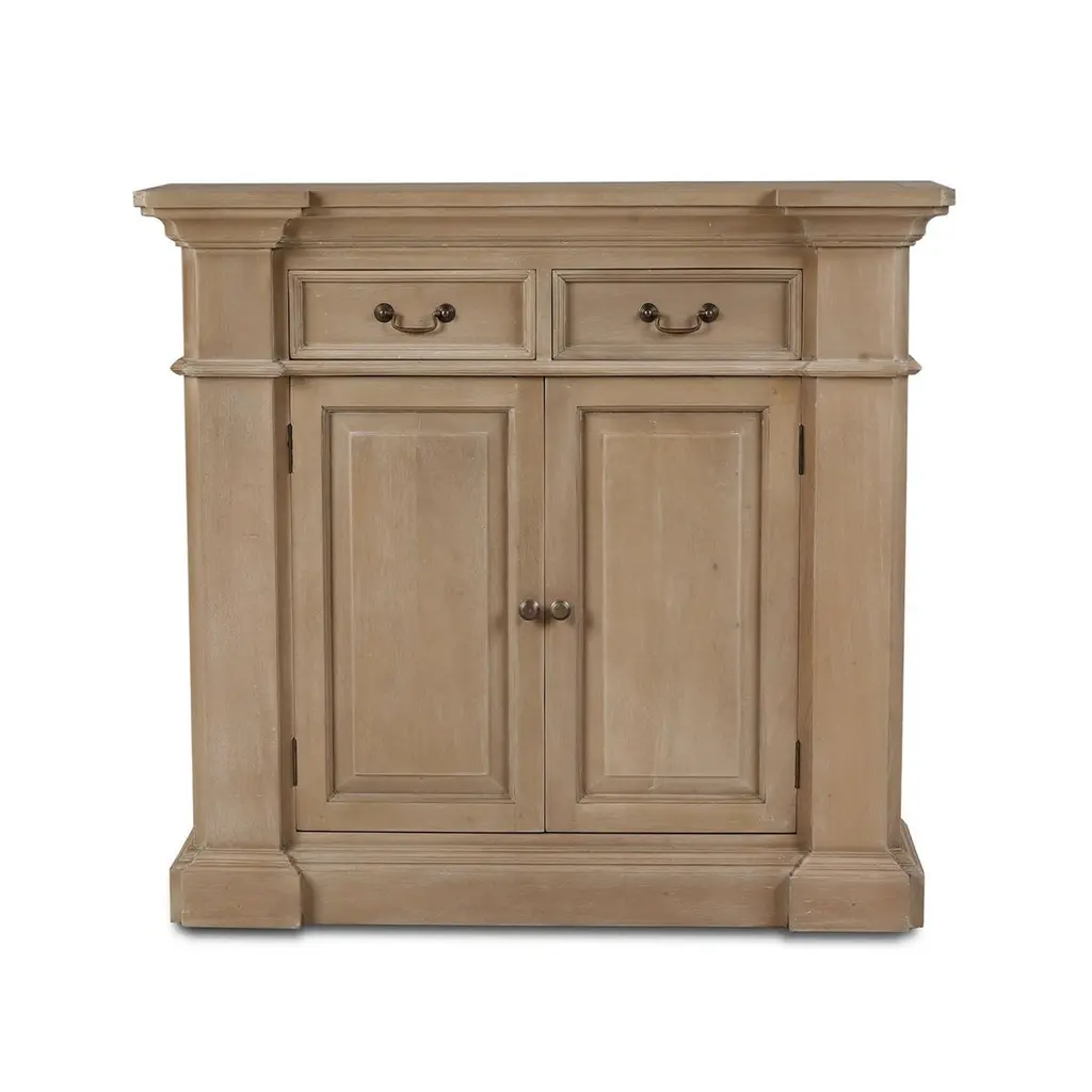 This exquisite piece combines French classic design with practical functionality, making it a perfect addition to any room.Crafted with meticulous attention to detail, this mahogany credenza features elegant paneling and classic brass drop drawer handles, adding a touch of sophistication to your decor. The sandbar finish enhances its rustic charm, creating a warm and inviting atmosphere. The two drawers and cupboard provide ample storage space for your essentials, helping you keep your living area neat and organized.Ideal for the living room, dining area, or hallway, this versatile credenza seamlessly complements any decor style.Dimensions: 42" W x 12" D x 39" HCustom finish options are also available. Contact us to learn more.