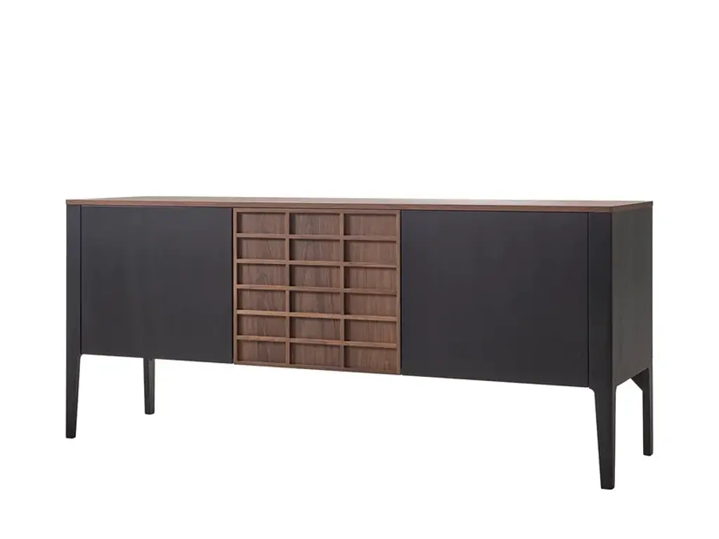 This contemporary cabinet, with clean lines and a sleek design, effortlessly complements any d¨¦cor style. It offers customizable storage with three adjustable shelves, spacious cabinets, open compartments, and a convenient drawer. Rounded edges enhance safety, while six solid wood legs ensure stability. Crafted from durable particle board with premium hardware, this cabinet combines style, practicality, and long-lasting durability for your living space.