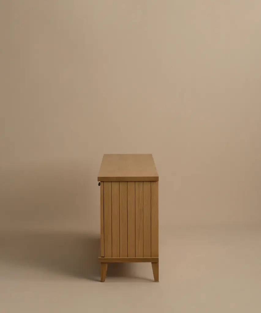 Coast Sideboard Warm Oak Inspired by a vintage find from the JK Farmhouse, this sideboard offers a fresh take on mid-century modern design. Featuring panel detailing on the front doors, it provides stylish and functional storage for any room. Legs include adjustable levelers. Frame crafted from solid white oak and engineered wood for enhanced stability and lasting durability. Finished with a clear, low-sheen finish that seals and helps protect surfaces, while highlighting the natural beauty of the material. Features 2 drawers and 3 adjustable shelves. Made in Vietnam. For furniture purchases, please refer to our furniture inspection policy here, and for help styling this piece in your space, contact [email protected] for a complimentary consultation. CA Residents: Prop 65 Information