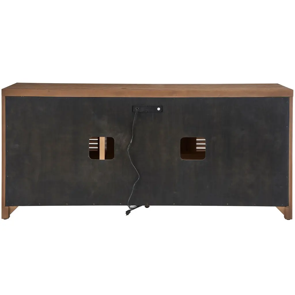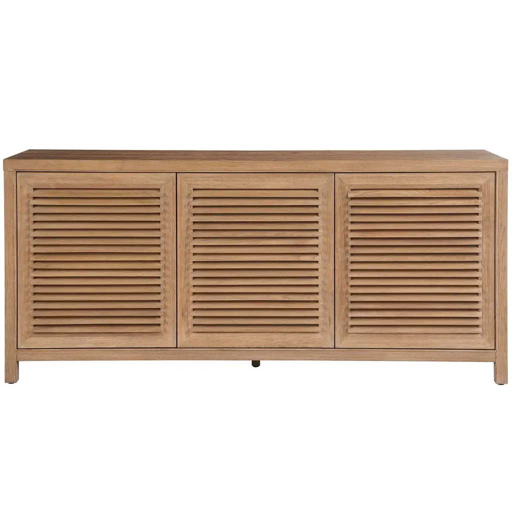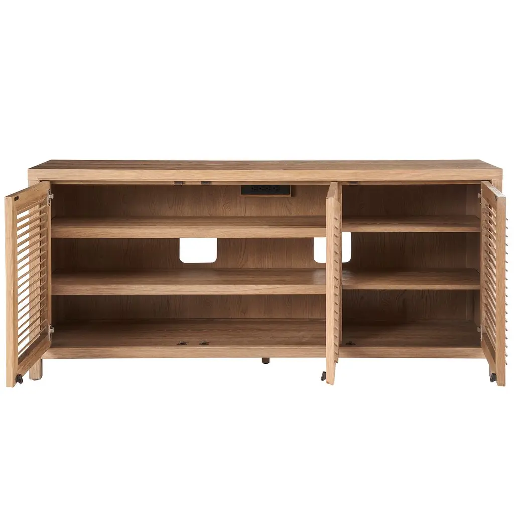 The Coastal Living Credenza introduces an aura of tranquility with captivating wooden detailing and a charming knotty oak finish. Meticulously crafted, it offers optimal organization with four adjustable wood shelves, wire access notches, and customizable storage space. Beyond functionality, it includes a built-in power supply strip, subtle light strip for interior illumination, and wire access for a clutter-free aesthetic. Sturdy construction and adjustable levelers ensure lasting stability, making this Credenza an ideal addition to any home seeking a blend of exquisite craftsmanship, calming aesthetic, and practical features.