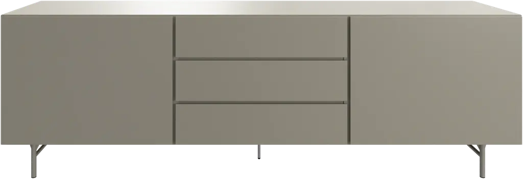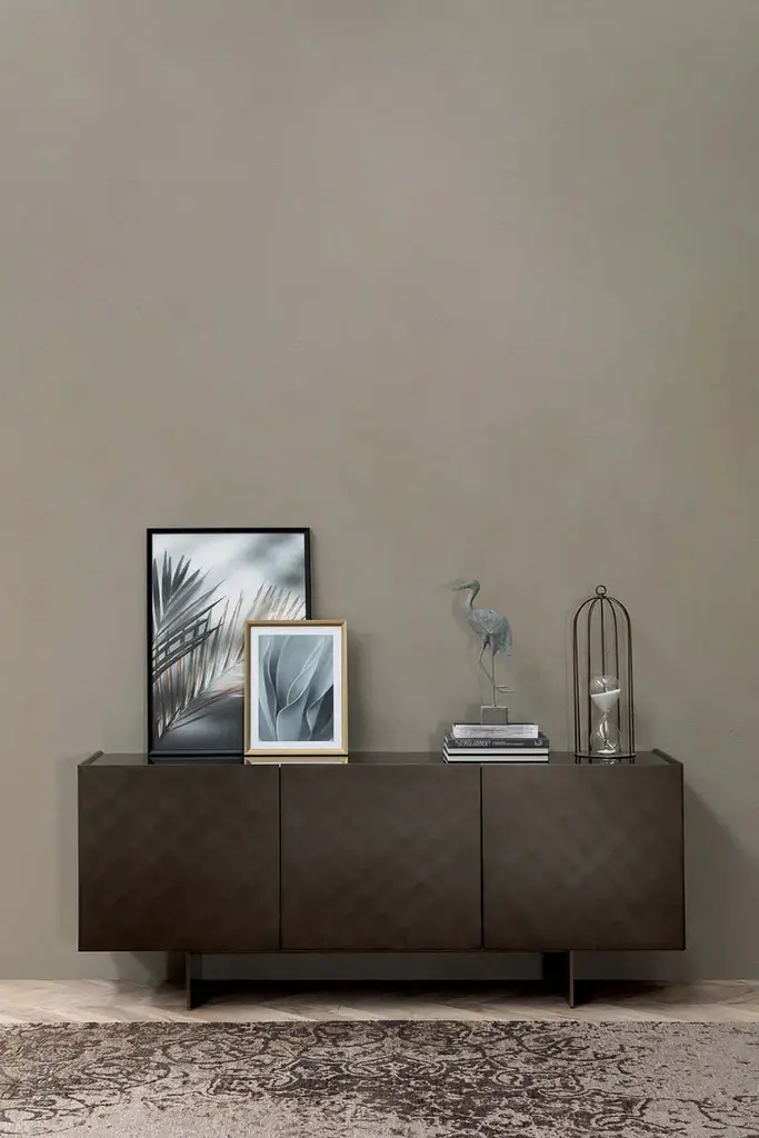 A sideboard with brushed finish available in a bronze, titanium or copper version. A simple but effective texture to match the sideboards with the bases of our tables.