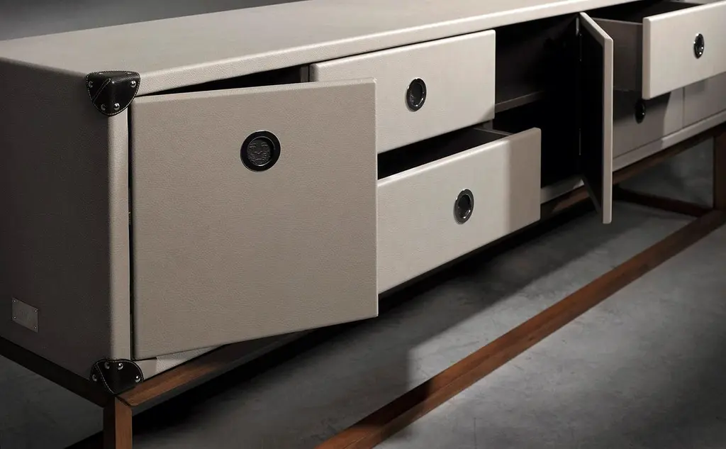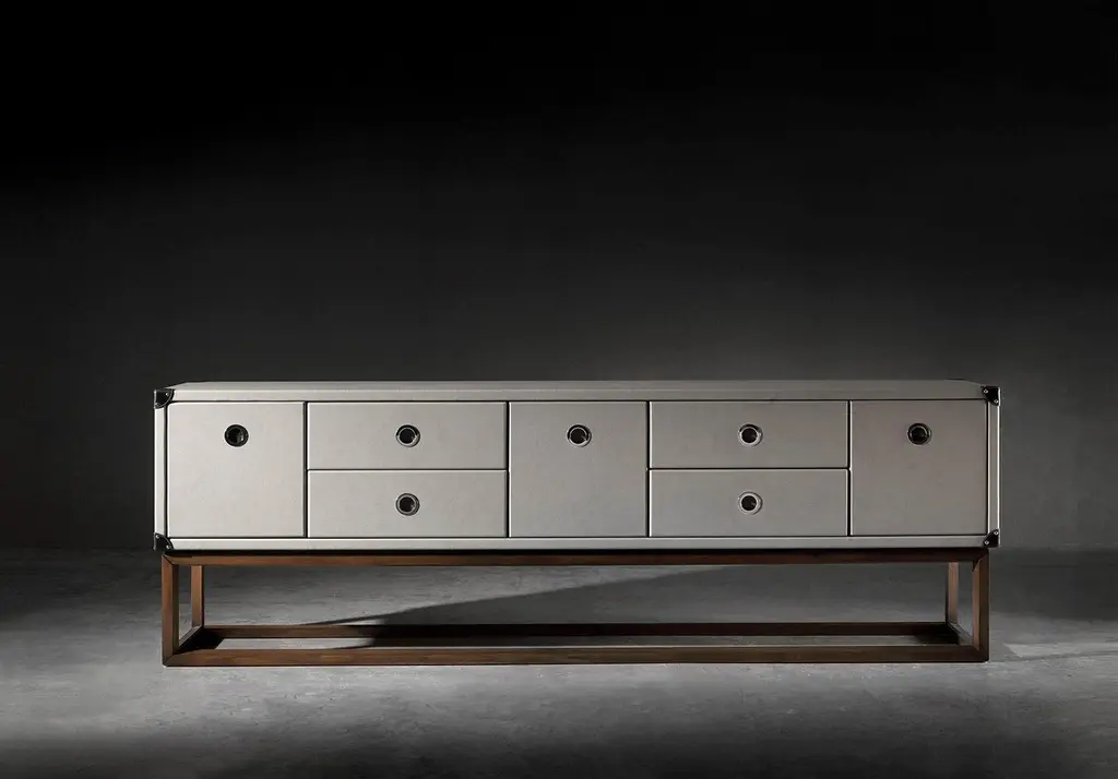 Compass Sideboard, Handcrafted In Eco Birch Leather And Walnut