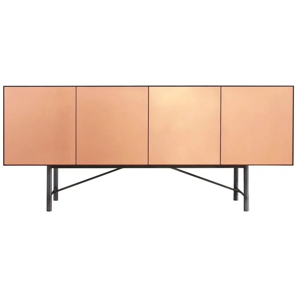 Connect Credenza Cabinet Or Sideboard Customizable In Steel And Polished Bronze