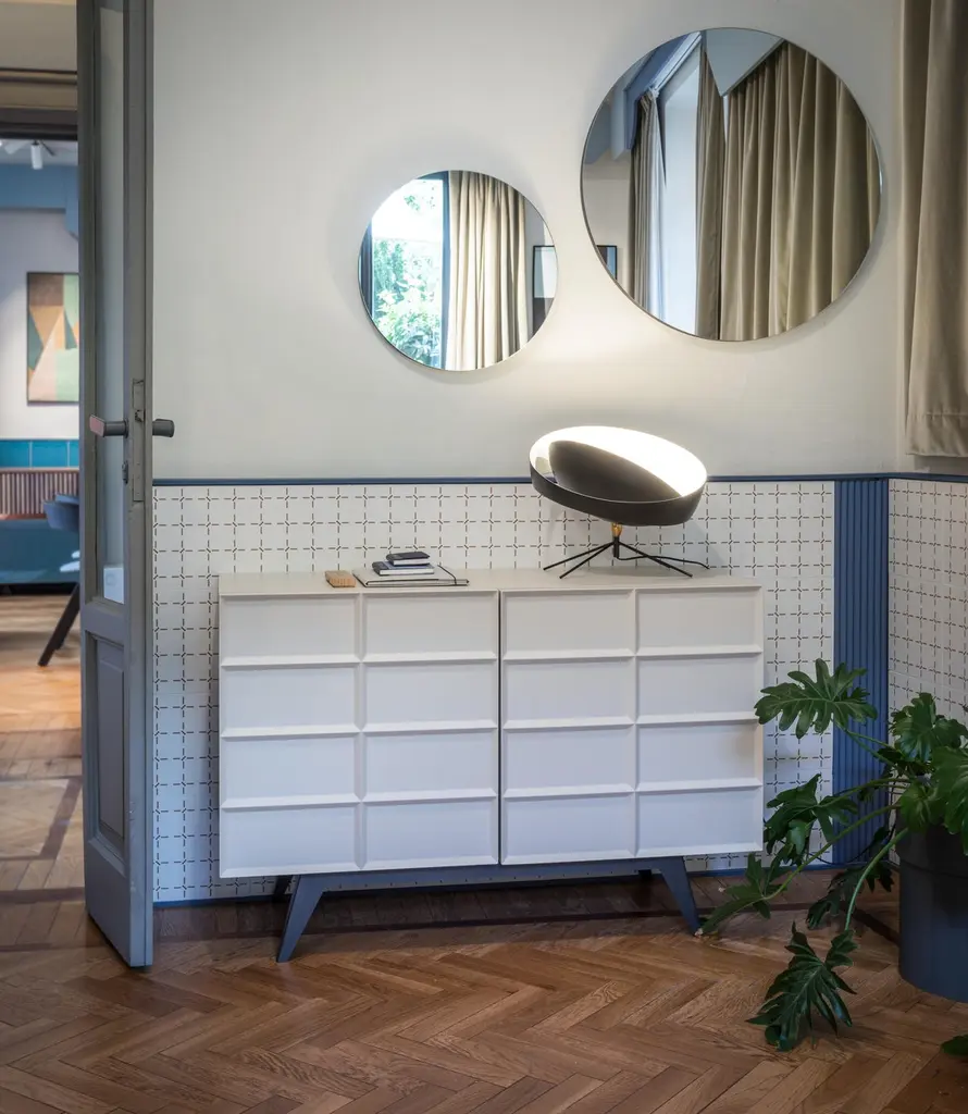 Inspired by a chocolate bar, coco is characterized by its rigorous and elegant lines. Its unique shape allowed us to explore numerous different opening mechanisms, alternating doors and drawers while keeping the overall look the same.Sideboard W. 180 veneered in 109 flame figured Italian walnut.Fronts in 263 Oceano embossed lacquer.