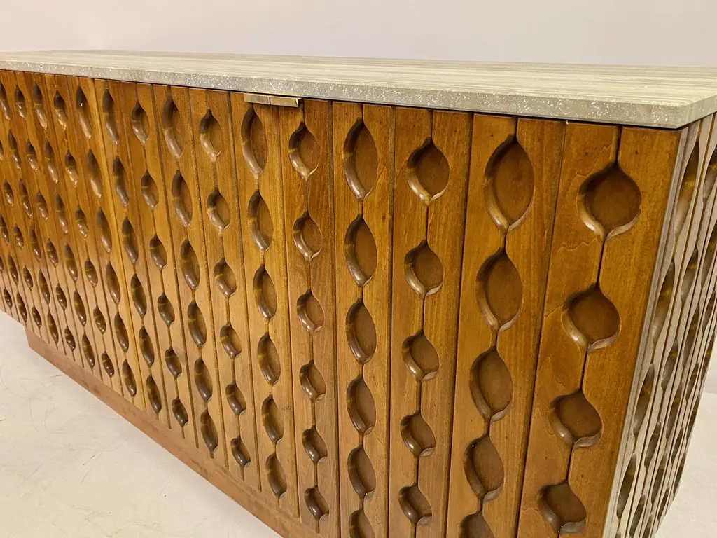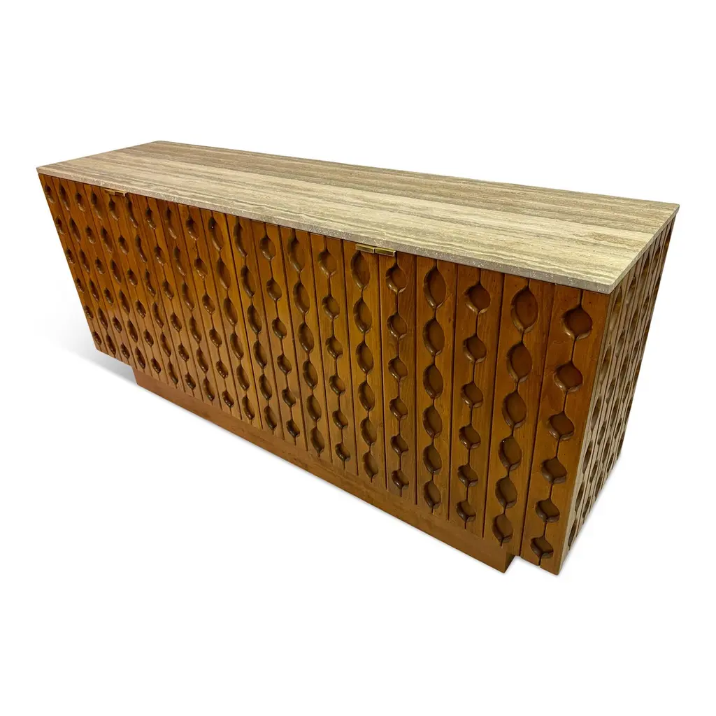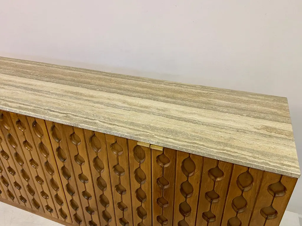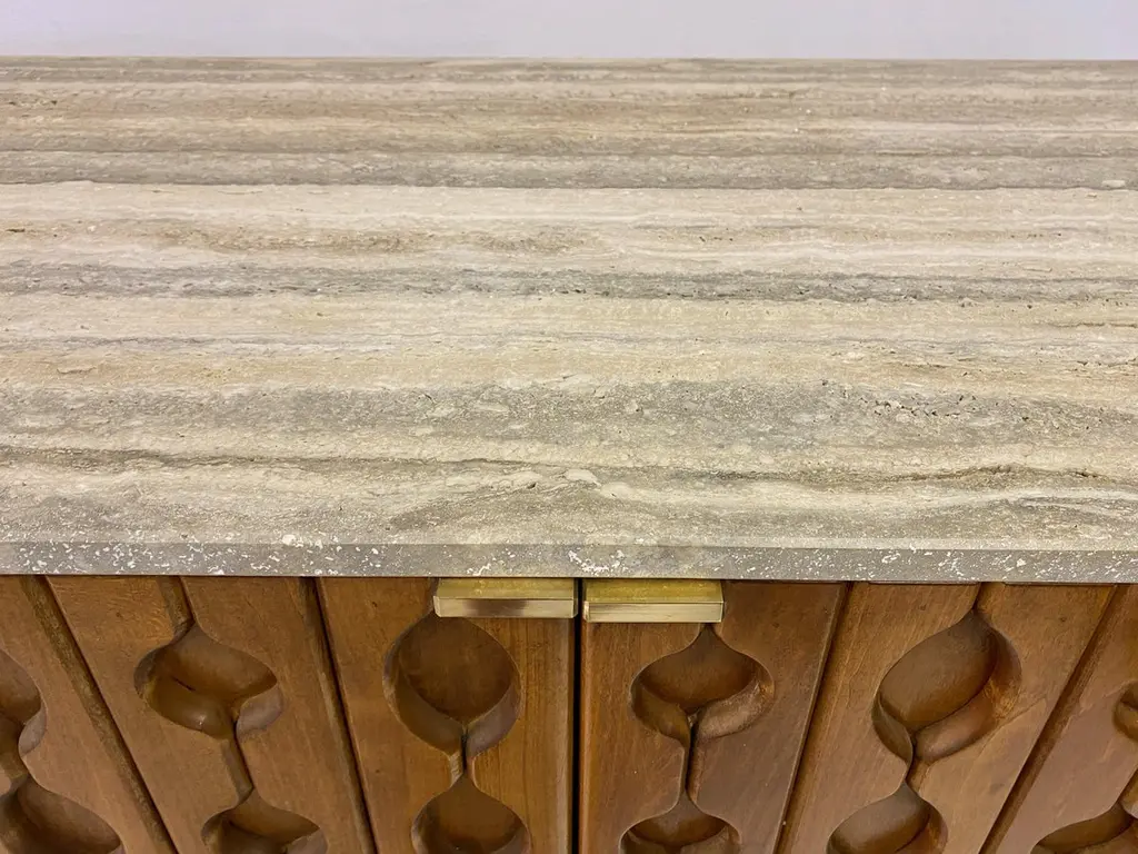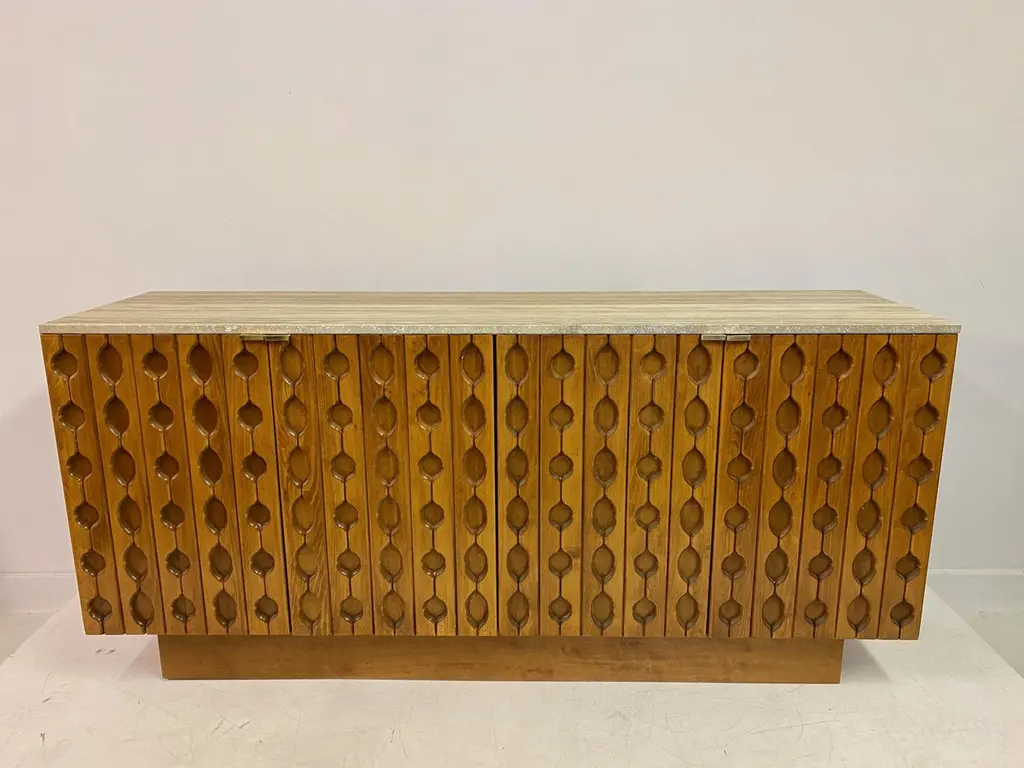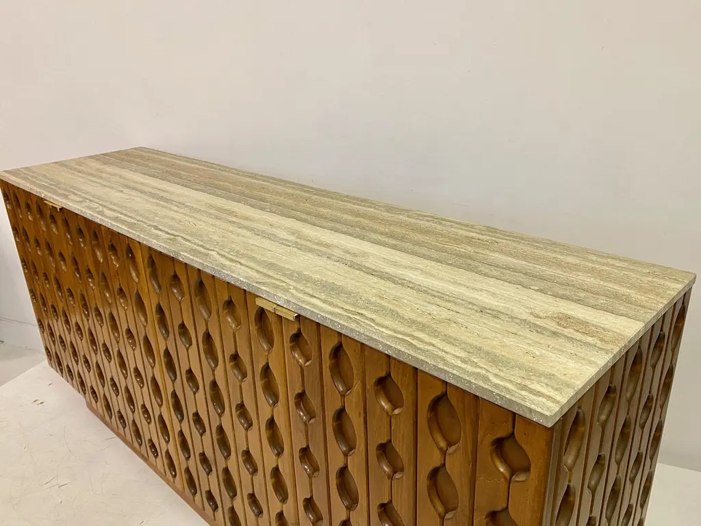Contemporary Italian Brutalist Wood And Travertine Sideboard