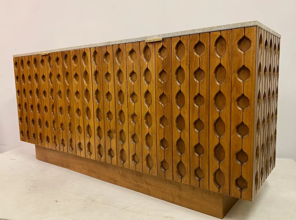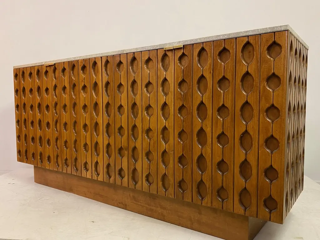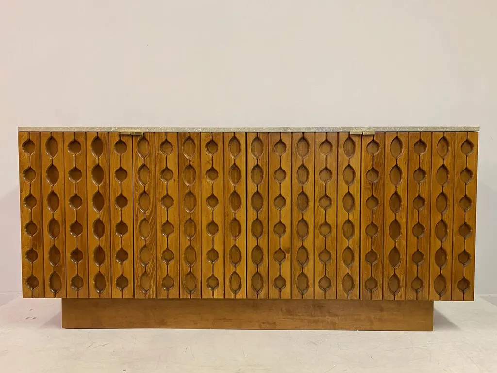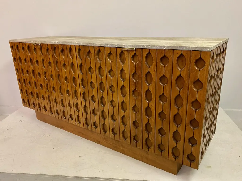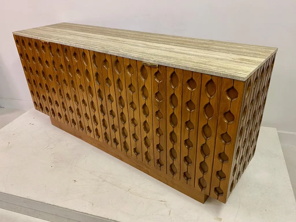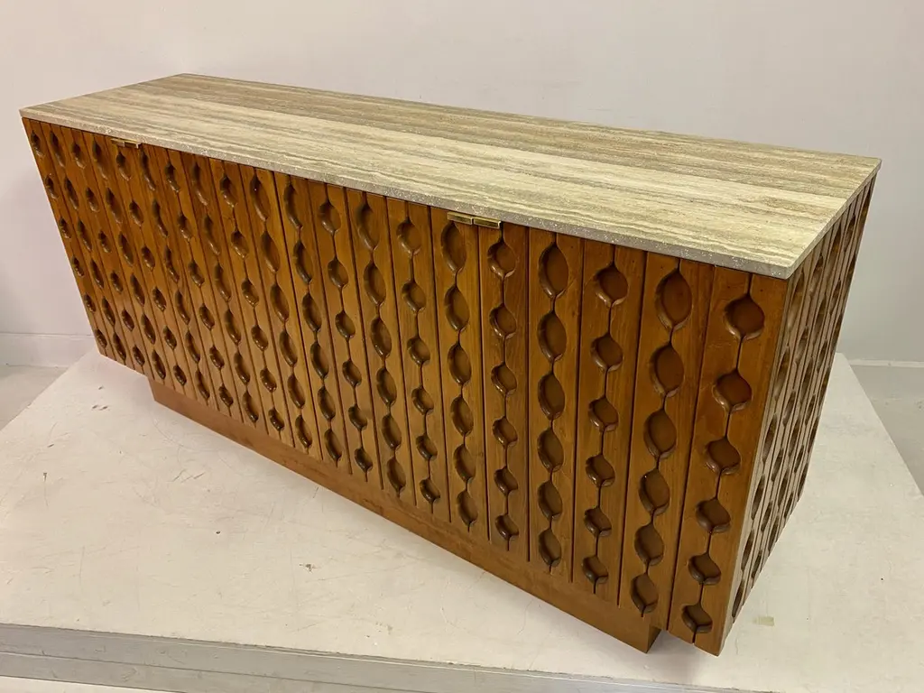 Contemporary Italian Brutalist Wood And Travertine Sideboard