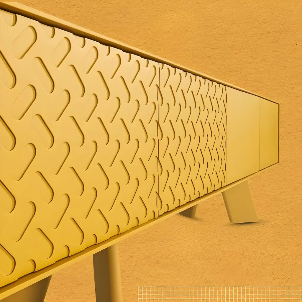 Sideboard lacquered in gold yellow with motif.Finish: can chooseMaterial: Wood, lacquerFour push-pull doors and inside shelf. Wooden base lacquered in same finish.Lacquer coating in variety of colors.Please contact us if you have any questions about customization and pricing. We will be glad to check with the factory’s technical team if sizes, finishes, and colors can be customized. We do our best to expedite production and to ship and deliver product within the listed lead time, however current lead times might be longer due to global shipping backlog and delays. These delays are out of our control and cannot be a reason to cancel an order.