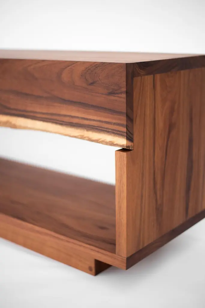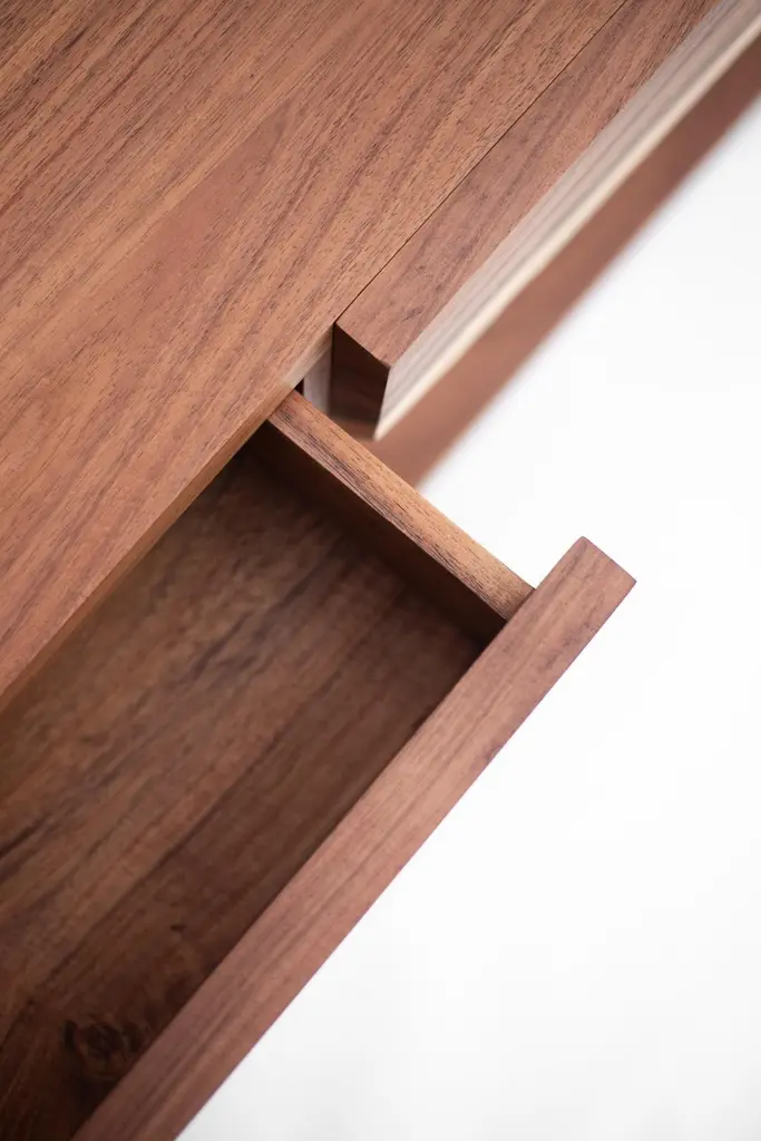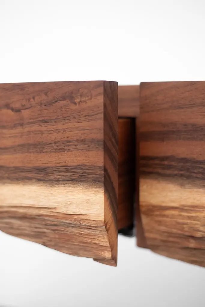 The simple and lightweight construction of this piece aims to highlight the intrinsic beauty of tropical wood, showcasing its extraordinary organic features with meticulous attention to detail and the highest quality finishes.The console includes three spacious drawers, with fronts crafted from a Caribbean Walnut plank that retains its natural characteristics.Each unit is unique, with the wood individually selected to create an original and distinctive composition.finish : waxavailable in: Caribbean Walnut_Our pieces have a finish based on natural waxes and oils that protect the surface, accentuate the grain and texture and preserve the warm feeling of the wood.All the wood that we work with to create our pieces comes from local "ejidos" (communal land) with responsible forestry management programs and certificates._Wood is a natural and organic element. It will vary in color and grain according to each wood plank’s unique characteristics and applied finish. The image shows only one hue of many, making each chair a one-of-a-kind piece of furniture.