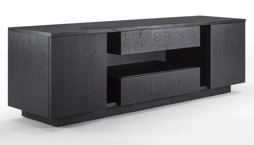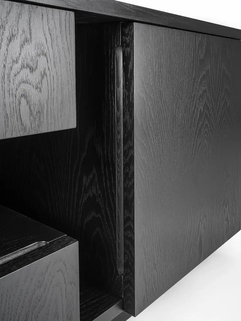 This exquisite Italian sideboard is a testament to the artistry and craftsmanship of Italian furniture makers. Handcrafted from solid oak, it boasts a rich black pigment finish that accentuates the natural beauty of the wood. The meticulous construction includes hinged doors and drawers, skillfully assembled using dovetail joints, ensuring durability and longevity. At its heart lies a central open compartment, a versatile space for displaying treasured items. Inside, glass shelves add a touch of sophistication and create an elegant backdrop for your cherished possessions. This masterpiece is not only a functional piece of furniture but also a work of art, created by a skilled Italian artisan using 100% certified wood, making it an environmentally conscious choice for discerning connoisseurs.We do our best to expedite production and to ship and deliver product within the listed lead time, however current lead times might be longer due to global shipping backlog and delays. These delays are out of our control and cannot be a reason to cancel an order.
