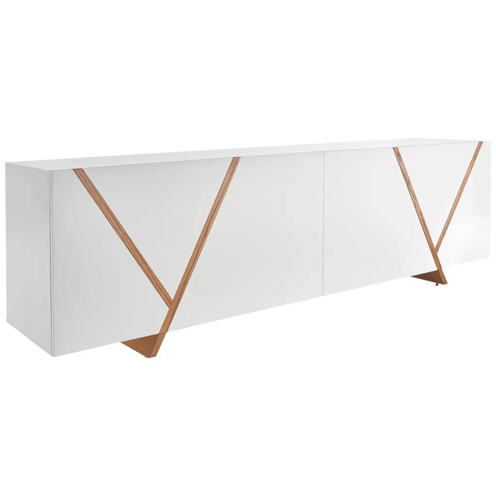 This contemporary sideboard showcases a sleek, minimalist design with a lacquered wood structure and a durable metal base. It features a natural oak frame and base, paired with doors lacquered in white for a clean, modern look. Combining functionality with style, this versatile piece suits various interior settings and offers customization options to meet individual design preferences.Please contact us if you have any questions about customization and pricing. We will be glad to check with the factory’s technical team if sizes, finishes, and colors can be customized. We do our best to expedite production and to ship and deliver product within the listed lead time, however current lead times might be longer due to global shipping backlog and delays. These delays are out of our control and cannot be a reason to cancel an order.