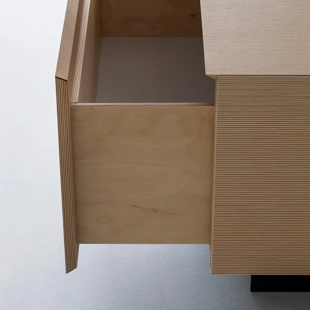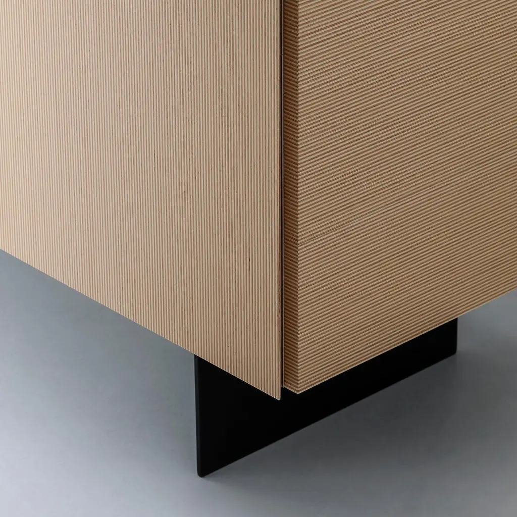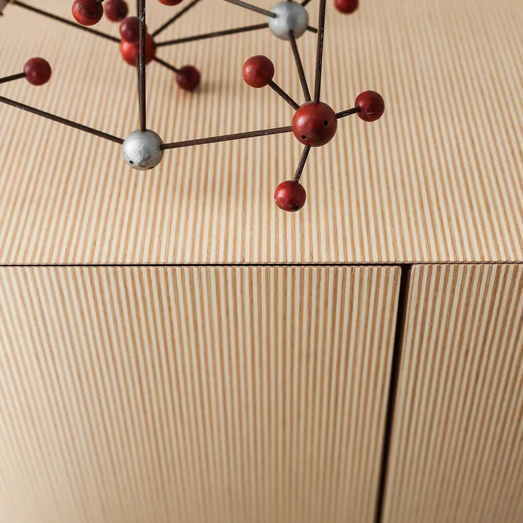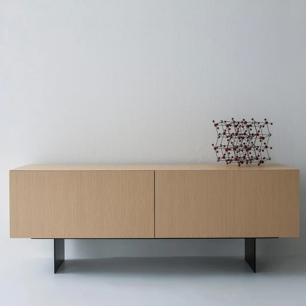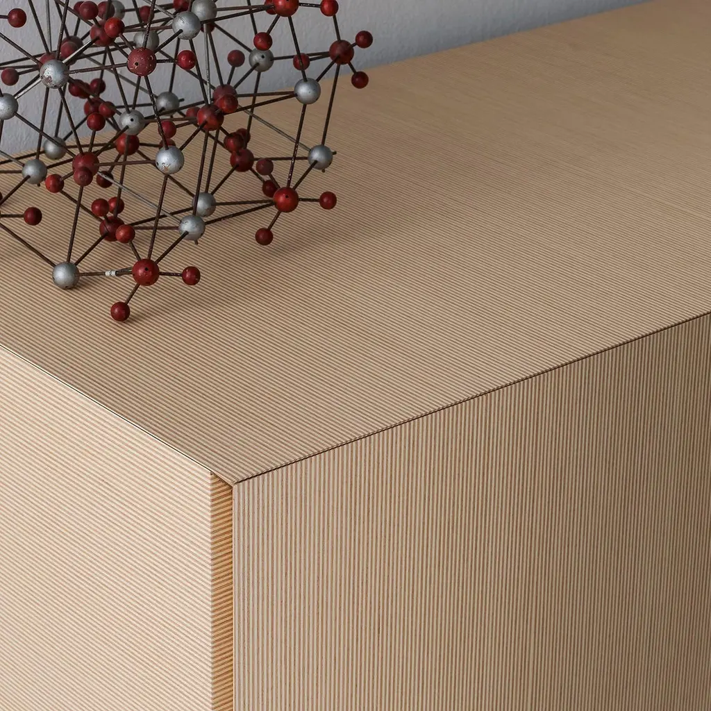 In the "Striped Collection" sideboard by Sebastiano Bottos the innovative use of multi - layered wood creates an unexpected geometric pattern, both sophisticated and natural. The 45 degrees joints are designed to give continuity and lightness to the surface flow.A design approach that is subtractive because, more often than not, the rule "less is more" applies.Completely designed and made in Italy.
