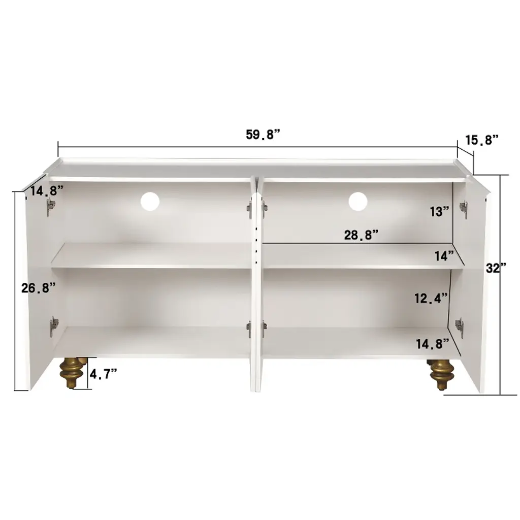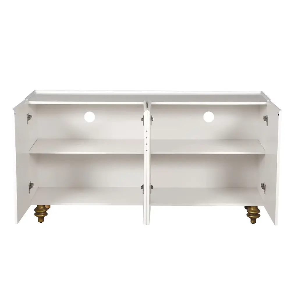 Introducing the Modern Fluted Gold Regular Line 4-Door Cabinet, a sleek and durable furniture piece designed to elevate your home decor. Crafted with a modern line groove door design and sturdy MDF board construction, this cabinet ensures long-lasting durability and style. Featuring distinctive gold elements such as curve designs and gourd feet, this cabinet adds a touch of sophistication to your space. The adjustable shelf and pre-wired holes enhance practicality and functionality, allowing for customized storage solutions. The groove design on the cabinet's surface not only adds visual interest but also provides a practical solution for organizing small items and preventing slips. Whether used as a TV cabinet, living room storage, or display unit, this cabinet combines style and functionality to showcase your taste in home decoration. With its elegant design and practical features, the Modern Fluted Gold Regular Line 4-Door Cabinet is a standout piece that complements any modern living space.