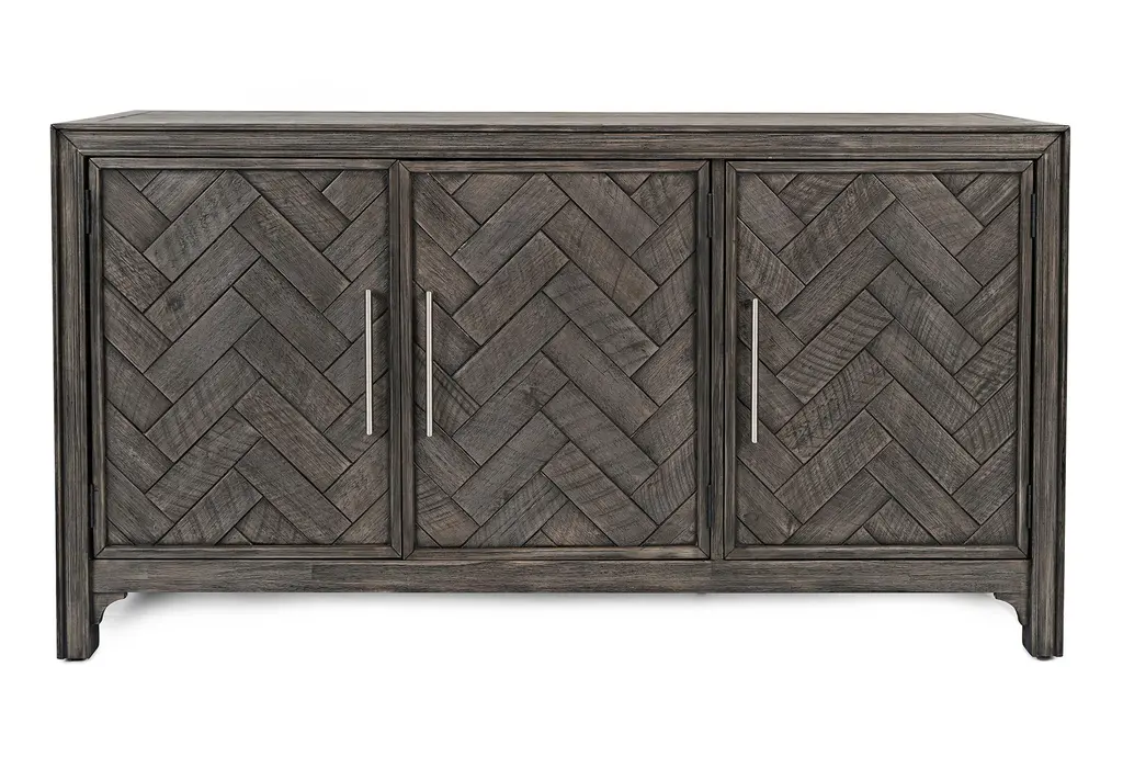 Product Description: Cordova Grey 60 Inch 3 Door Sideboard with storage, shelves, and adjustable shelves, assembled in a modern style, made with acacia solids and veneer and metal accents.