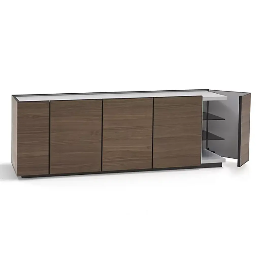 The Cornice Sideboard from Pianca is an excellent storage solution. Its simple, streamlined shape, which reflects the Italian design tradition, serves as a canvas for timeless elegance. Crafted from wood gathered from responsibly managed forests, this sideboard reflects our commitment to environmental preservation while maintaining durability. Opening its doors reveals spacious shelves that are ready to hold your favorite serving wares and accessories, making organization effortless for your next dining occasion.